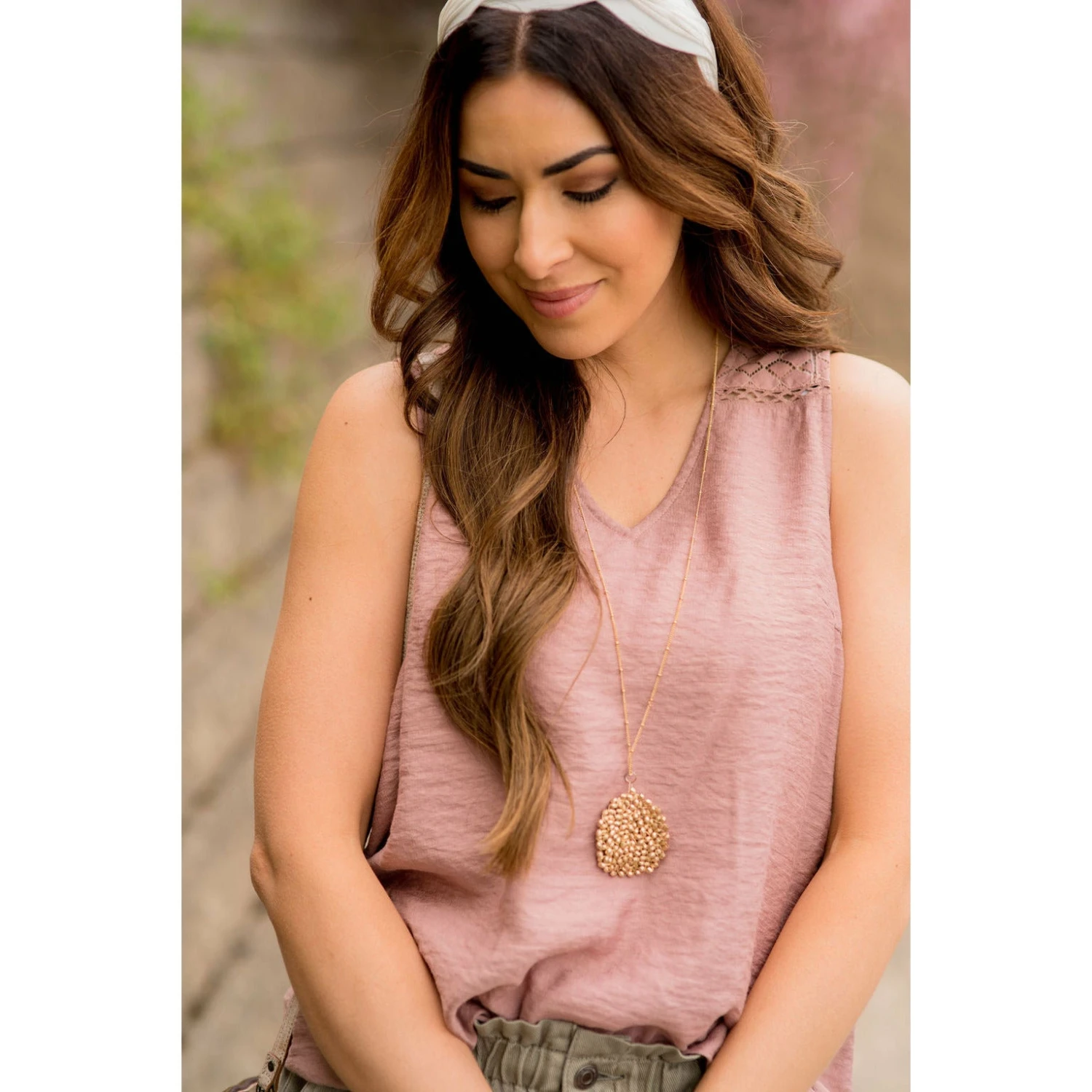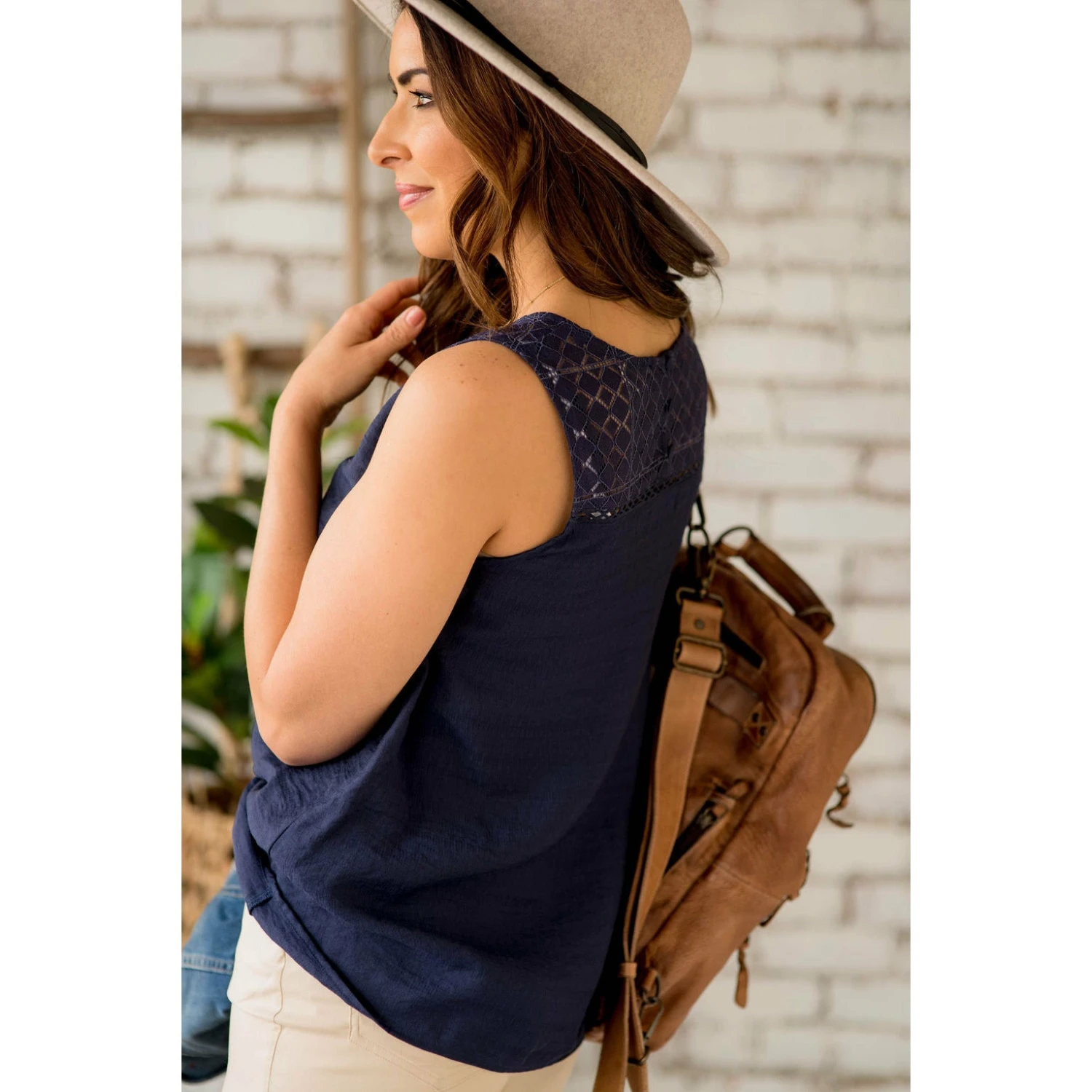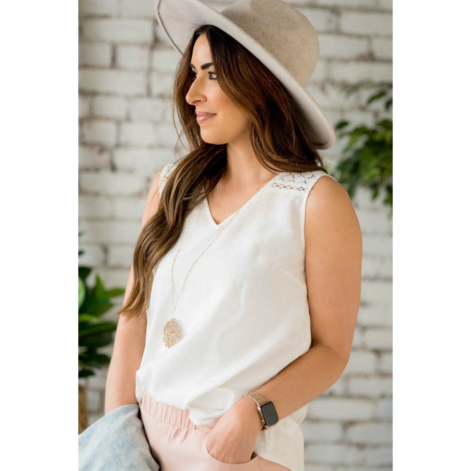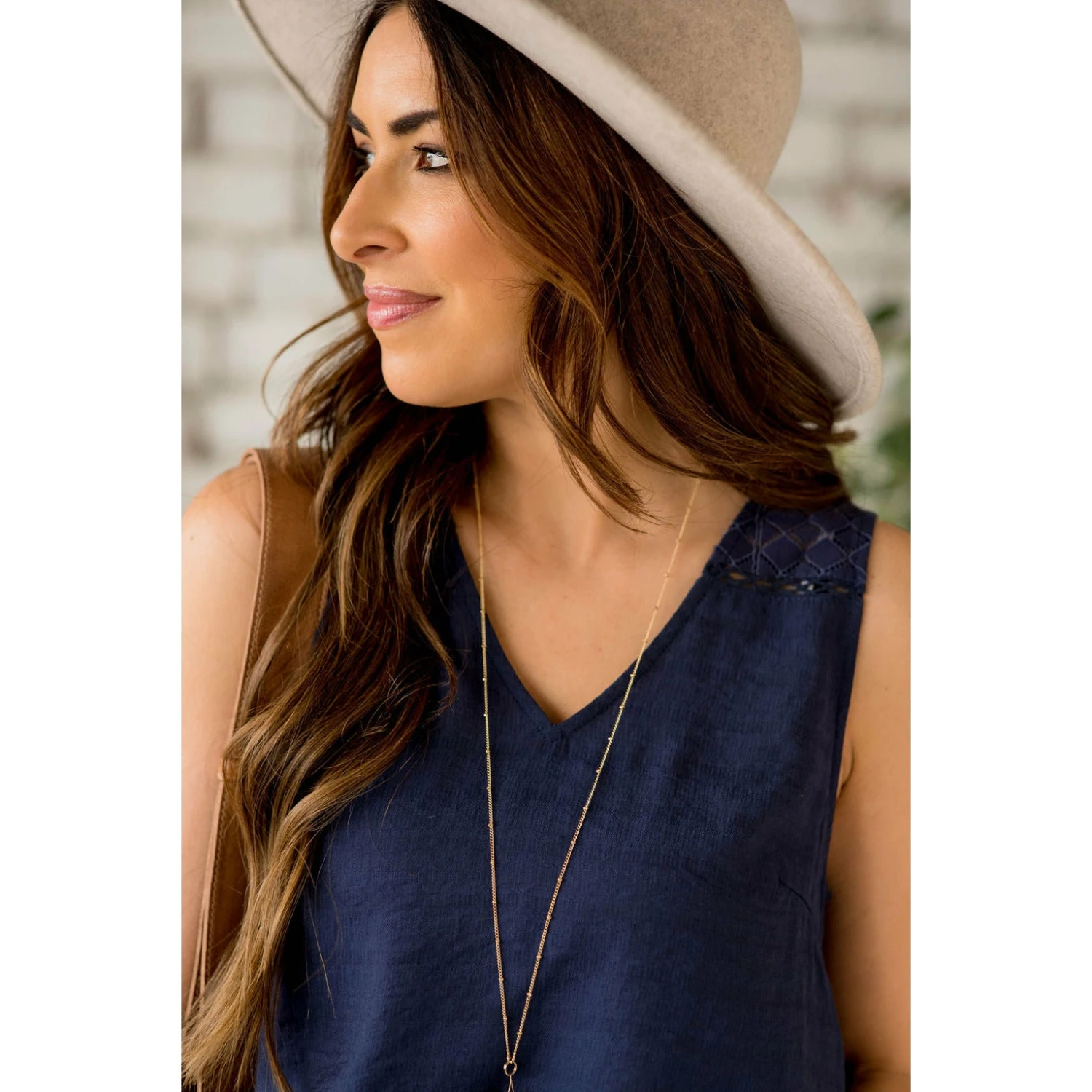 A simple tank from the front with an intricate diamond cut-out pattern in the back! We love that this tank can be styled so easily. Tuck into a patterned skirt or colored high-waisted shorts in the summer, or use as a layering piece for your cardigans or shackets in the cooler months! The possibilities are endless with this one!