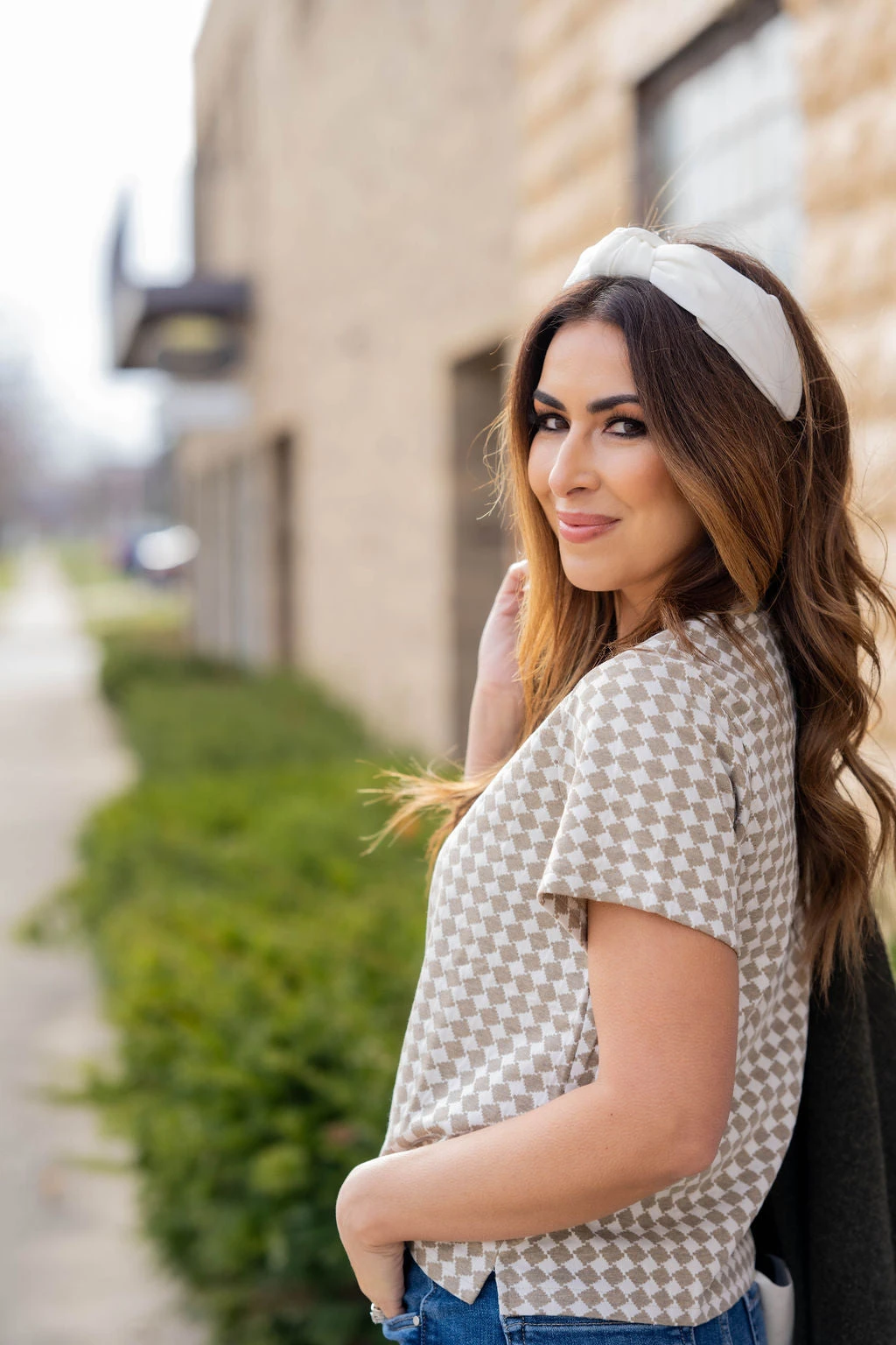 Comfort meets style in this checkered print tee! The soft, lightly textured material gives a fun twist to any look, and is perfect to pair with leggings, denim, or joggers! Chilly? Layer with a blazer, cardigan, or shacket! We love that this can easily be dressed up or down for everyday wear!Â