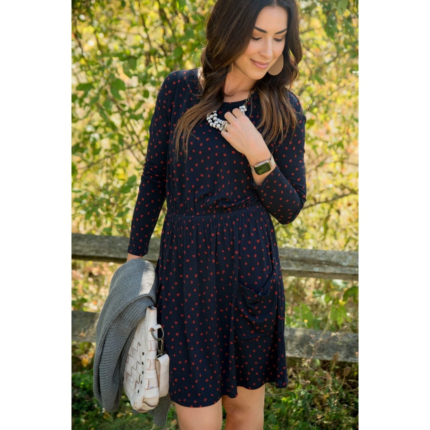 Love pockets? This dress has them! The Dotted Pocket Long Sleeve Dress is a classic look that will make you feel fantastic no matter where you are headed! Try this dress out with a Triple Twist Clay Necklace and a Clay Bracelet!