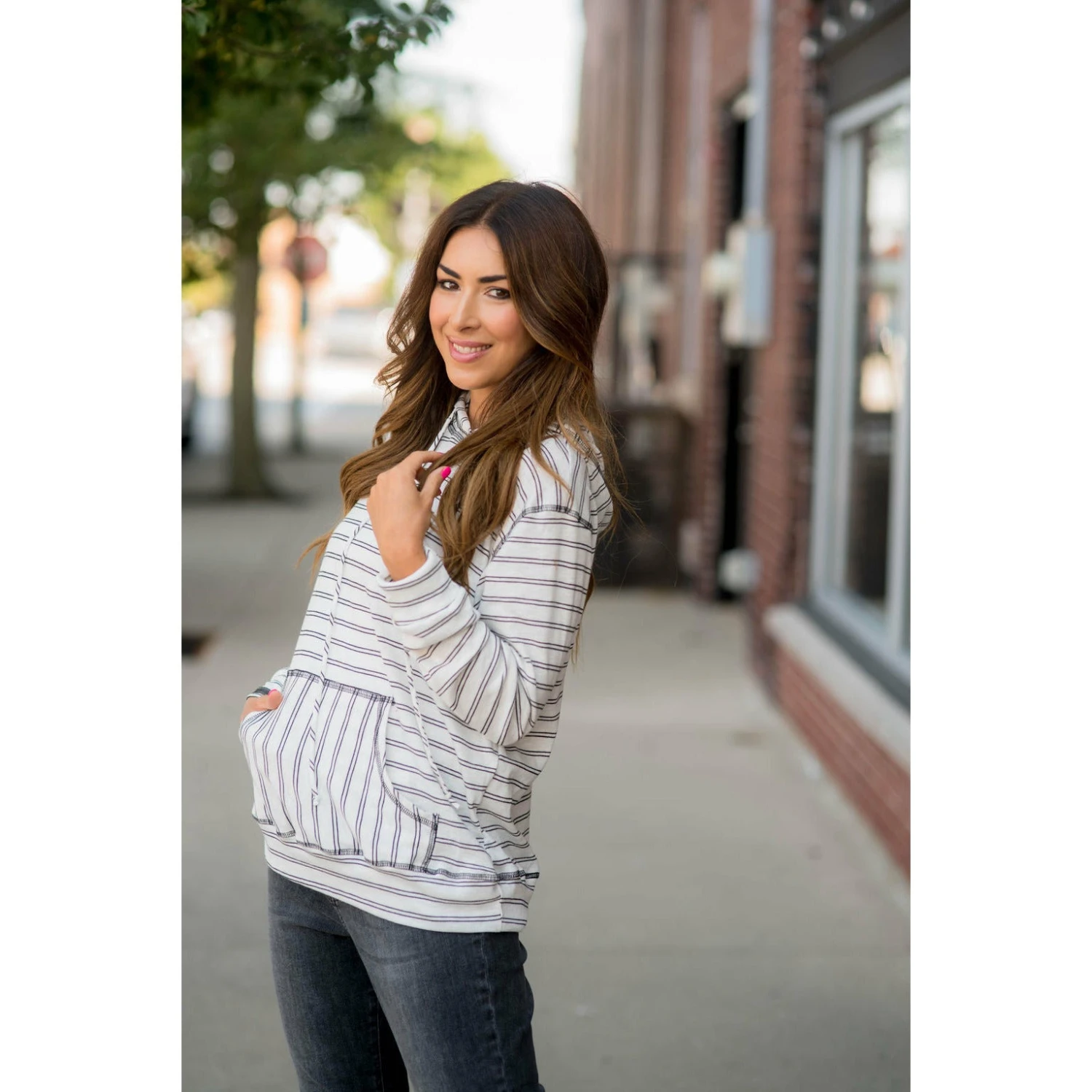 This hoodie is a must have! With cute little double stripes, this hoodie has a pocket and is amazing! Ultimate comfort is exactly what you will get when you purchase this hoodie!