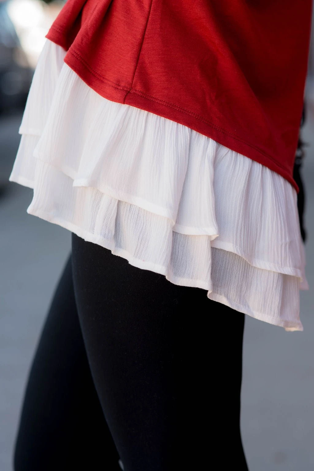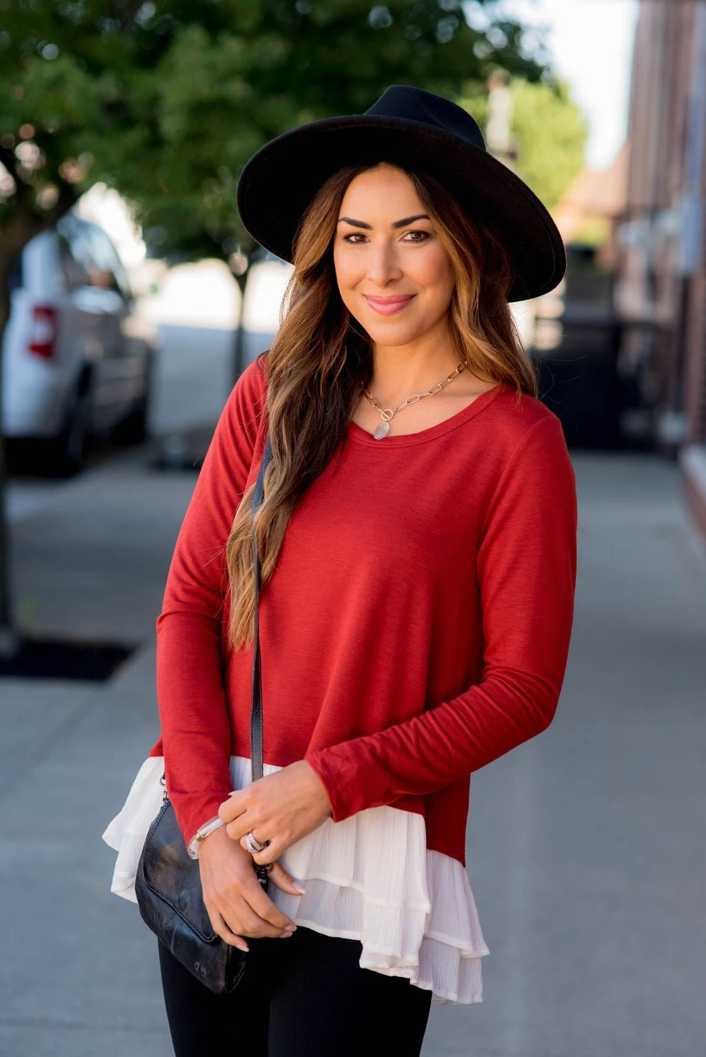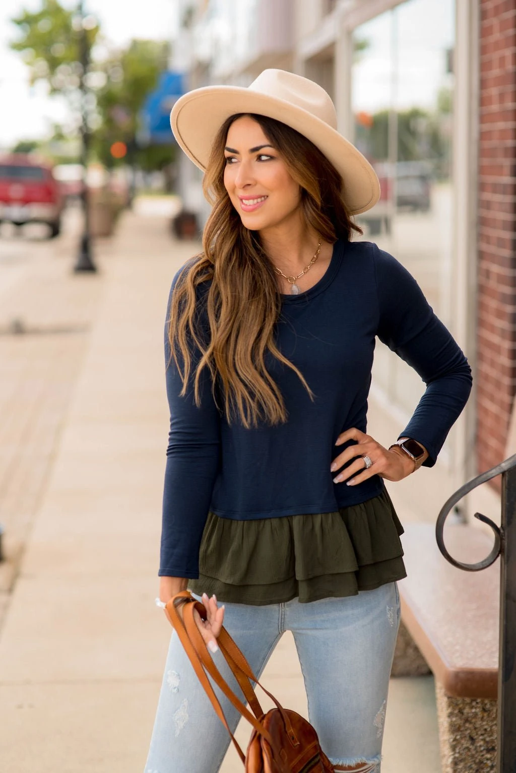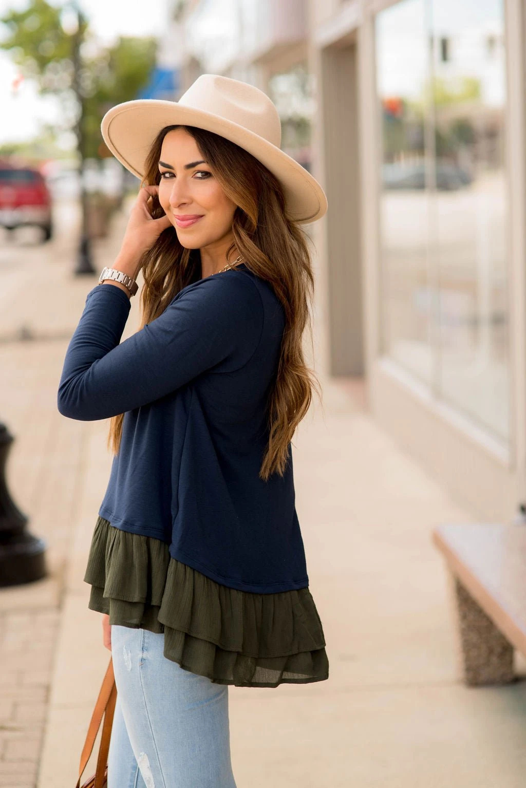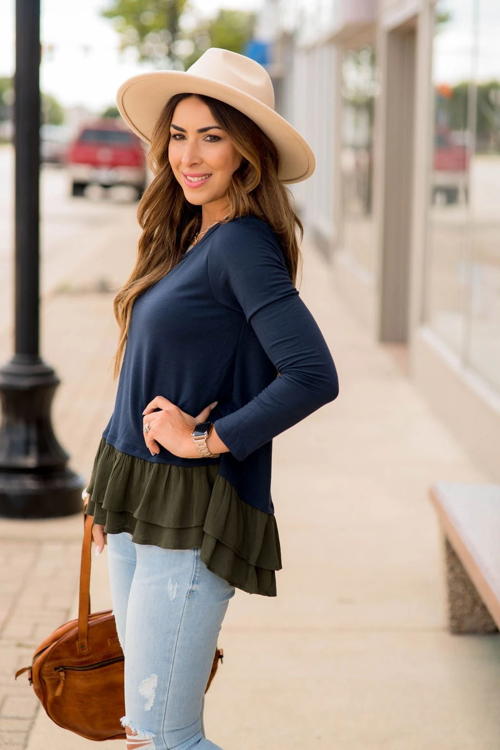 Ruffles are in! This long sleeve is perfect for a cute look while out shopping with your friends!