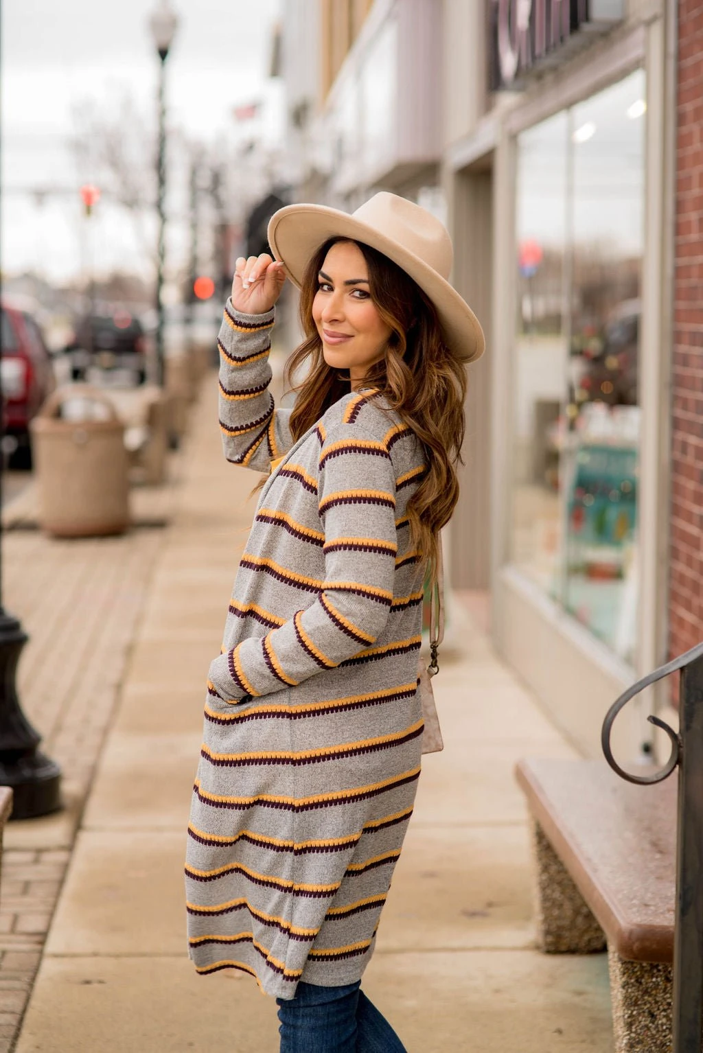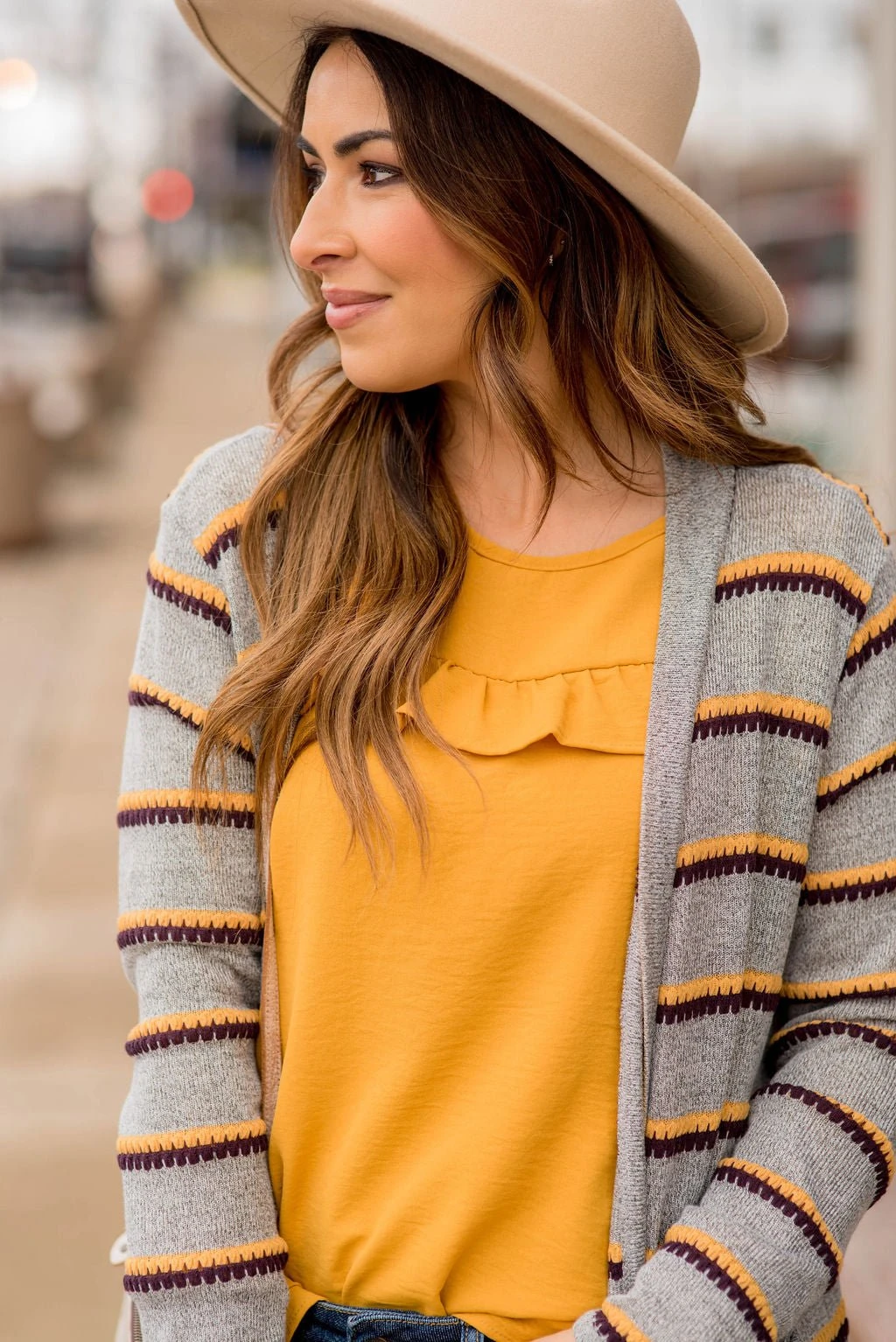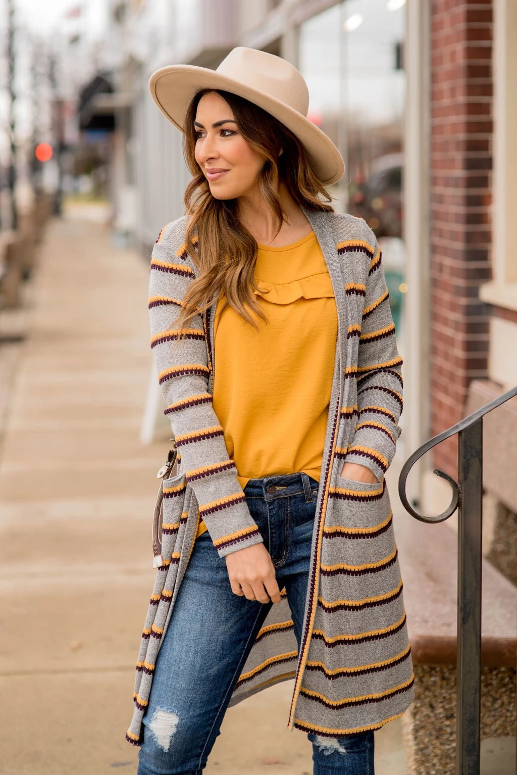 You need this long double stitched tunic cardigan! It looks great over any basic shirt or even over one of our scalloped tees!