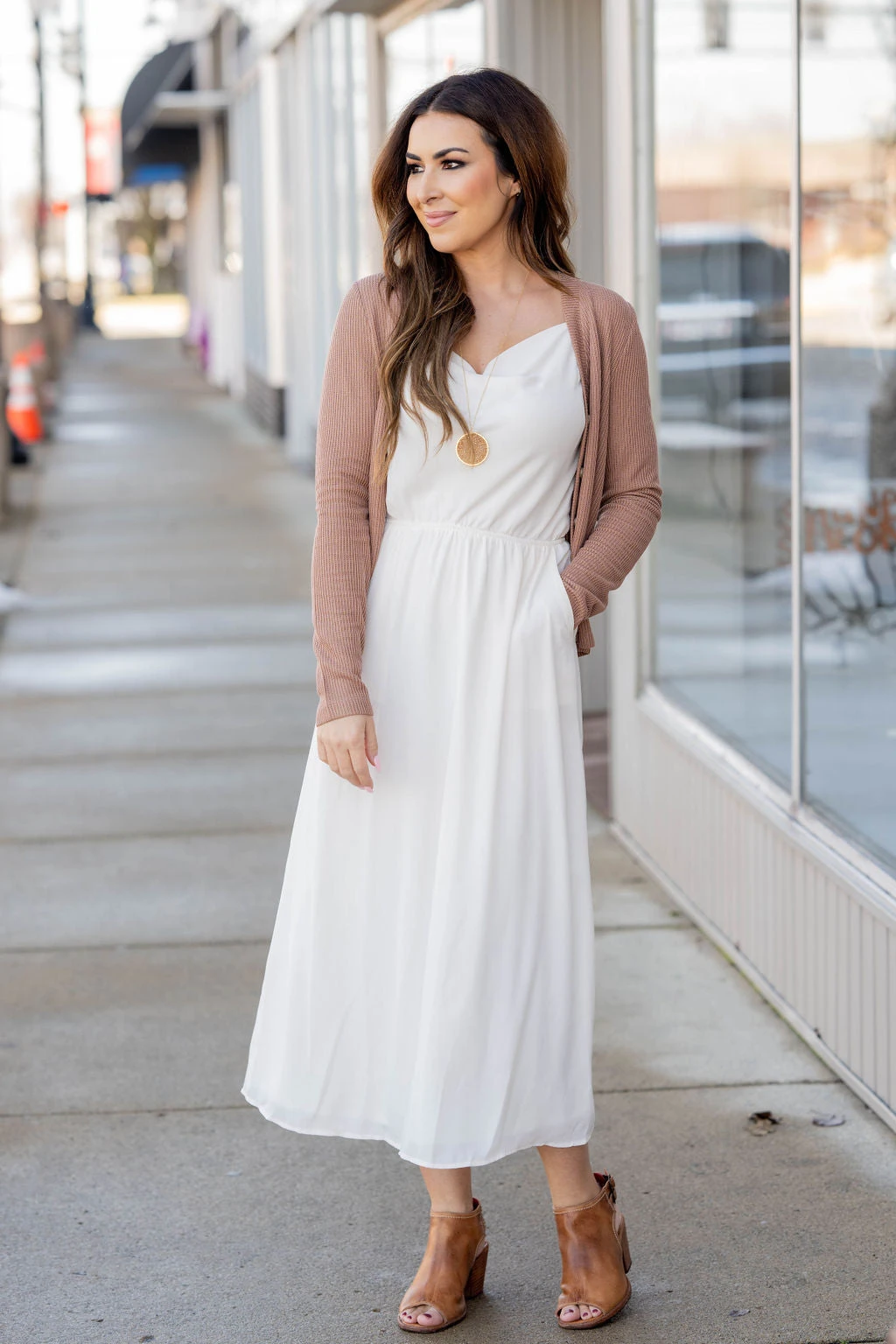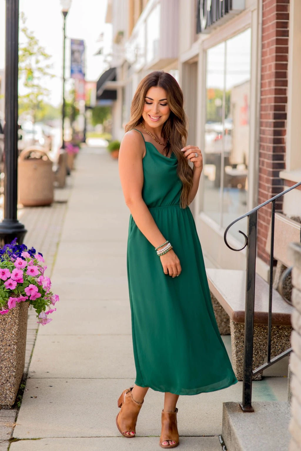 Basic enough to dress up or down to fit your style, but bold enough to stand out on its own! This dress features a maxi length, making it appropriate for the office, the classroom, or Sunday service but also features a drape style collar that gives a fun and flirty vibe! This dress can be worn alone for the warmer months but can easily be paired with a denim jacket or cardigan for the cooler ones! With so many ways to style, we just know this dress will surely become a staple piece in your closet!