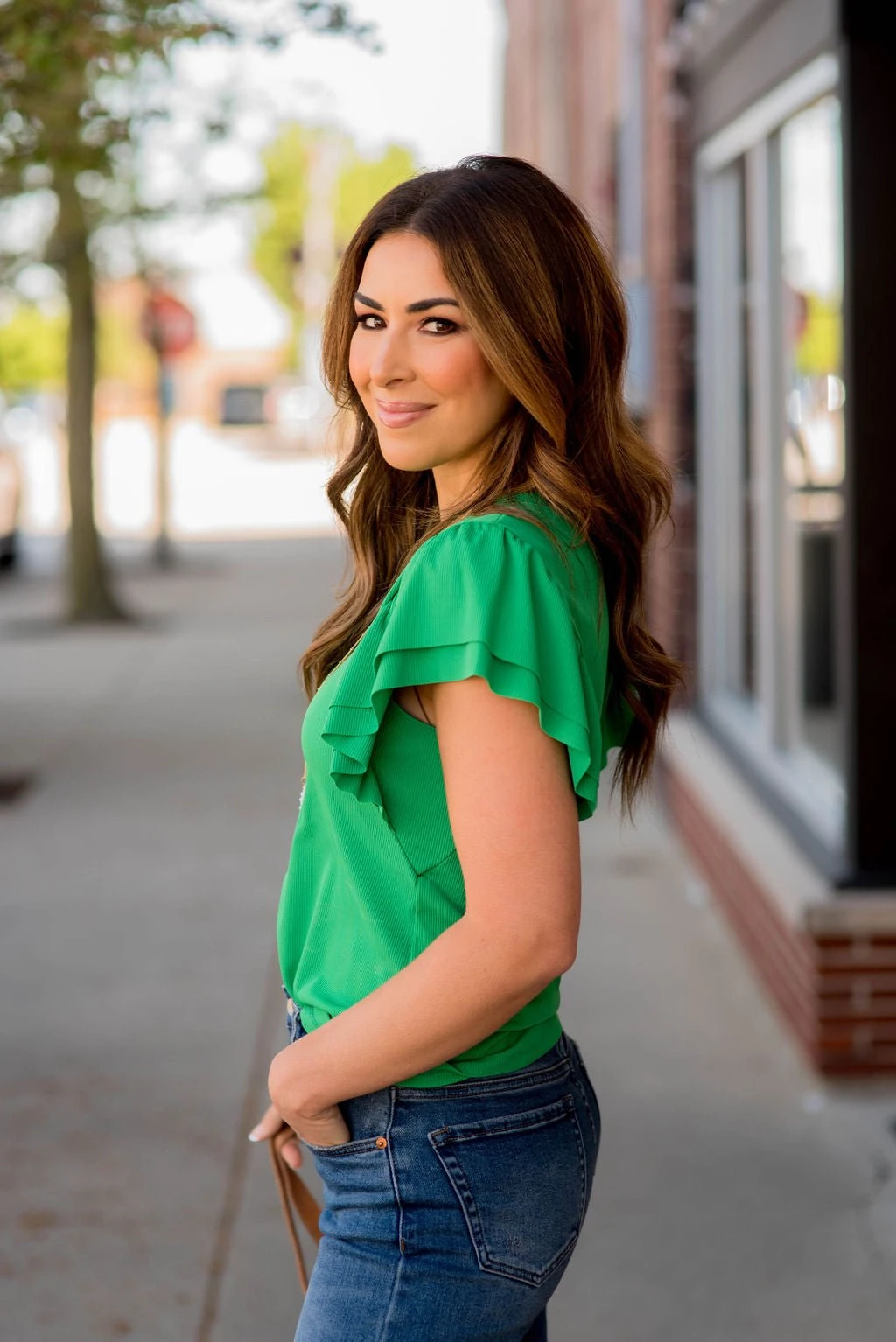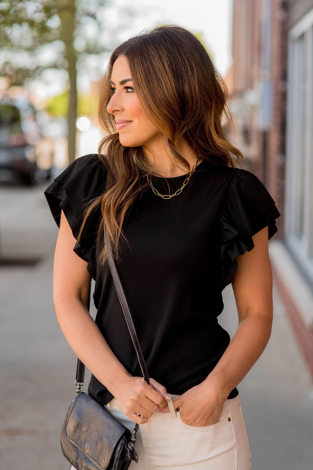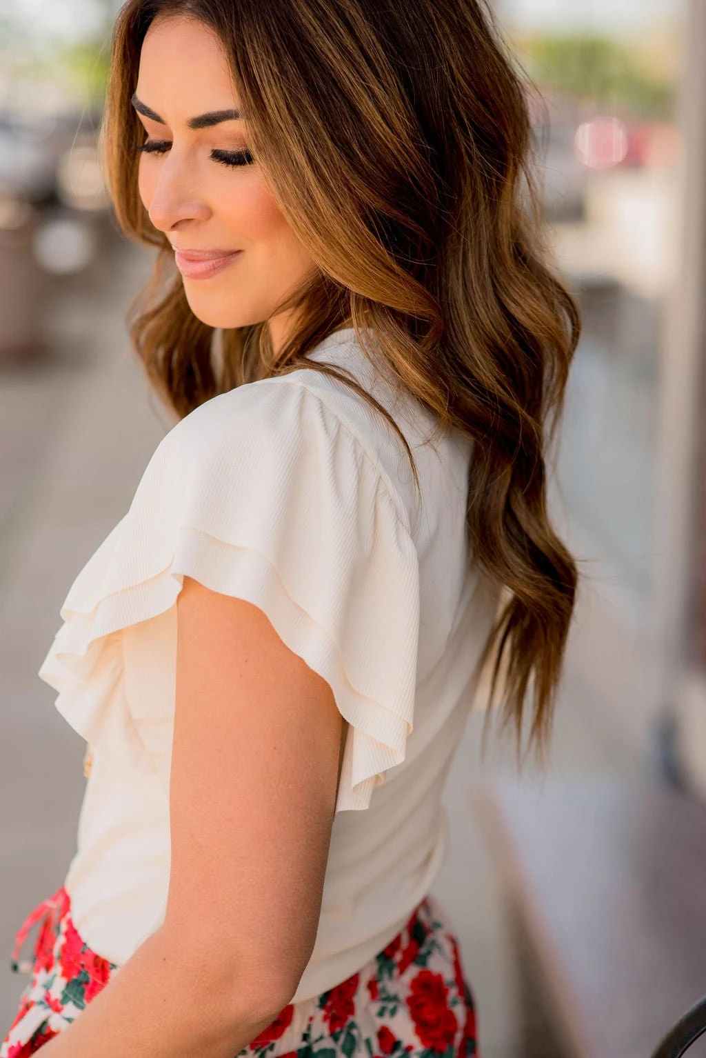 A basic tee taken to the next level with the cute and classy double flutter sleeves and a ribbed texture! Pair this with a cute pair of high-waisted shorts or a skirt for the warmer months or use it as a layering piece with a cardigan or shacket for the cooler ones!