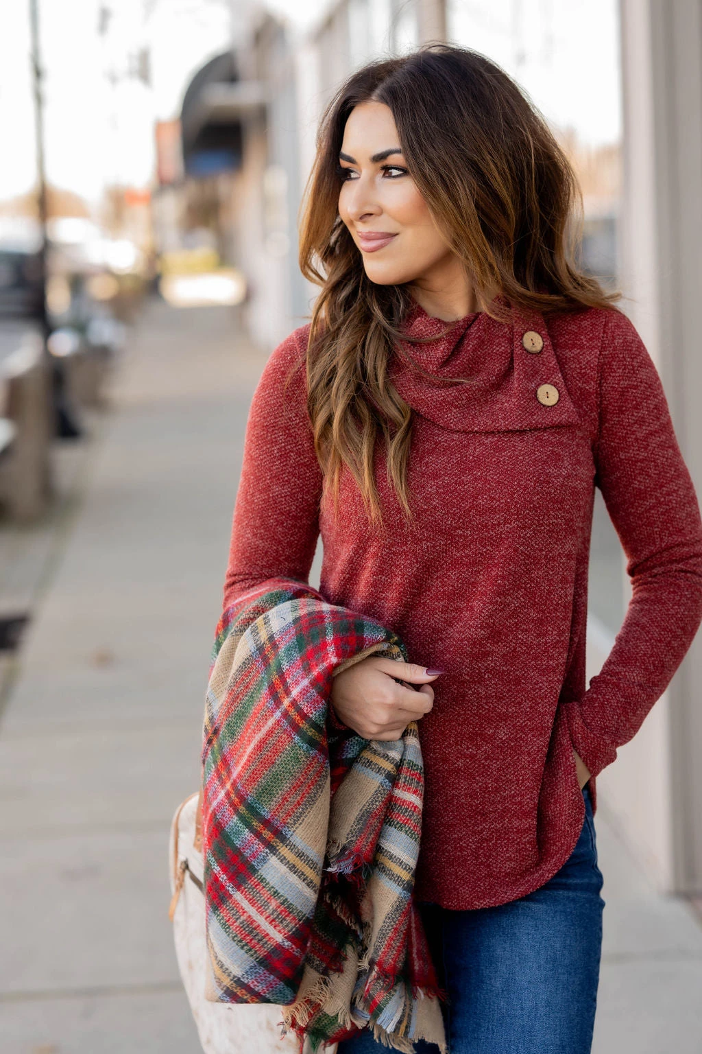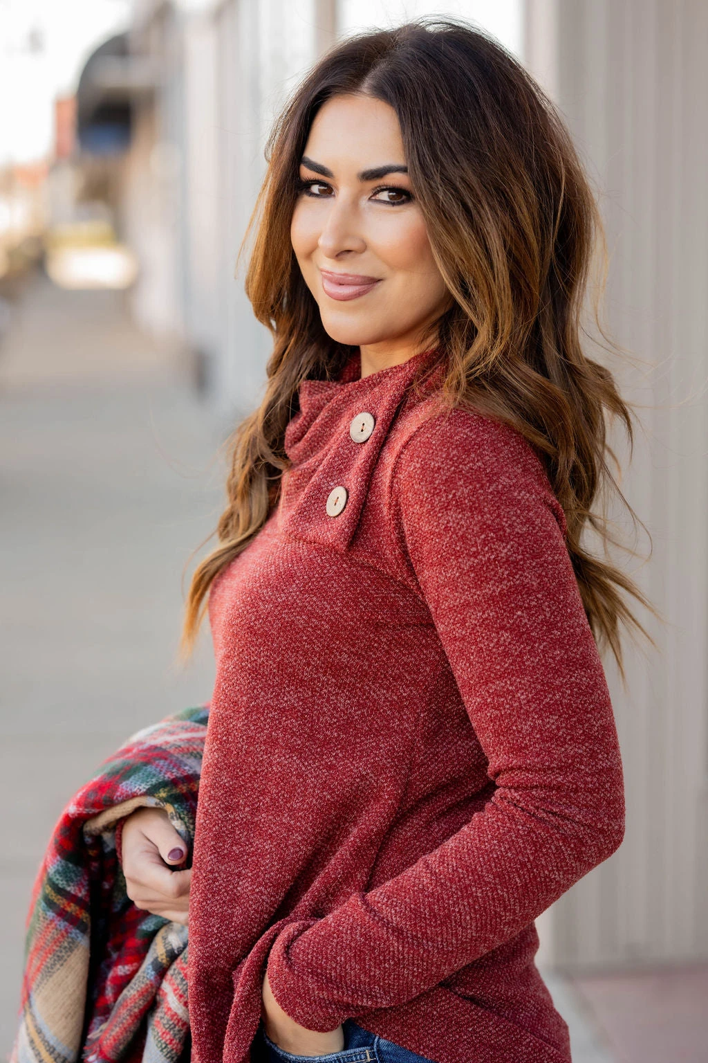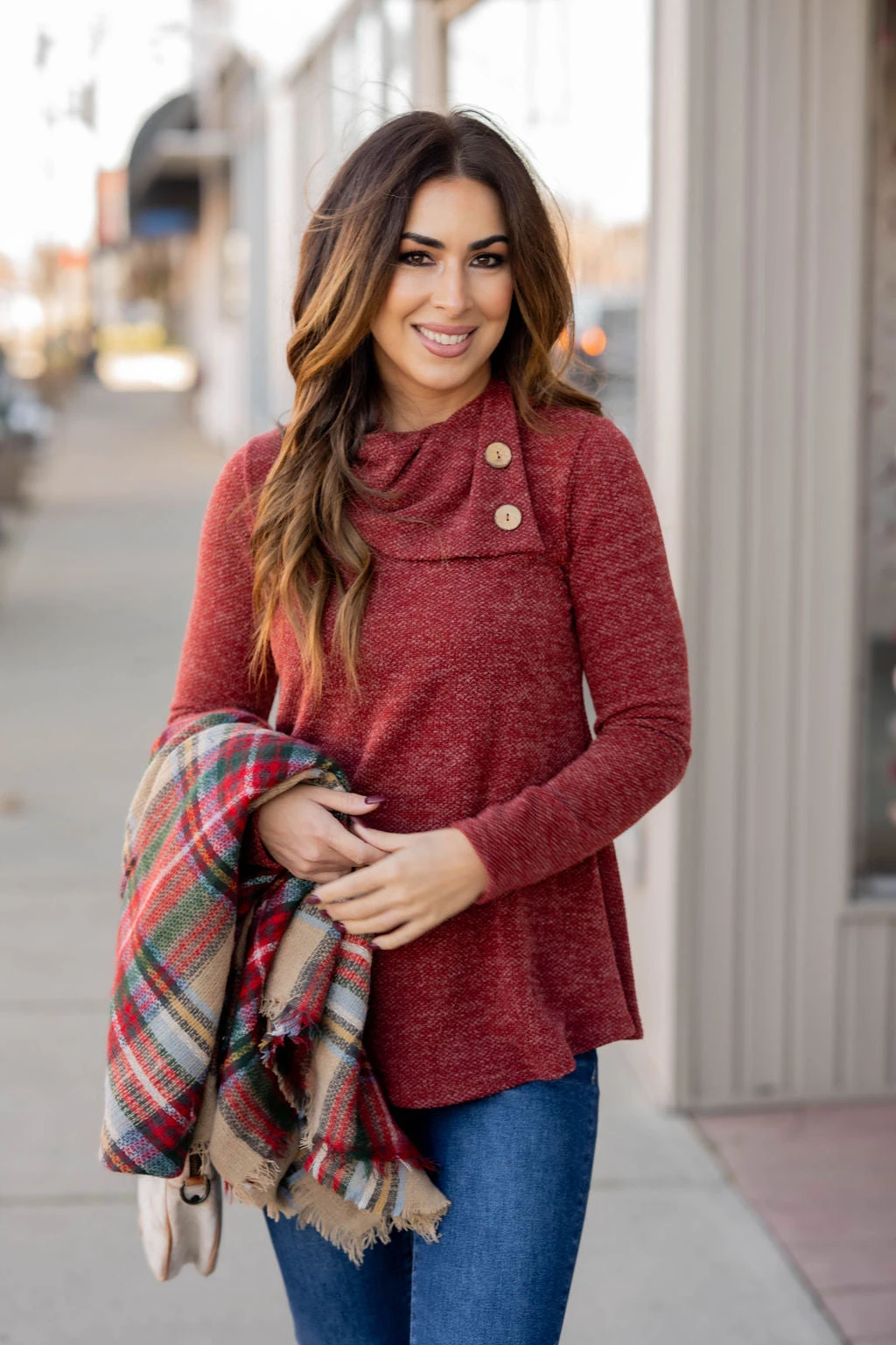 A comfy and cozy sweater that can be dressed up or down with ease! The heathered look with the button accents really sets this apart from the rest! Pair with your favorite denim, joggers, leggings, or our Betsey’s Jeggings for a quick and easy look! Chilly? Add a vest or shacket with ease!