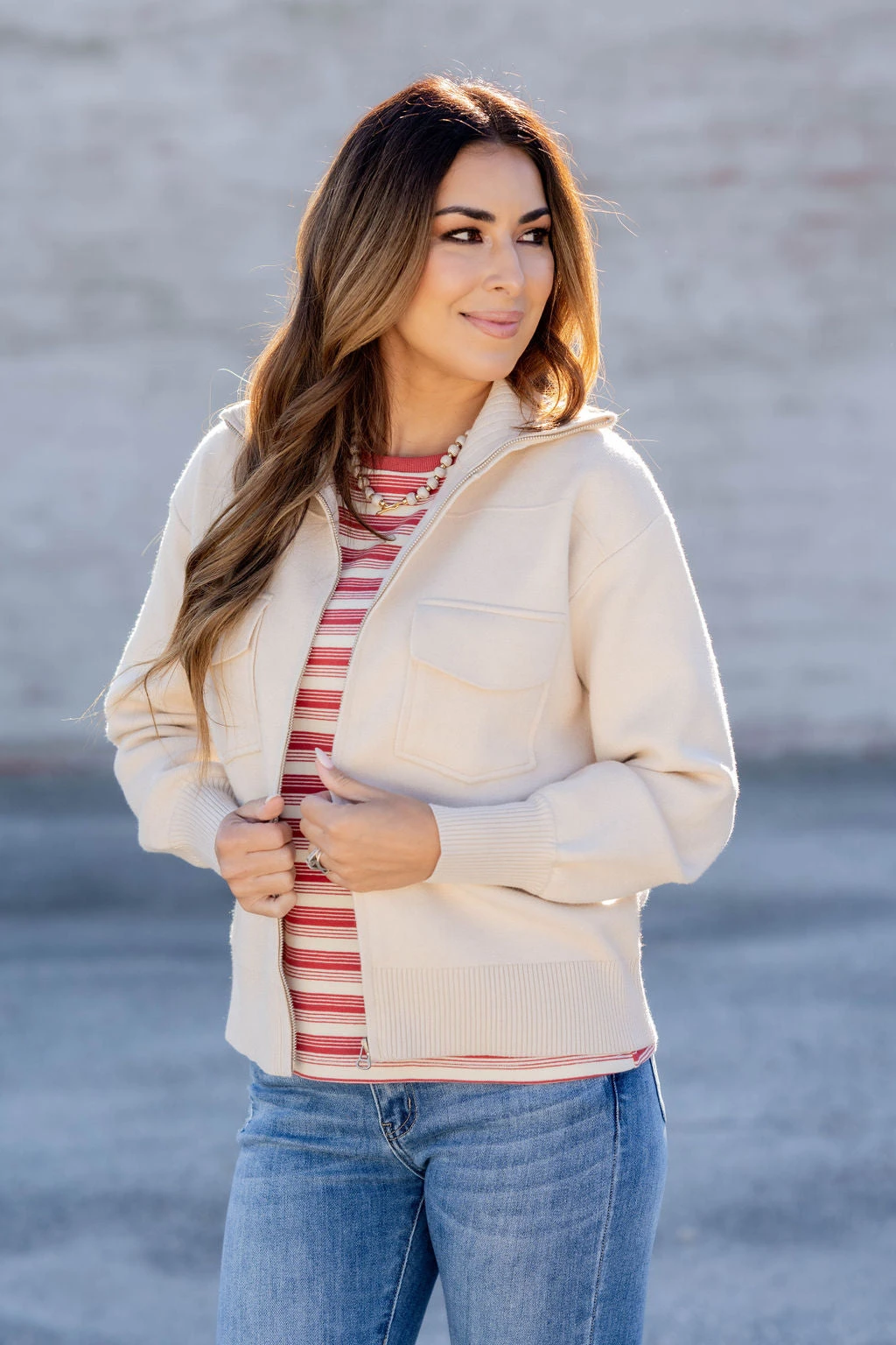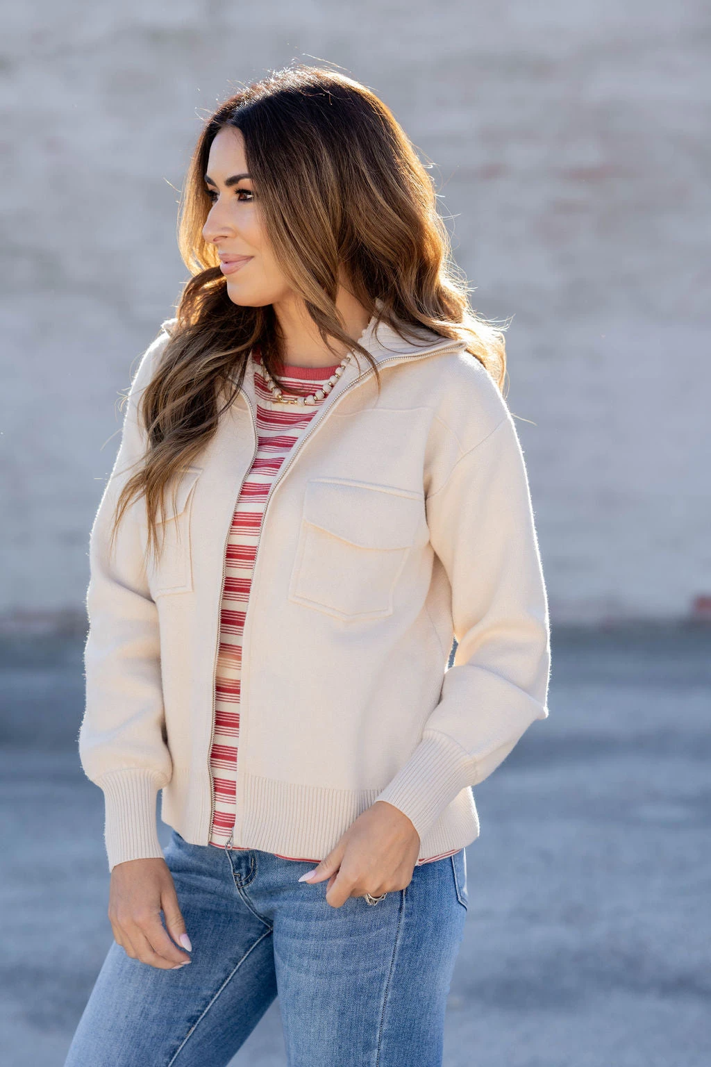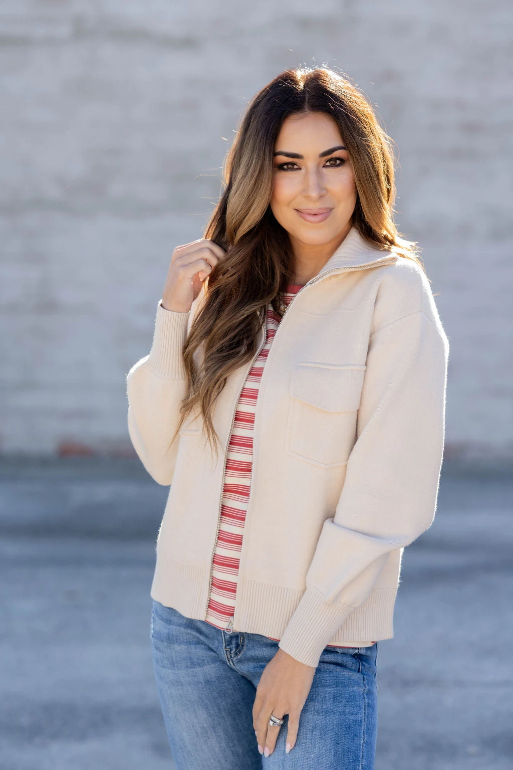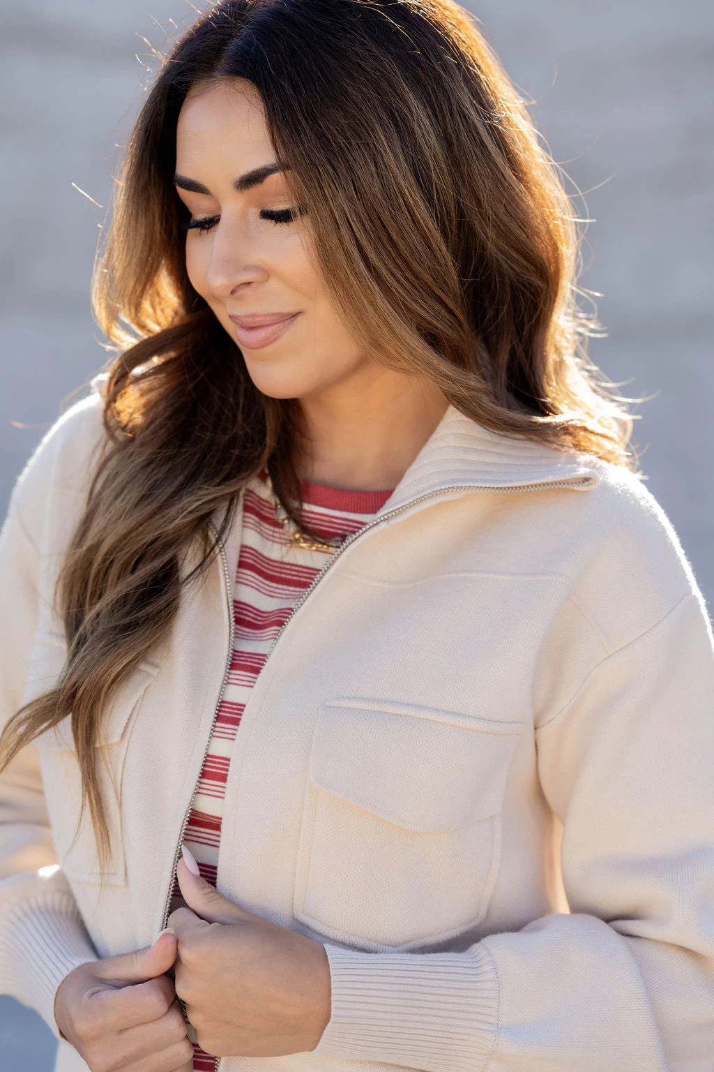 The feel of a sweater in jacket form! Whether you’re pairing with a feminine and flirty sundress or with a graphic tee and leggings combo, this jacket does it all! With the simplicity of this jacket, you’re going to love this for everyday wear!Â
