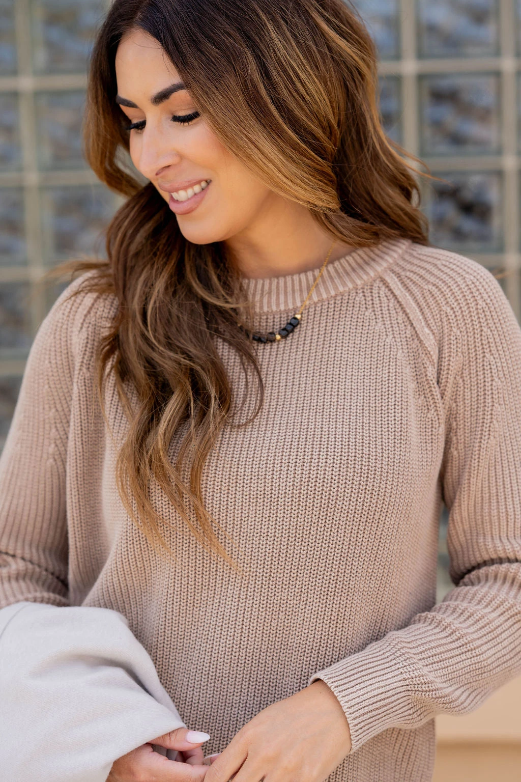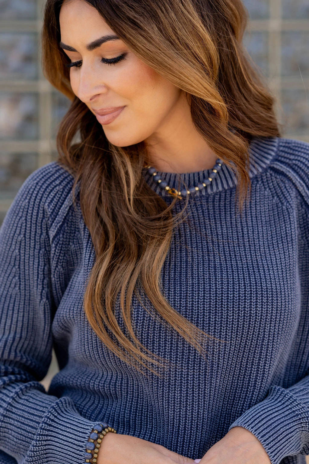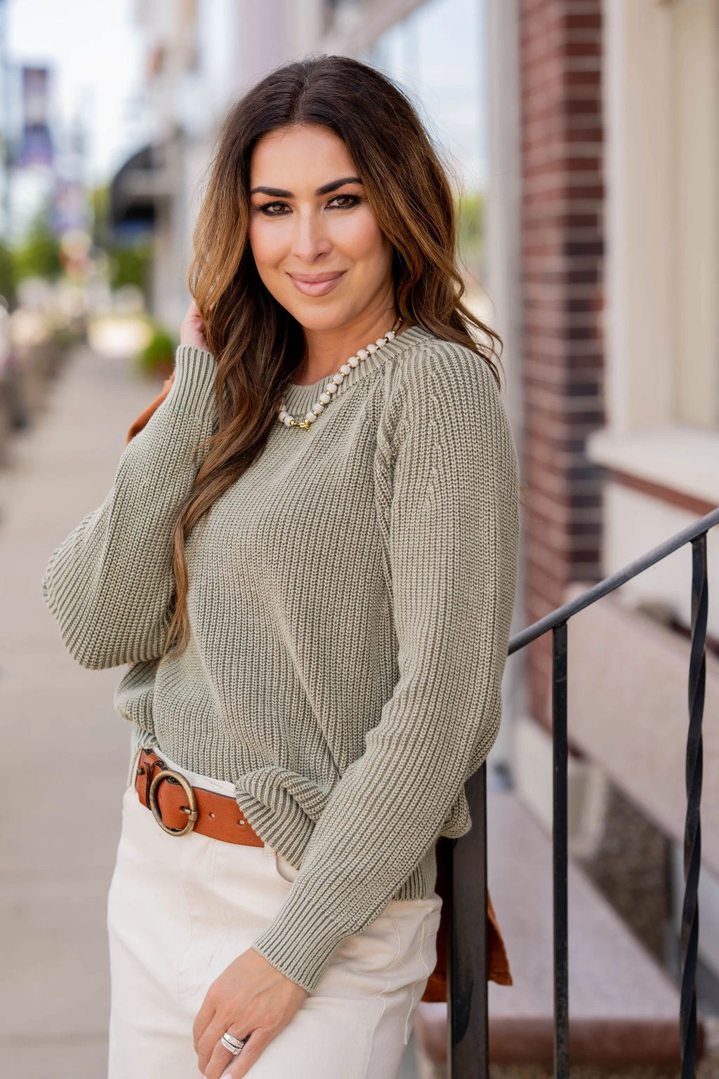 Sweater weather is here and we are ready! This knit sweater has ribbed trim and a thick stitching around the shoulders that gives it an edgier vibe! Pair with a skirt, your favorite denim, or our Betsey’s Jeggings for a more elevated feel or with leggings or joggers for a more casual look. Chilly? Add a vest or jacket with ease! Don’t forget to accessorize this to match your style.