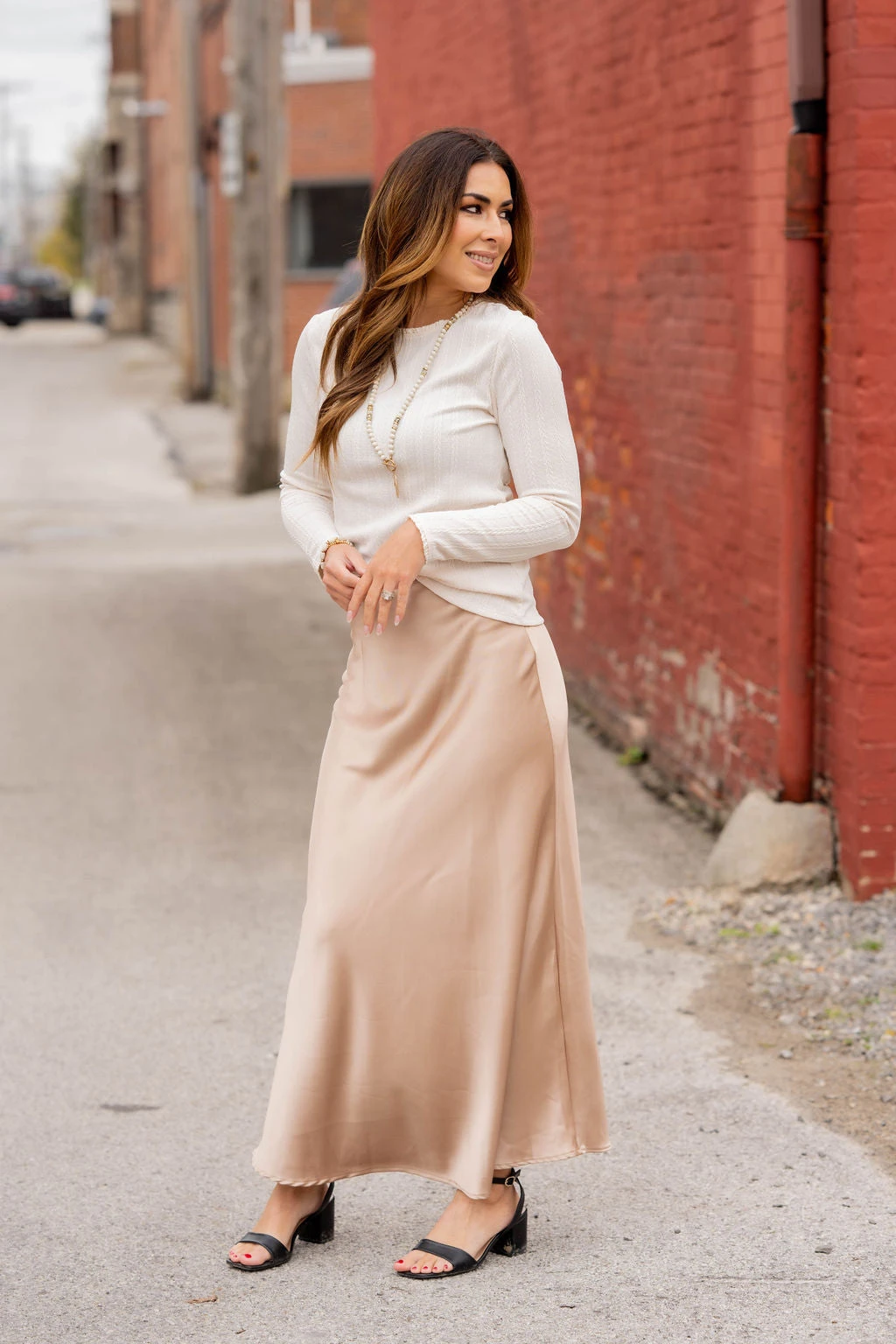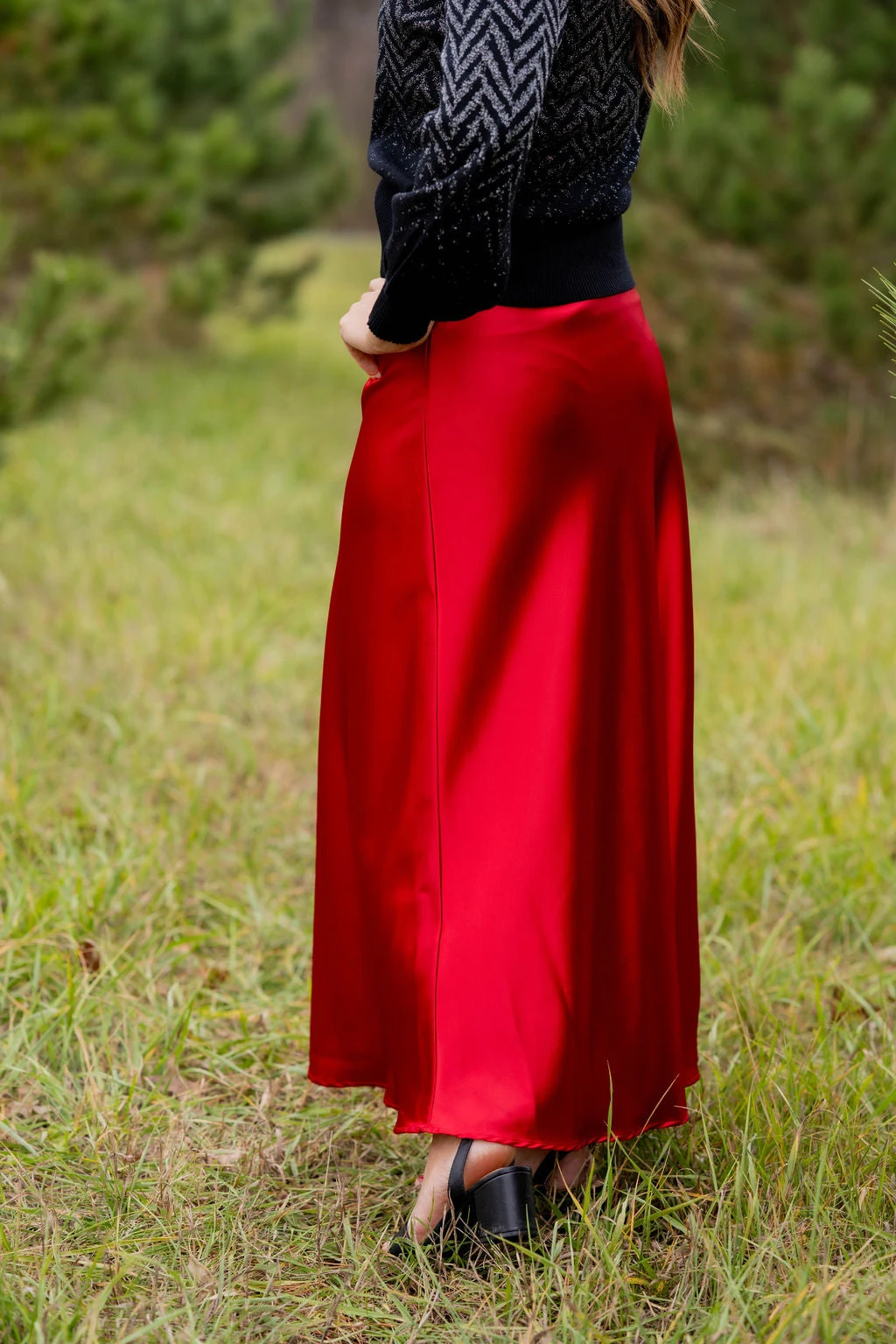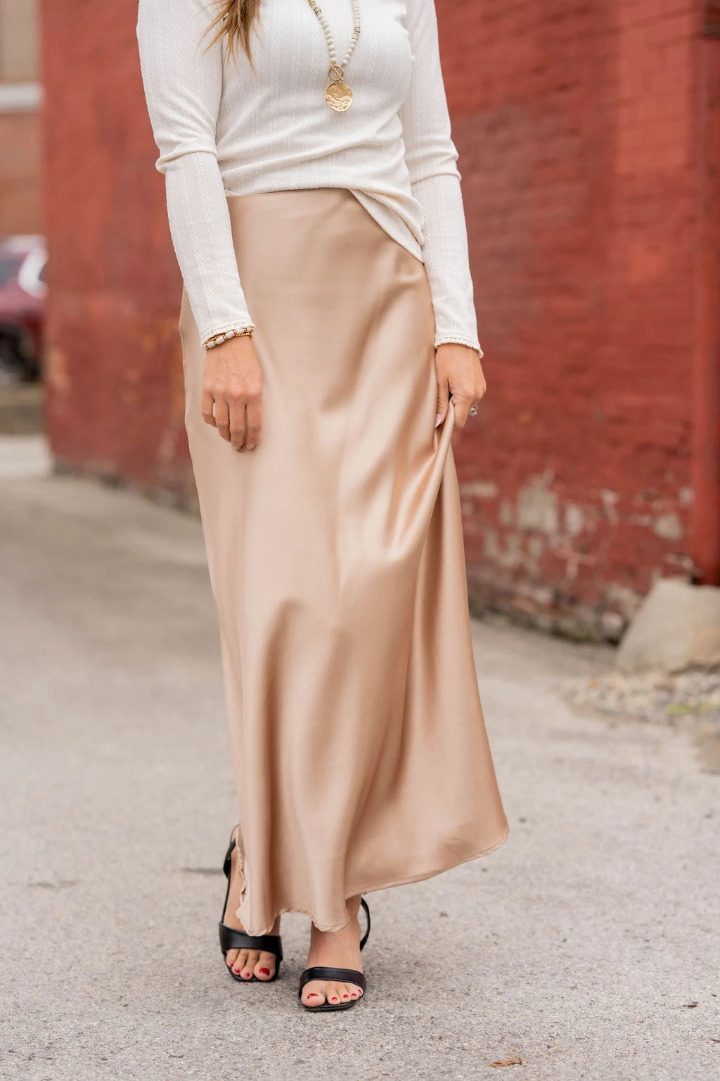 We cannot get over how stylish this skirt is! The chic material gives this such a cute, elegant look! Wear this skirt to any event and you are sure to receive compliments! We love tucking a blouse into this for a more elevated look or a basic or graphic tee for a casual feel!