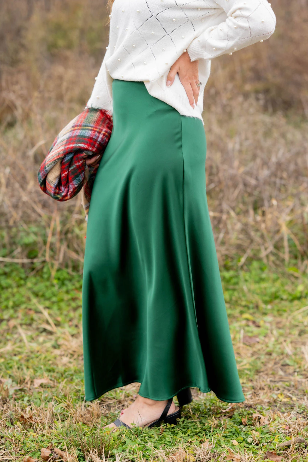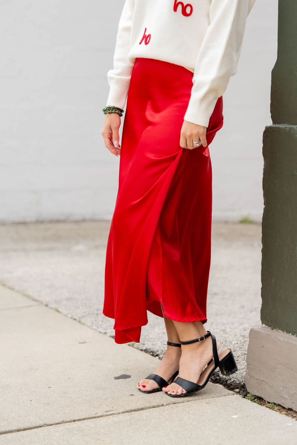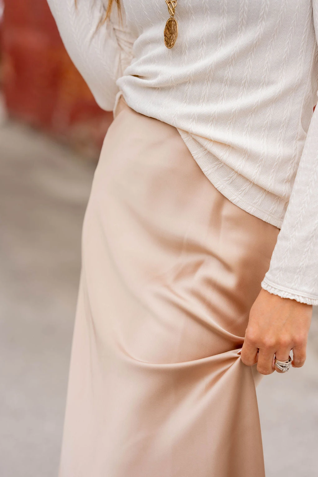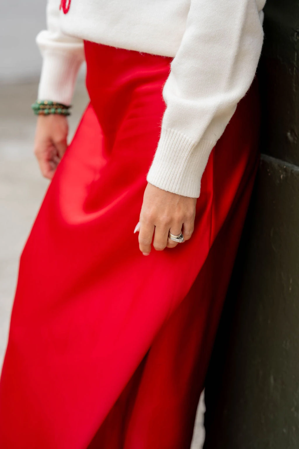 We cannot get over how stylish this skirt is! The chic material gives this such a cute, elegant look! Wear this skirt to any event and you are sure to receive compliments! We love tucking a blouse into this for a more elevated look or a basic or graphic tee for a casual feel!
