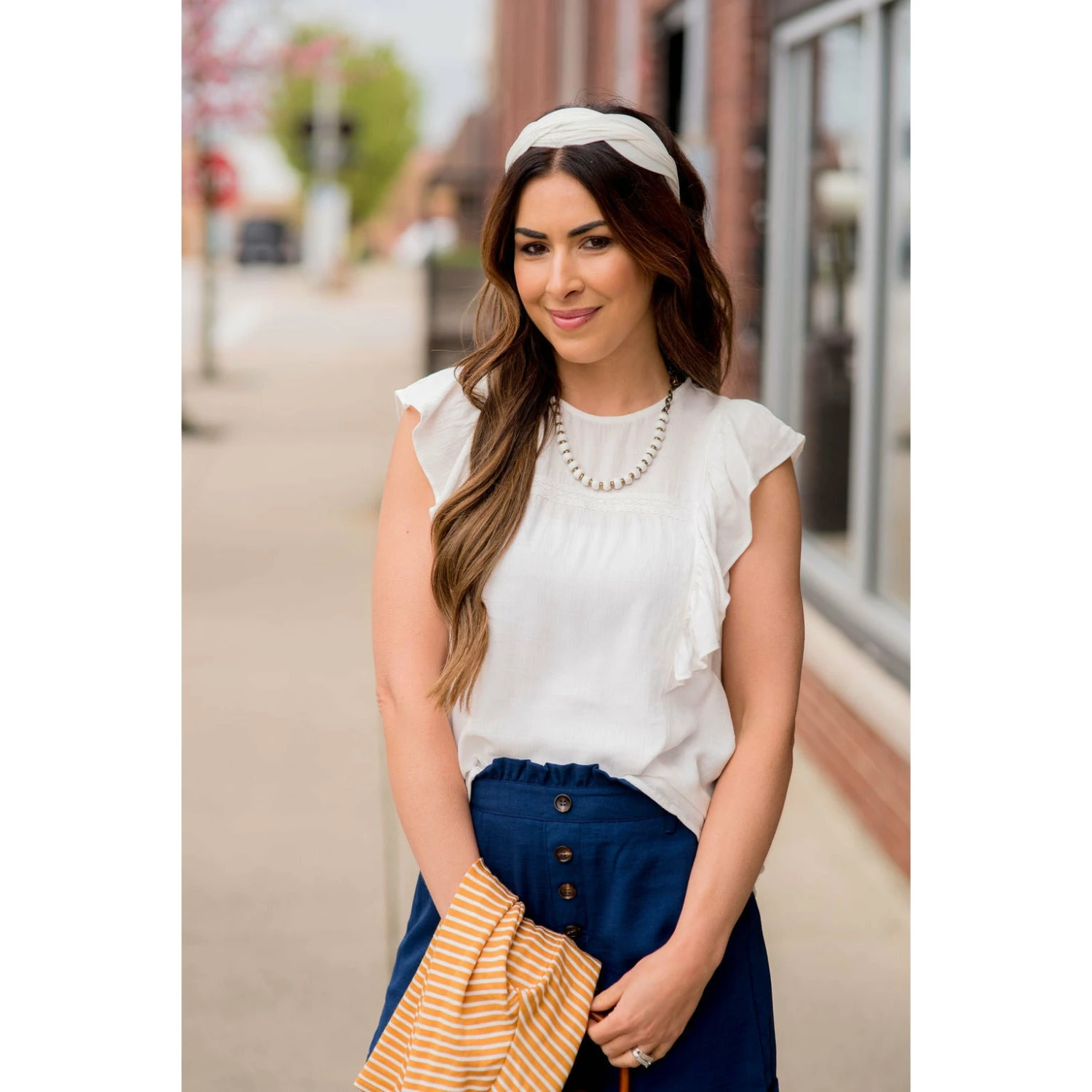 How cute is this tank!? The embroidery, the flutter accents, and the subtle texture really sets this apart from the rest! We love how easy this is to dress up or down for wherever the day takes you!