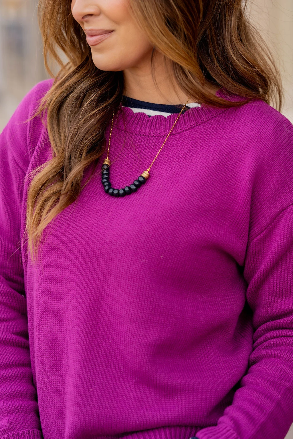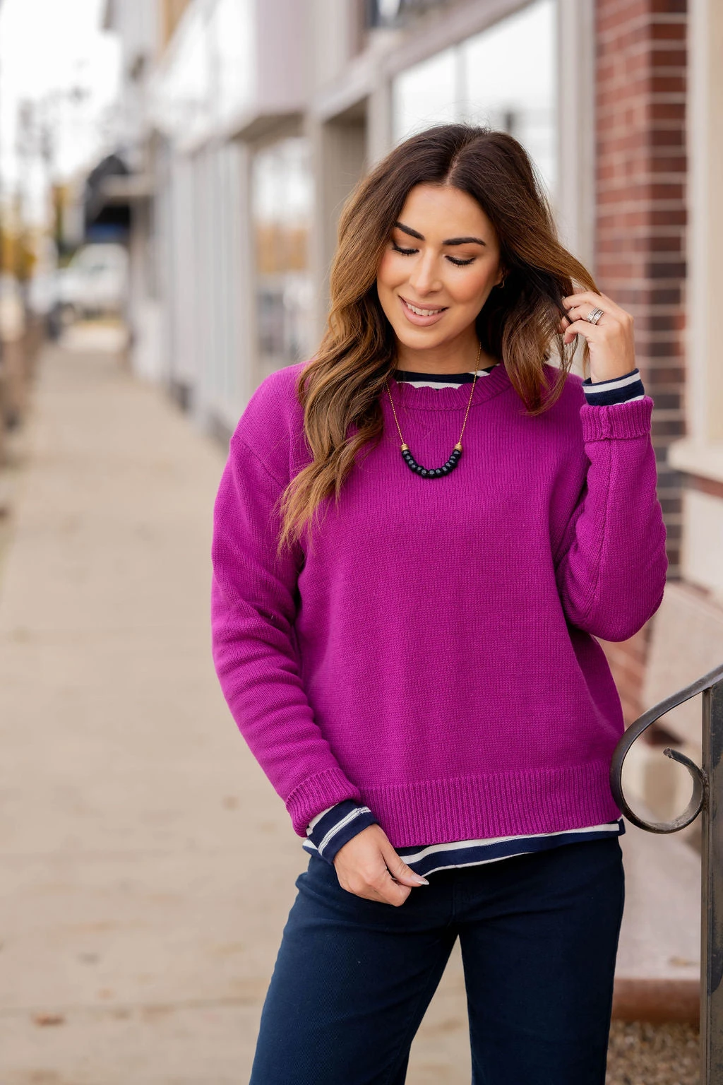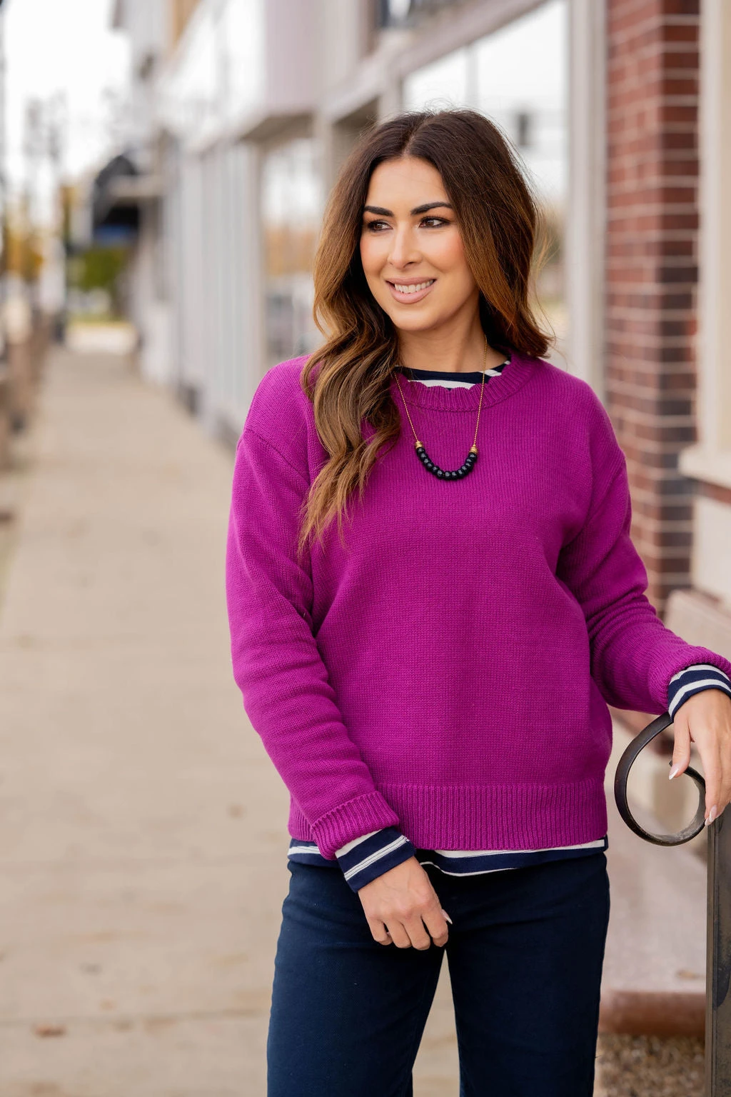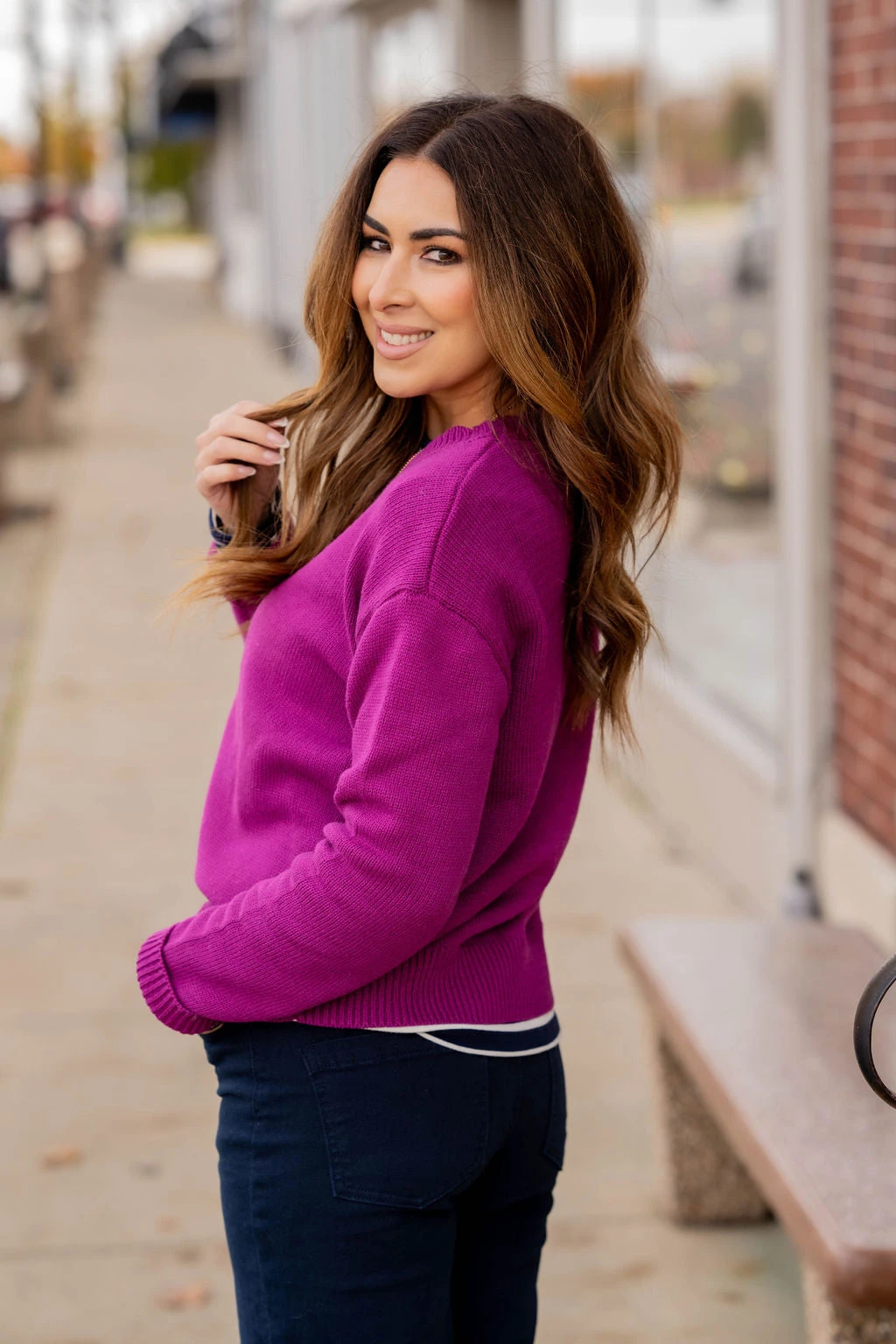 We love the simplicity of this sweater. The ribbed trim accents are so simple yet so chic! Pair this sweater with jeans, accessorize and add your favorite pair of shoes for a quick, stylish look! Chilly? Add a vest or jacket with ease!!