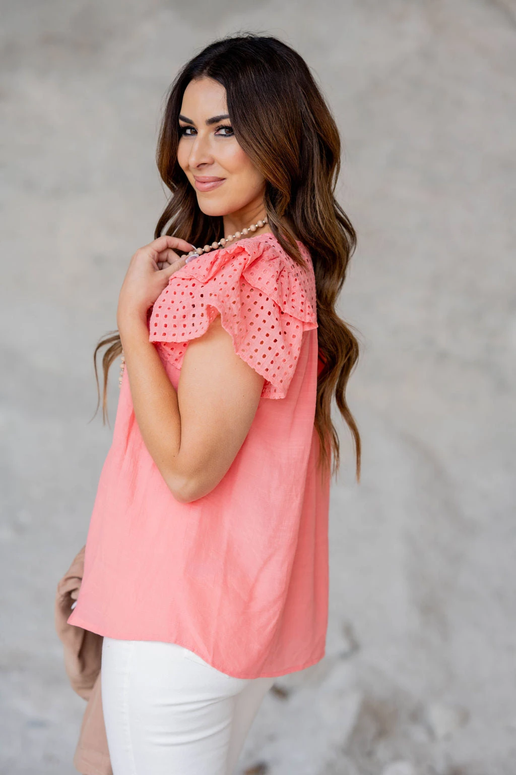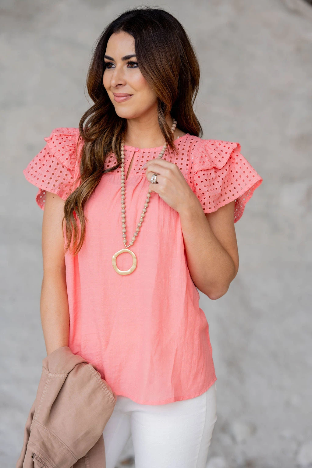 We absolutely LOVE the eyelet lace accents but this super lightweight material makes this blouse easy to transition you through any season! We suggest pairing this with a bold-colored Betsey’s Exclusive Shorts or Betsey’s Jeggings and a statement necklace for a complete look! Easily pair this with a denim jacket or cardigan for the cooler months as well!