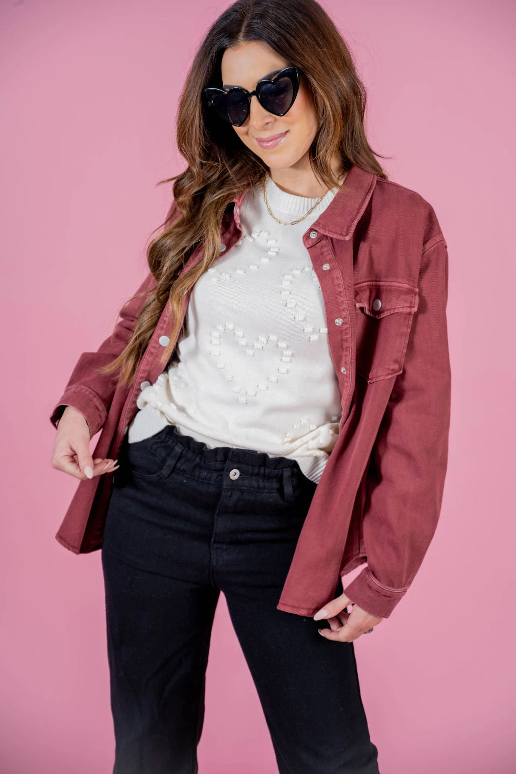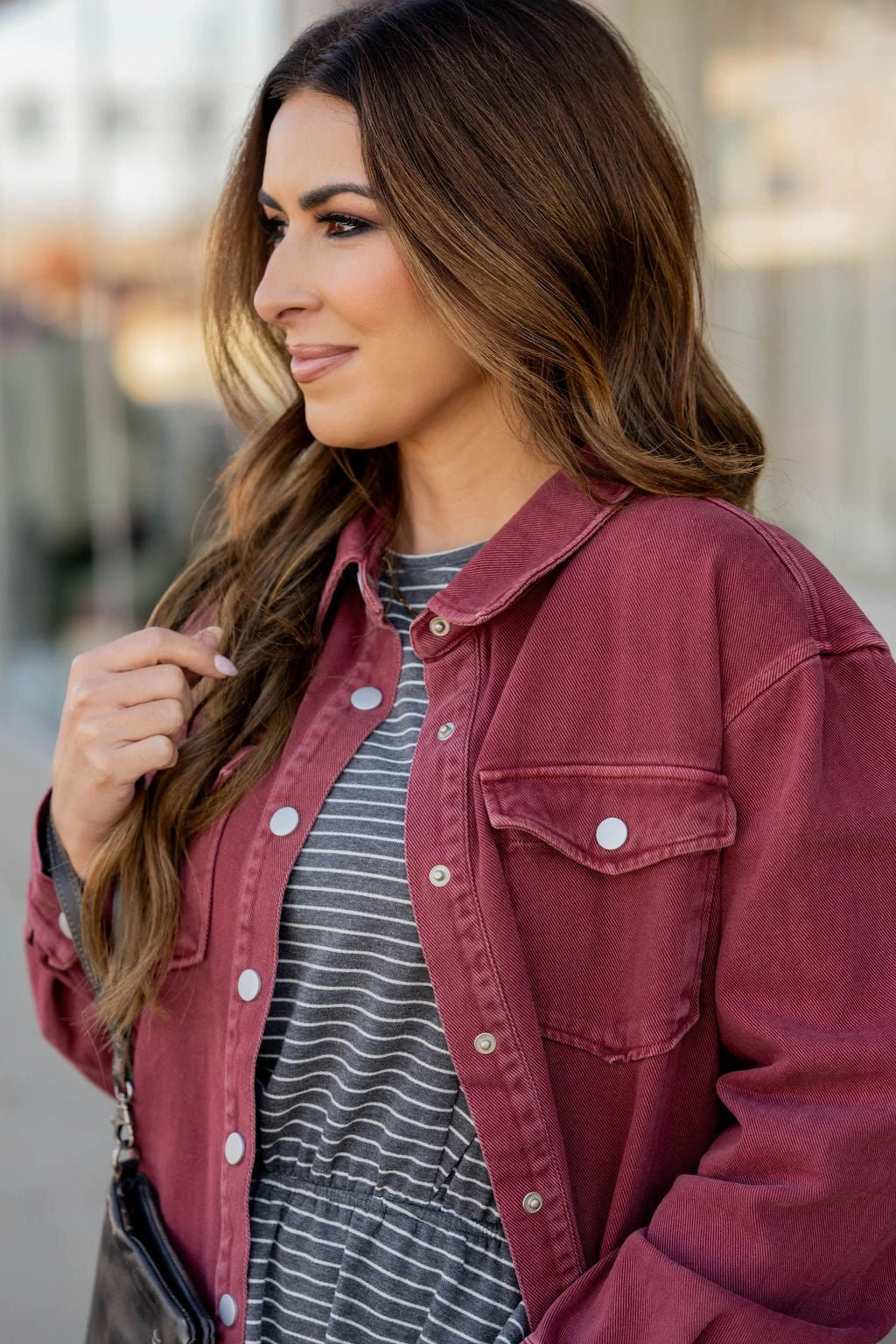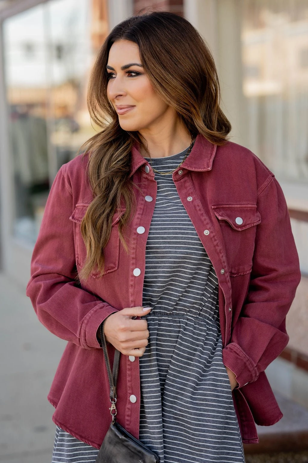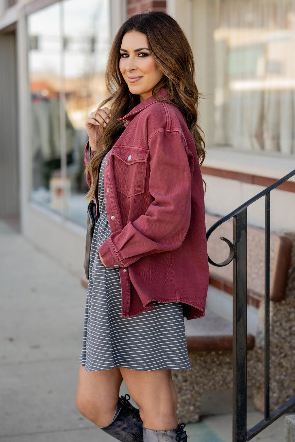Denim jackets go with any and everything! The unique color of this one will bring a unique feel to any look!