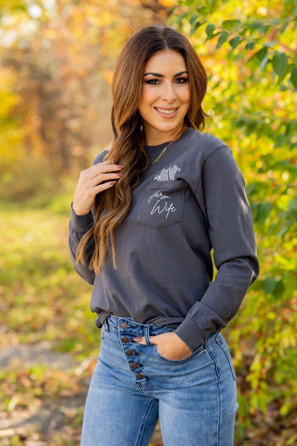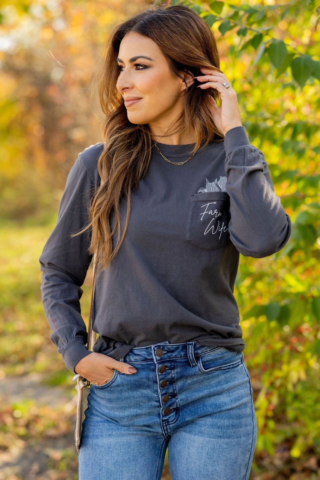 A soft and lightweight graphic tee with a pocket accent to set it apart from the rest! Pair this with shorts or a skirt in the warmer months or use as the base for your layering pieces in the cooler ones!