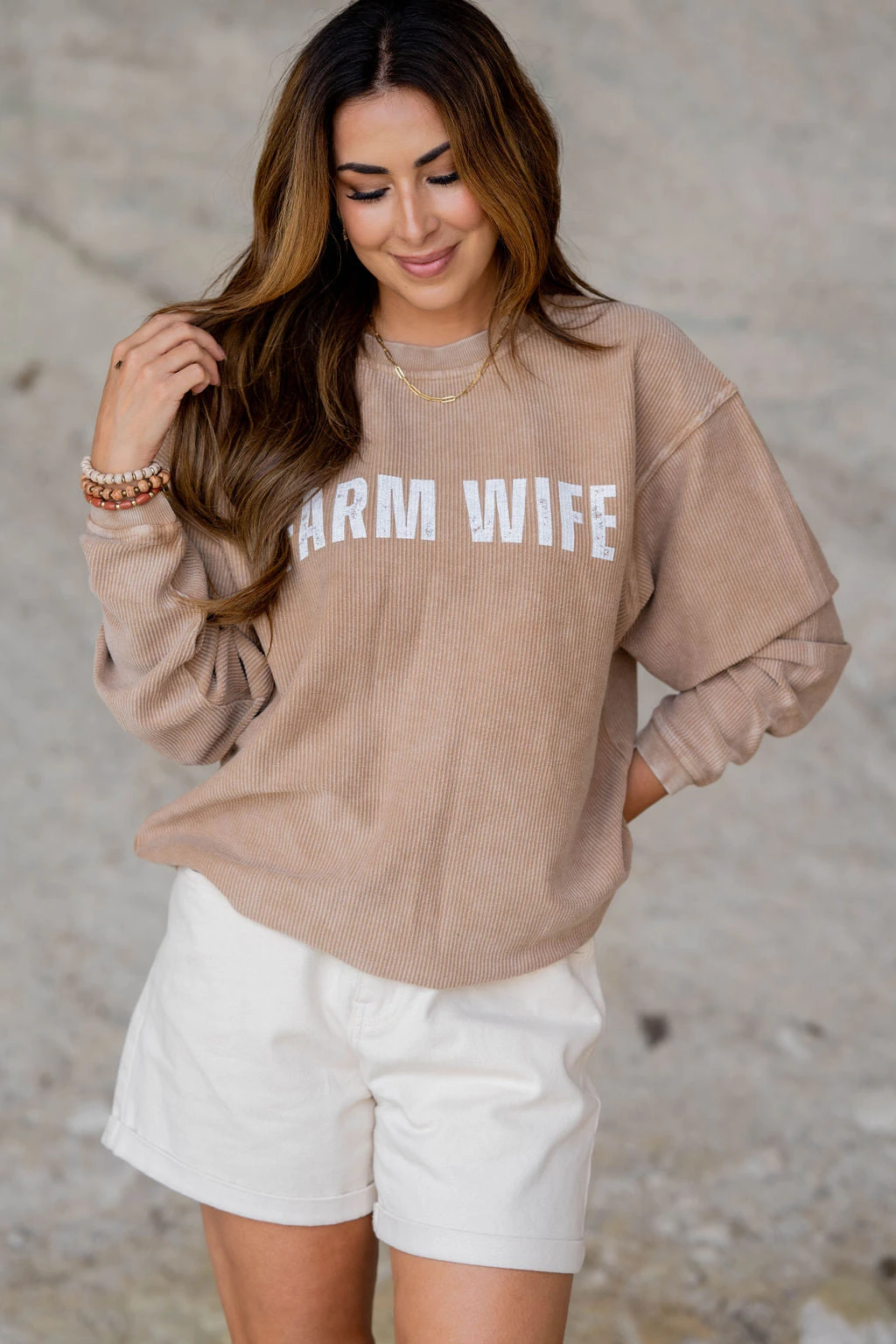 Our graphic crewnecks are already a fan favorite but with the elevated ribbed texture, this is a must-have! Thro on with shorts for a cute transitional look or with leggings, joggers, or denim in the cooler months!