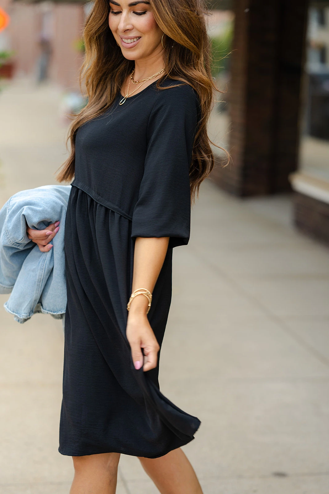 With the fun faux-layered look of a 3/4 sleeve top and skirt this dress is unlike all of the rest! Just simply add your favorite accessories and footwear to complete the look! Chilly? This goes great with a vest or jacket and leggings as well! The simplicity of this dress allows you to style it with ease for everyday wear!