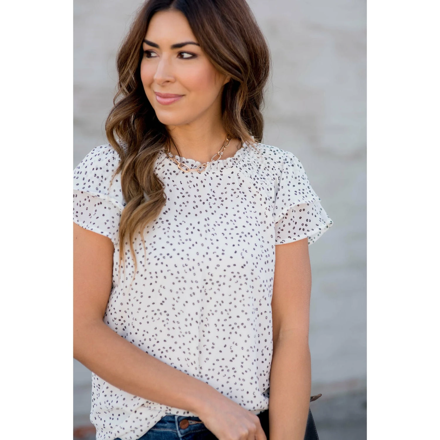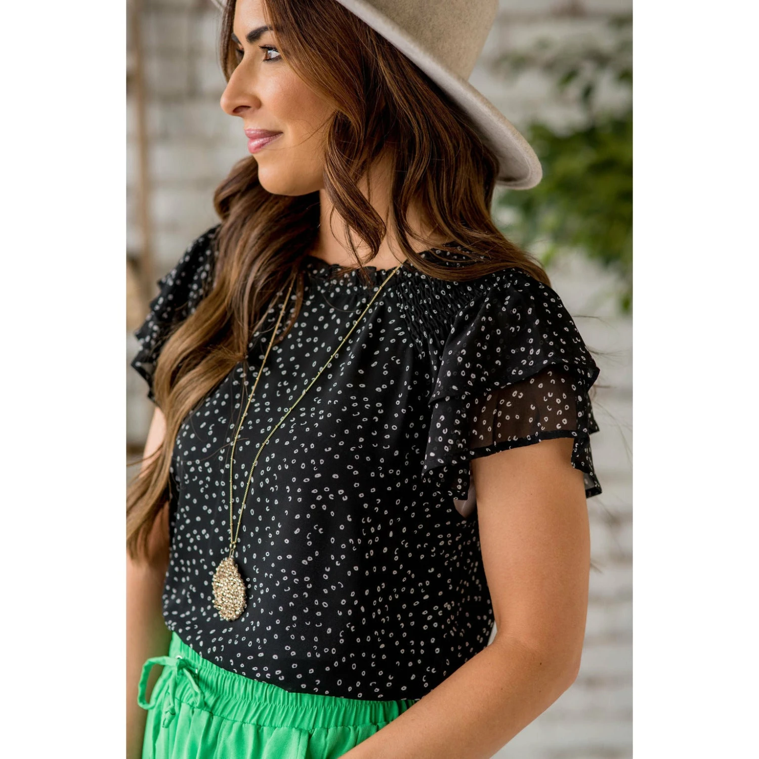 Are you looking for a cute blouse that is a bit different? Look no further! This semi circle blouse has flare sleeves, and can be dressed up or worn casual! Don’t forget to wear a cardigan over it for that extra layer if you need it! It pairs well with jeans or jeggings!