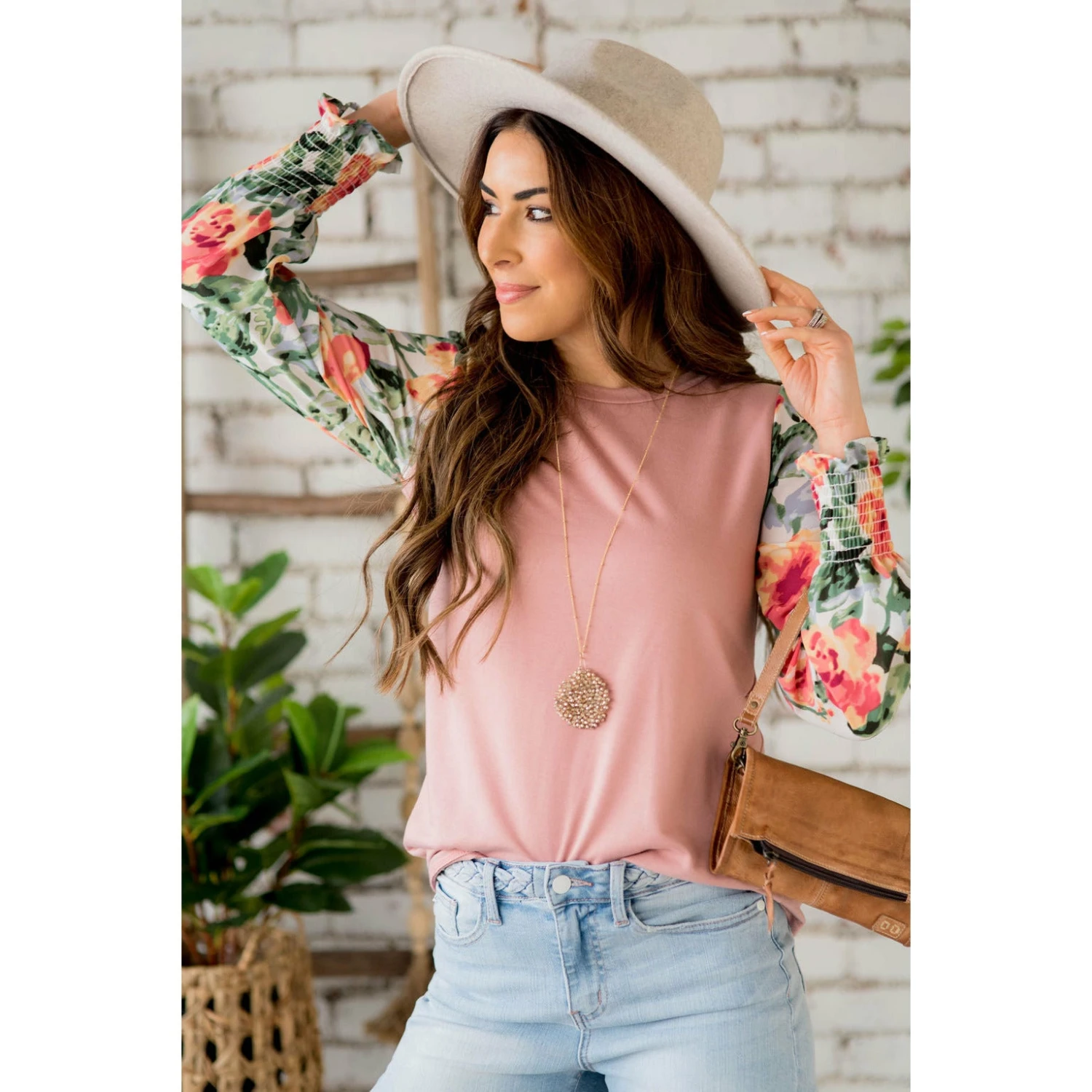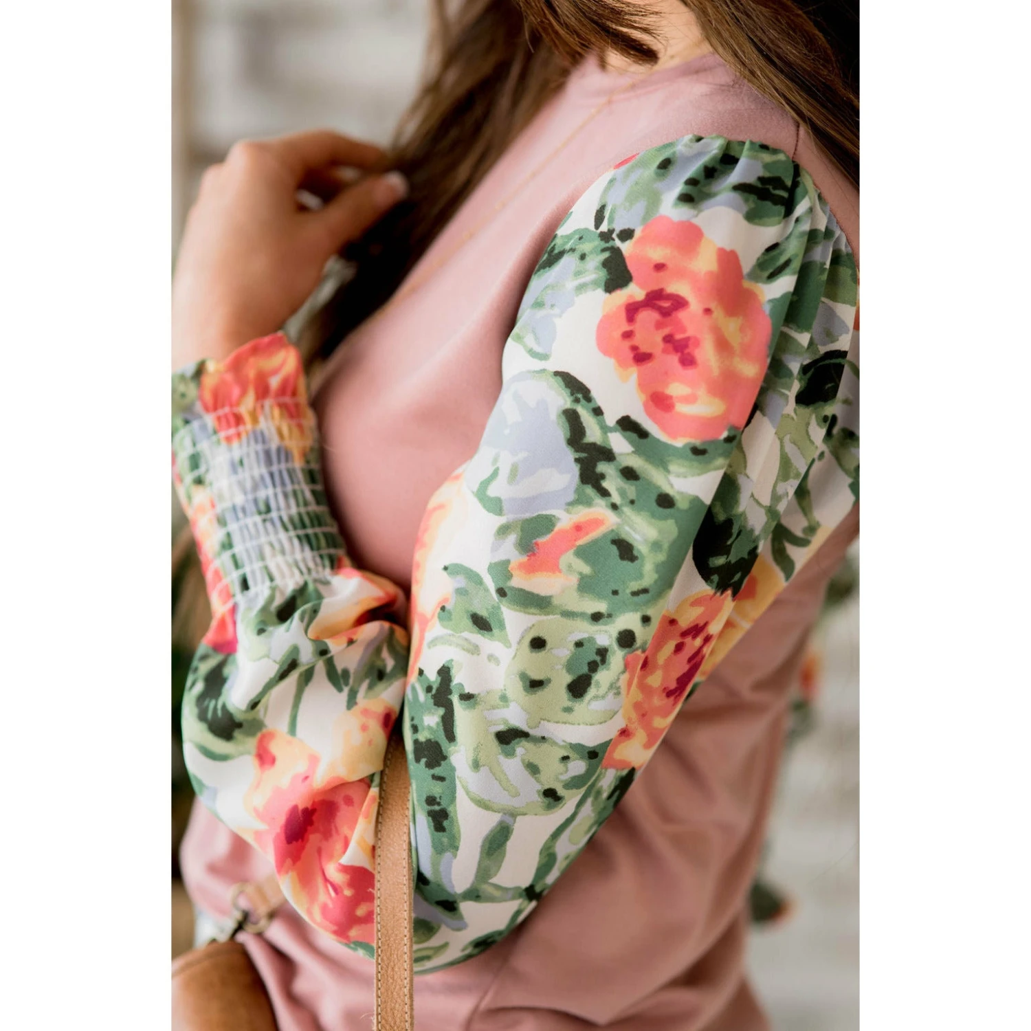 We are loving all of this floral print. The bright colors and floral print have us so ready for warmer weather! This long sleeve is the perfect piece to help you transition from cold weather to warmer weather!