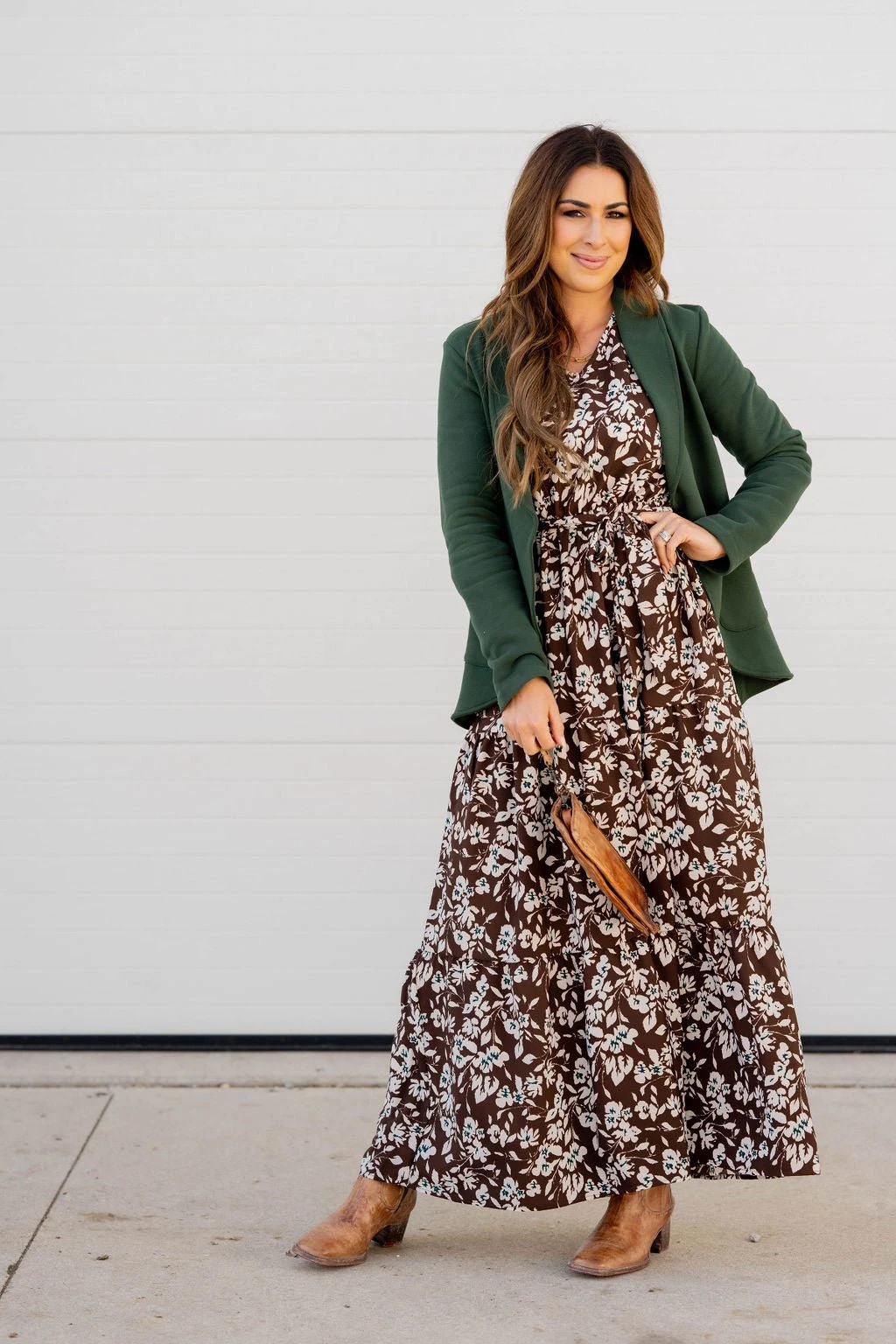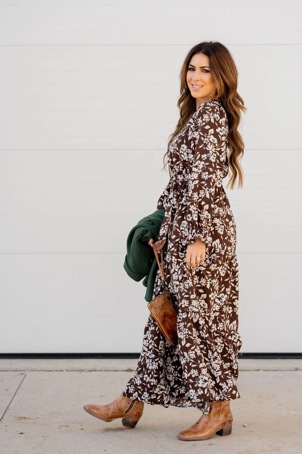 This stunning maxi dress is perfect for every event or occasion! The stunning floral print, tiered style, slimming tie waist, ruffle accents, and the balloon sleeves all come together seamlessly to create this classy dress! Whether you’re going to work, a wedding, holiday party, church, or date night, we just know you will turn heads!