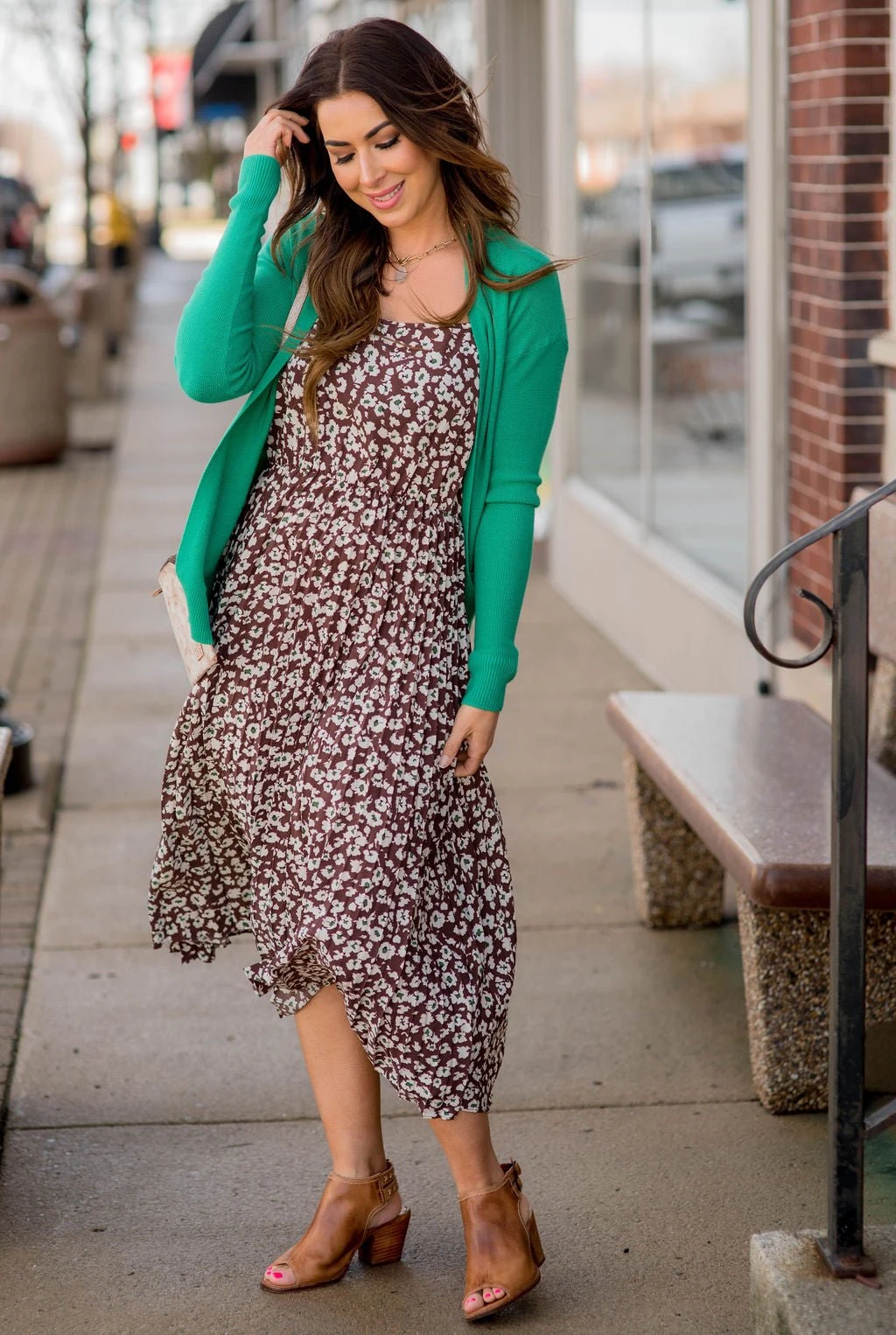 A stunning floral dress with a fun and flirty pleated bottom! This is perfect for any event or occasion and can be worn alone with sandals or wedges in the warmer months or paired with a cardigan, blazer, or jacket and booties in the cooler ones! You are sure to turn heads wherever you go!