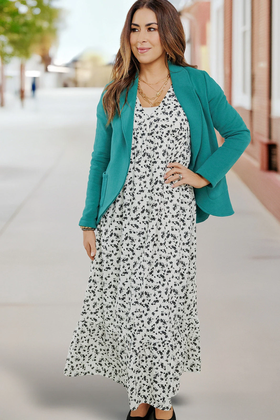 Maxi dresses are super comfy and trendy and perfect for any occasion! We’re loving the floral print, flowy bottom, open tie back, and puff sleeves of this one, setting it apart from the rest! Wear alone with a fun pair of earrings or a statement necklace for the warmer months, or pair with a denim jacket or cardigan for the cooler ones!Â