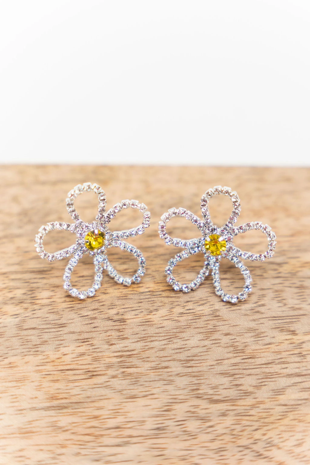 These unique shaped stud earrings are lined in shining gemstones to make them pop! Pair with any outfit to elevate it even more!