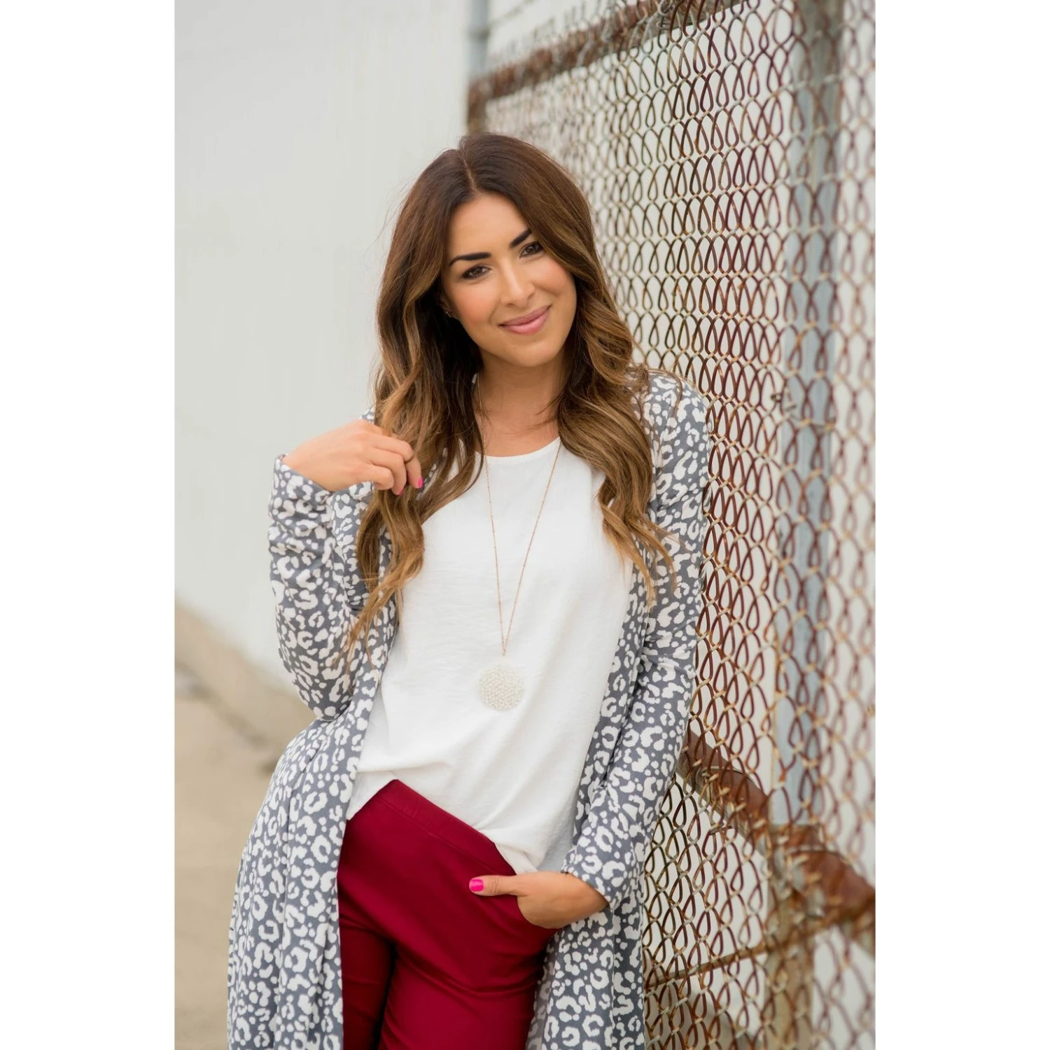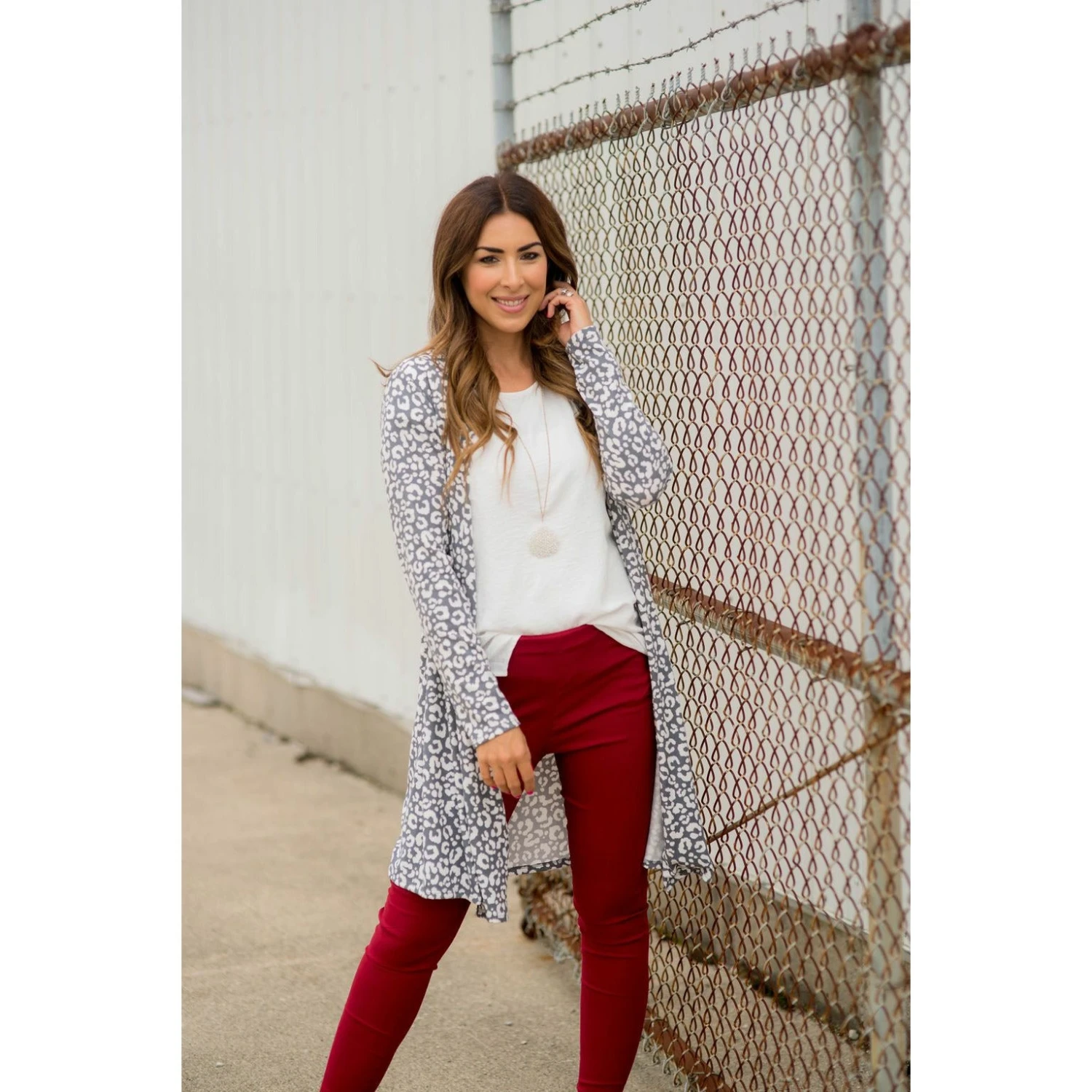This lightweight leopard cardigan is one you will! In grey and mocha, you will want both colors to be sure you always have something that matches with them! Wear it over a dress or jeggings and a blouse!