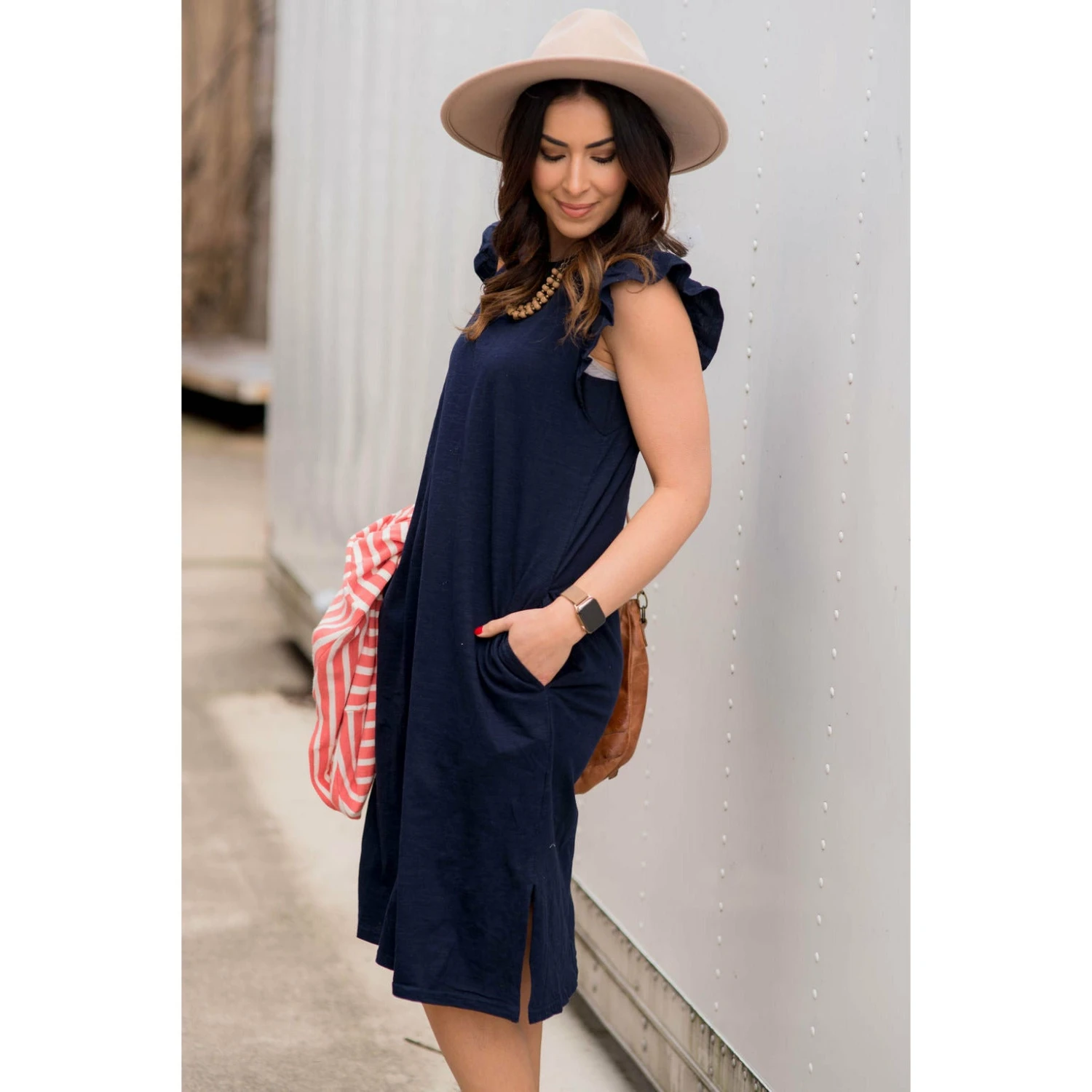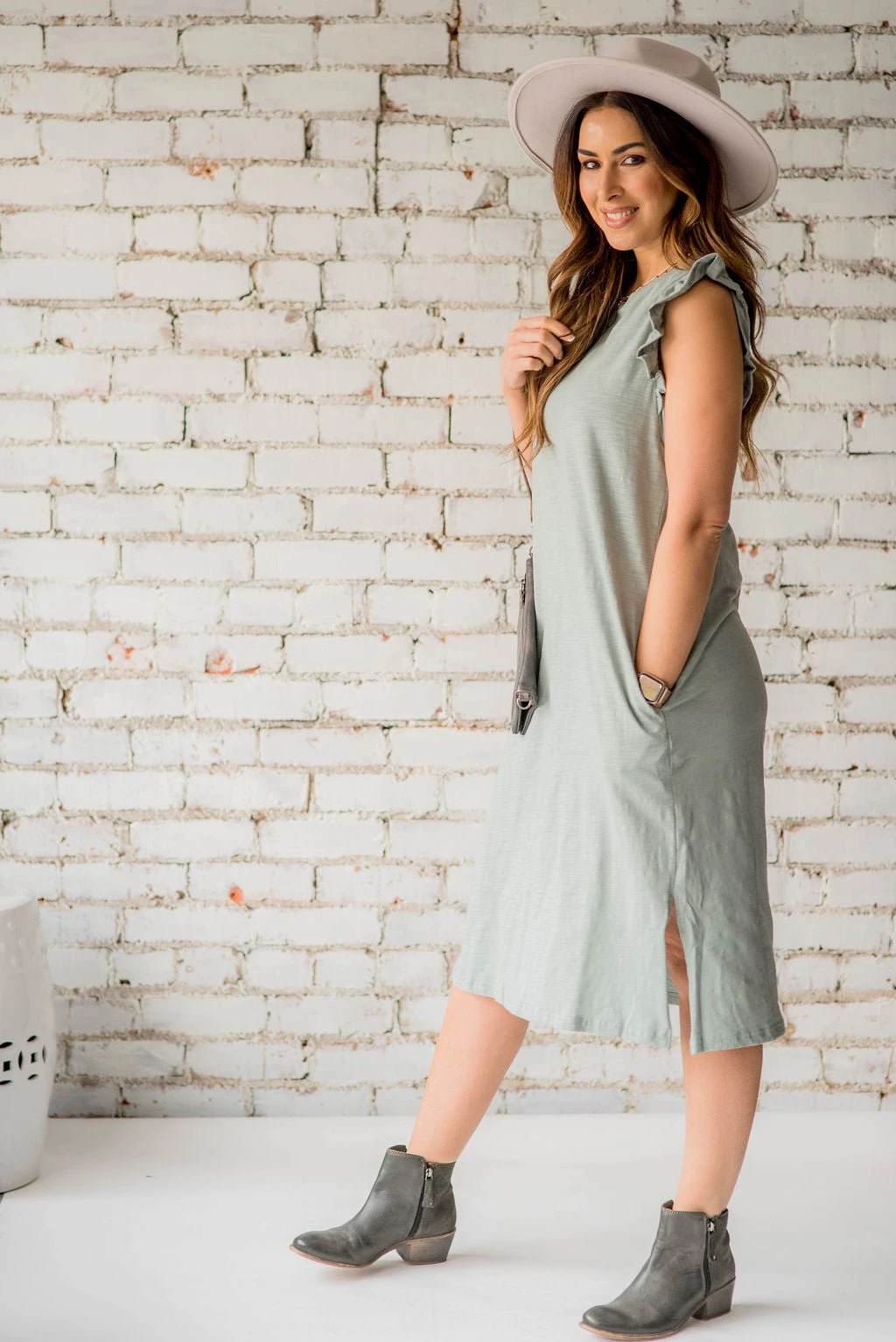 Basic enough to dress up or down to fit your style, but bold enough to stand out on its own! This dress features a midi length, making it appropriate for the office, the classroom, or Sunday service but also features a side slit that gives a fun and flirty vibe! The flutter sleeves are perfect to take this dress up a notch for the warmer months but can easily be paired with a denim jacket or cardigan for the cooler ones! With so many ways to style, we just know this dress will surely become a staple piece in your closet!