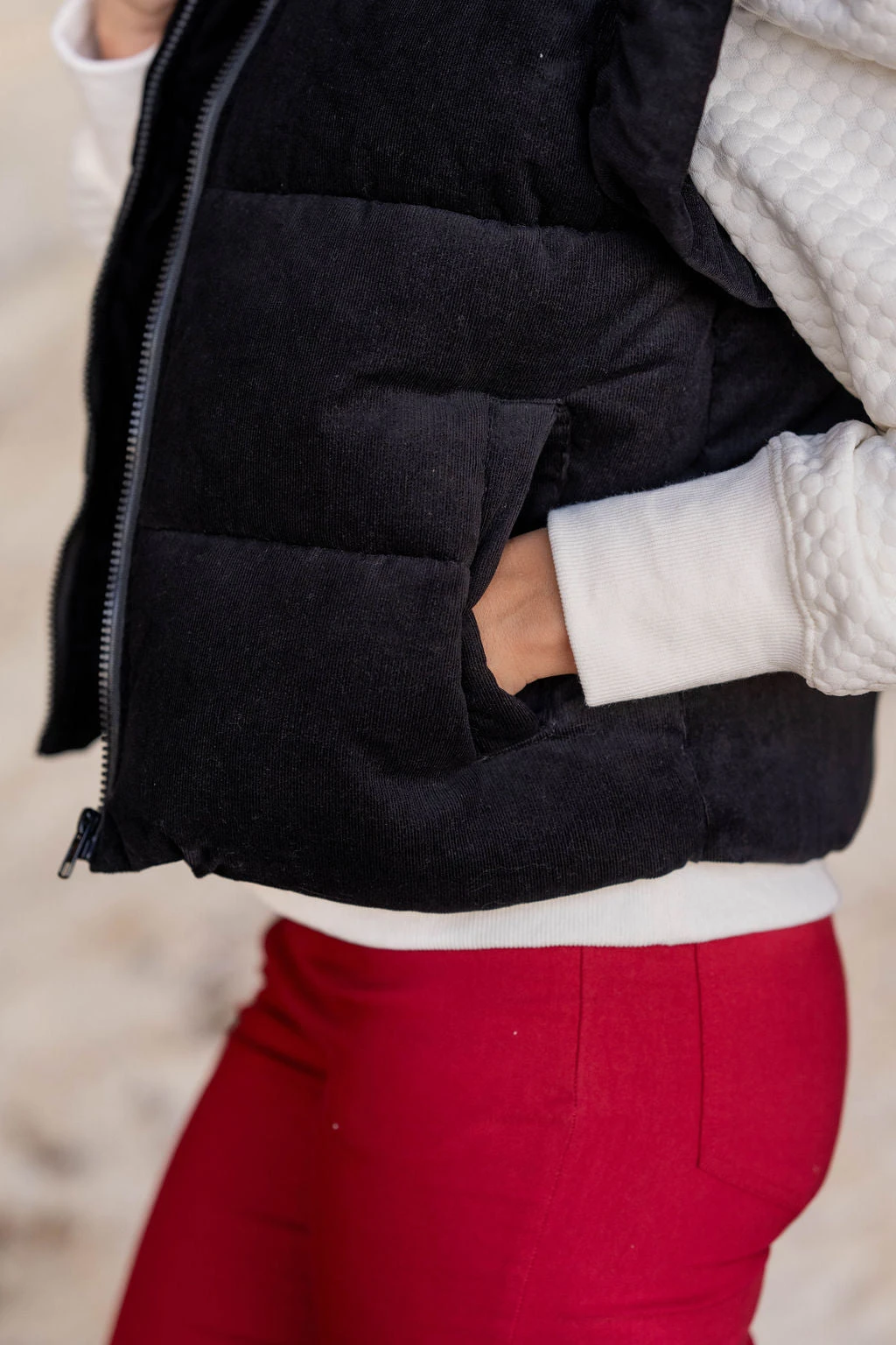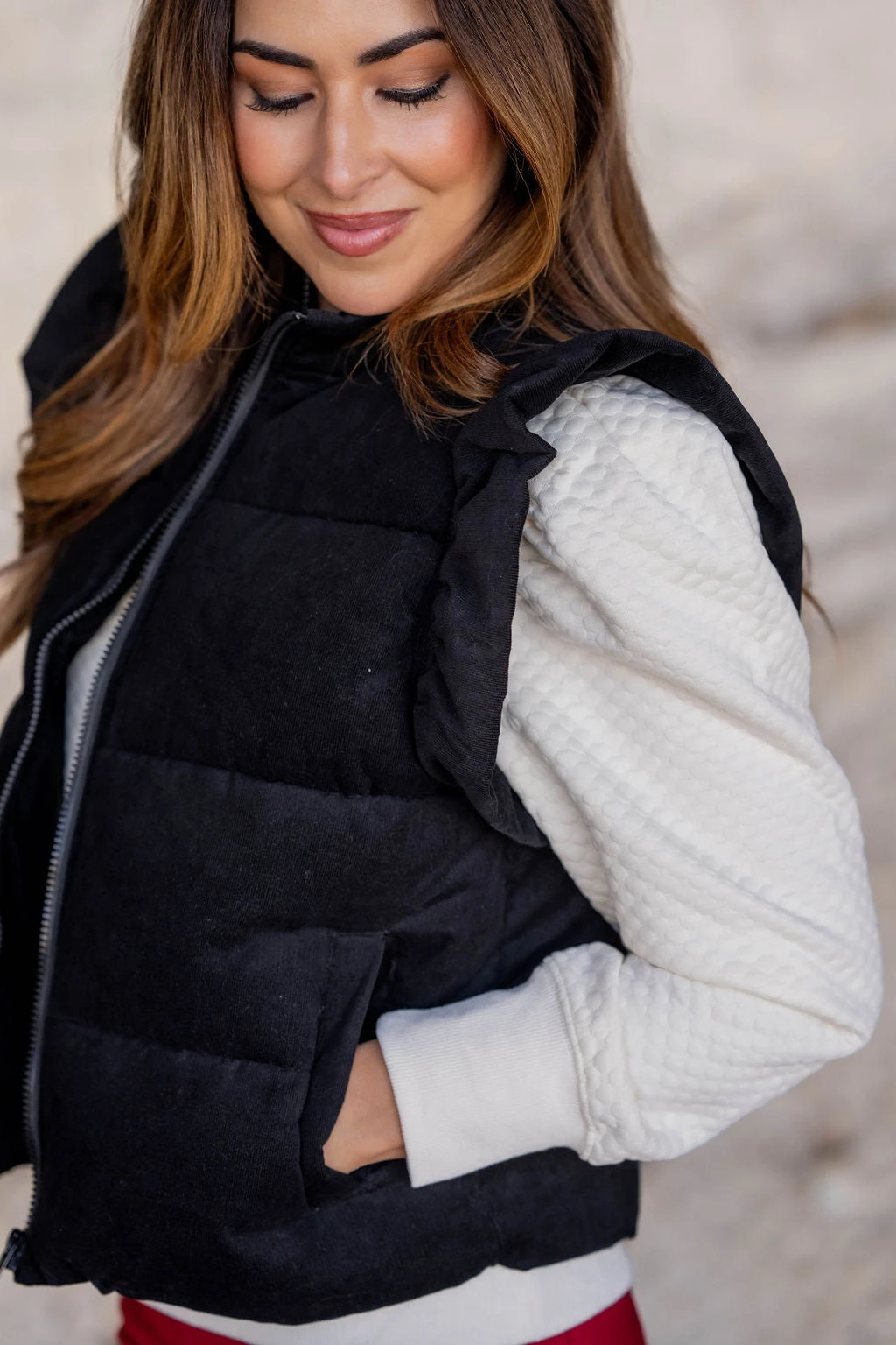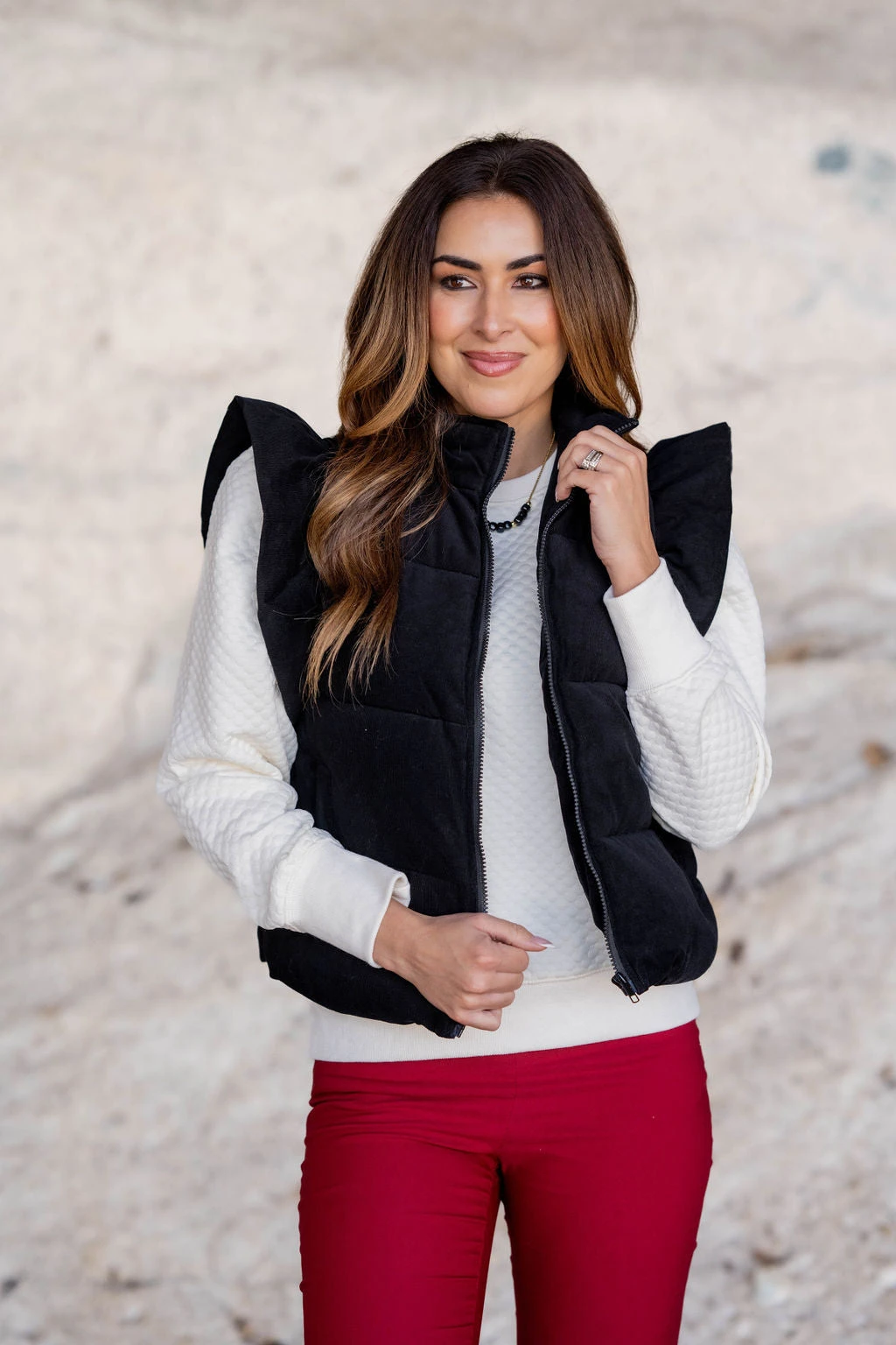This vest is one-of-a-kind! Adding a vest is a quick and easy way to take your outfit to the next level of stylish! Whether you pair with a blouse, sweater, graphic crewneck, button up, or just a basic long sleeve tee, we know this will be a staple piece in your wardrobe! The flutter trim elevates any look.