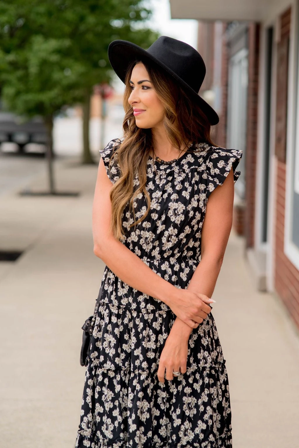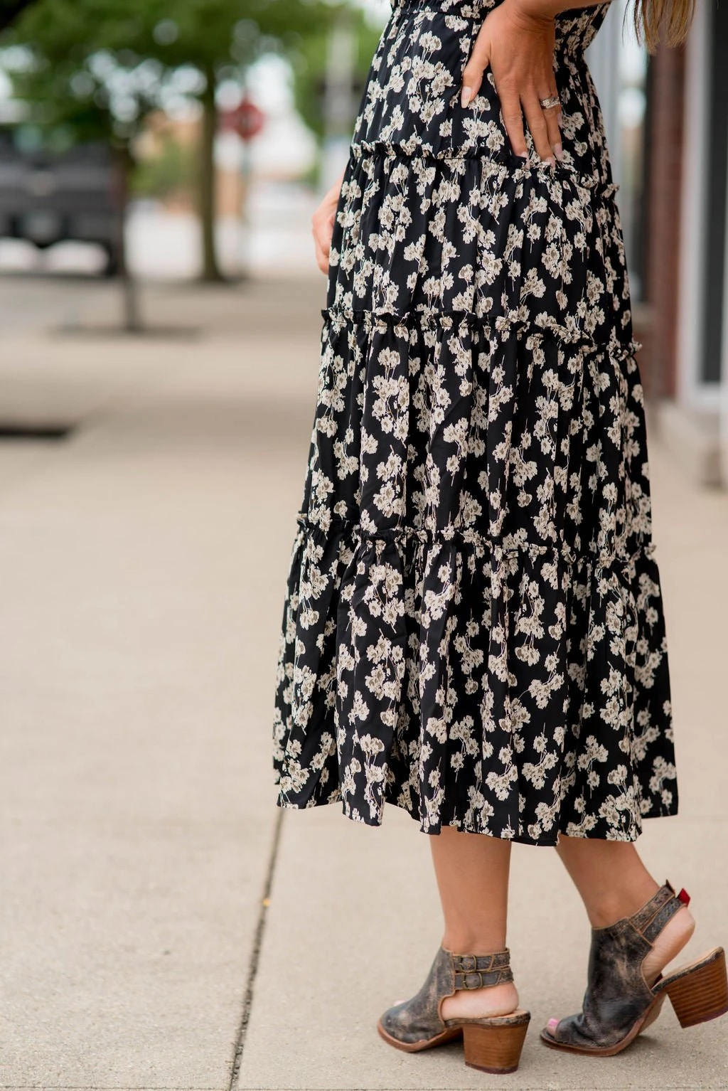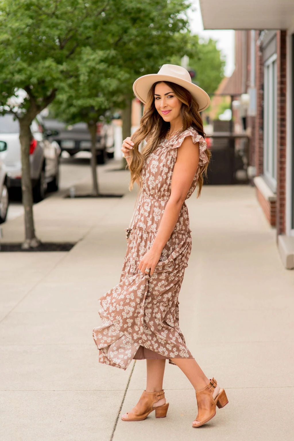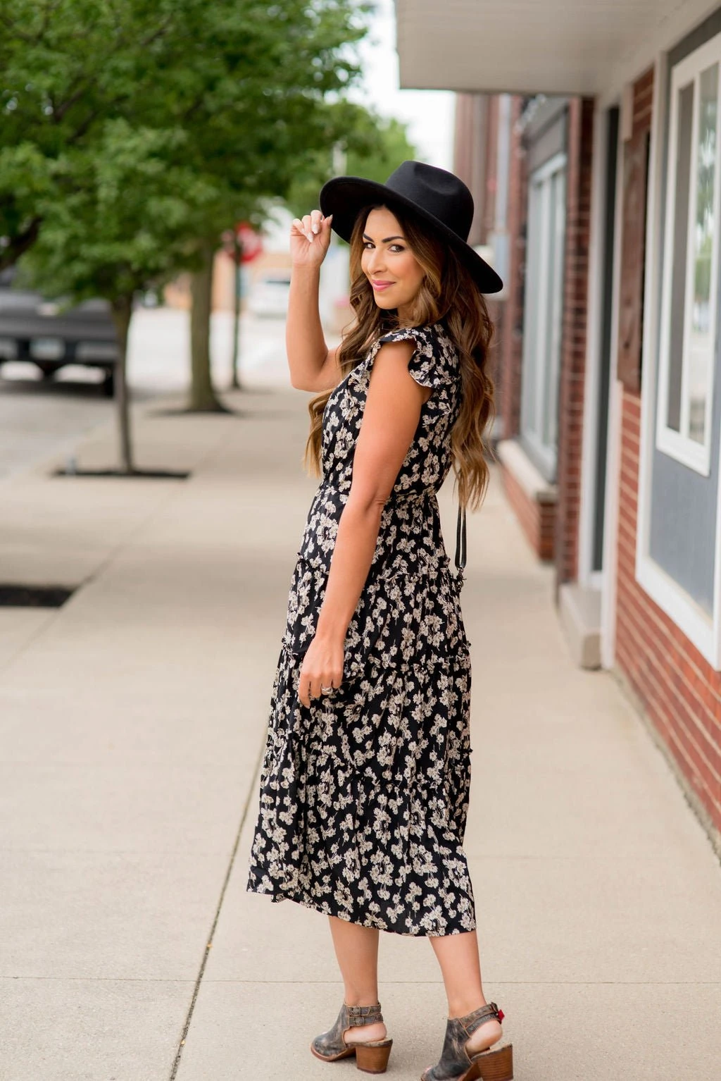 This midi dress is a must-have! From the neutral colored floral print, to the tiered style fit, and the ruffle trim accents, this dress is going to set you apart from the rest! Wear alone with your favorite sandals or wedges in the warmer months or pair with a denim jacket or cardigan and booties for the cooler ones!