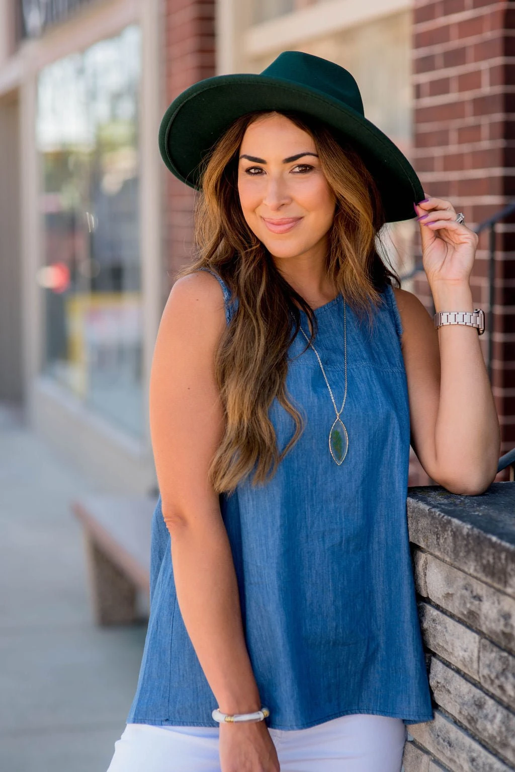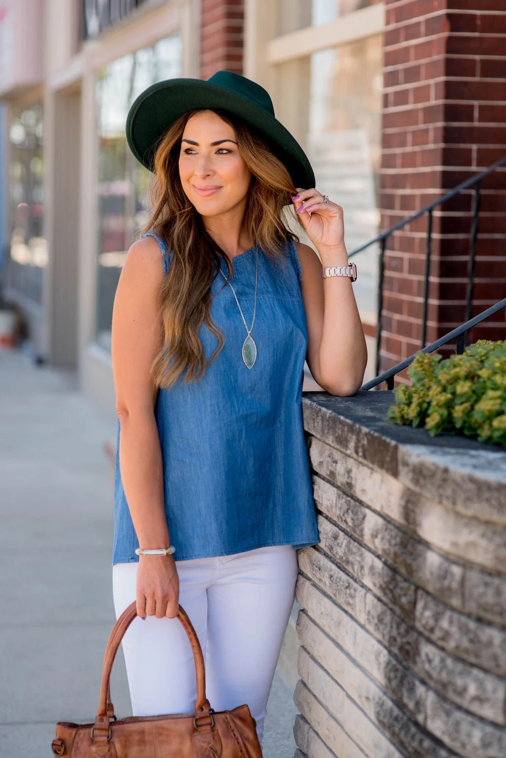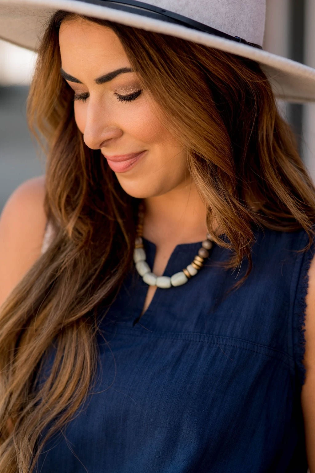 We’re loving this tank! From the frayed trim to the small slit, this can be worn by itself or used as a layering piece for a cardigan, jacket, or even a kimono!