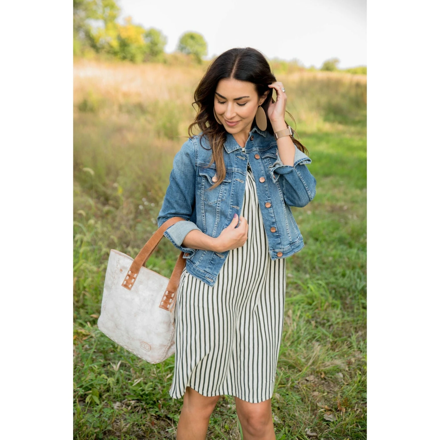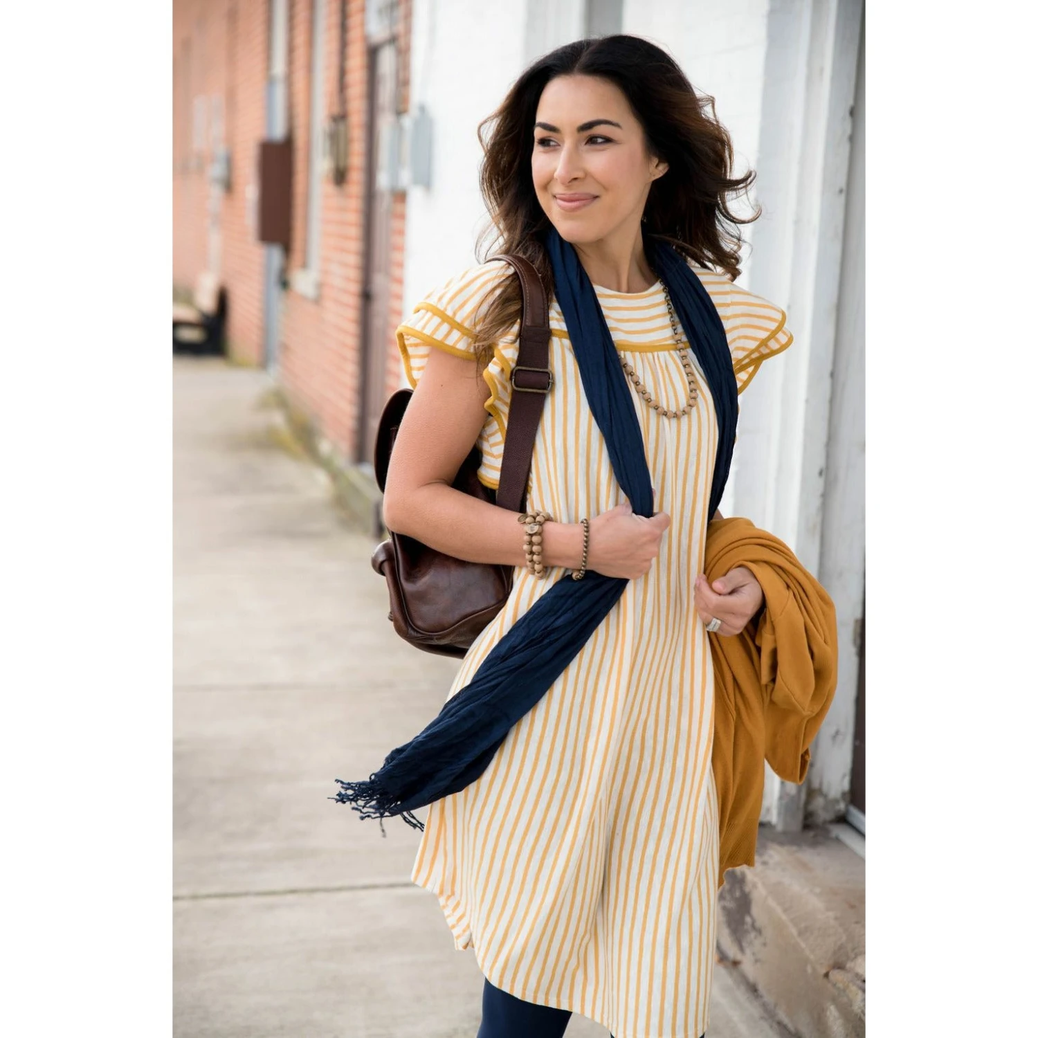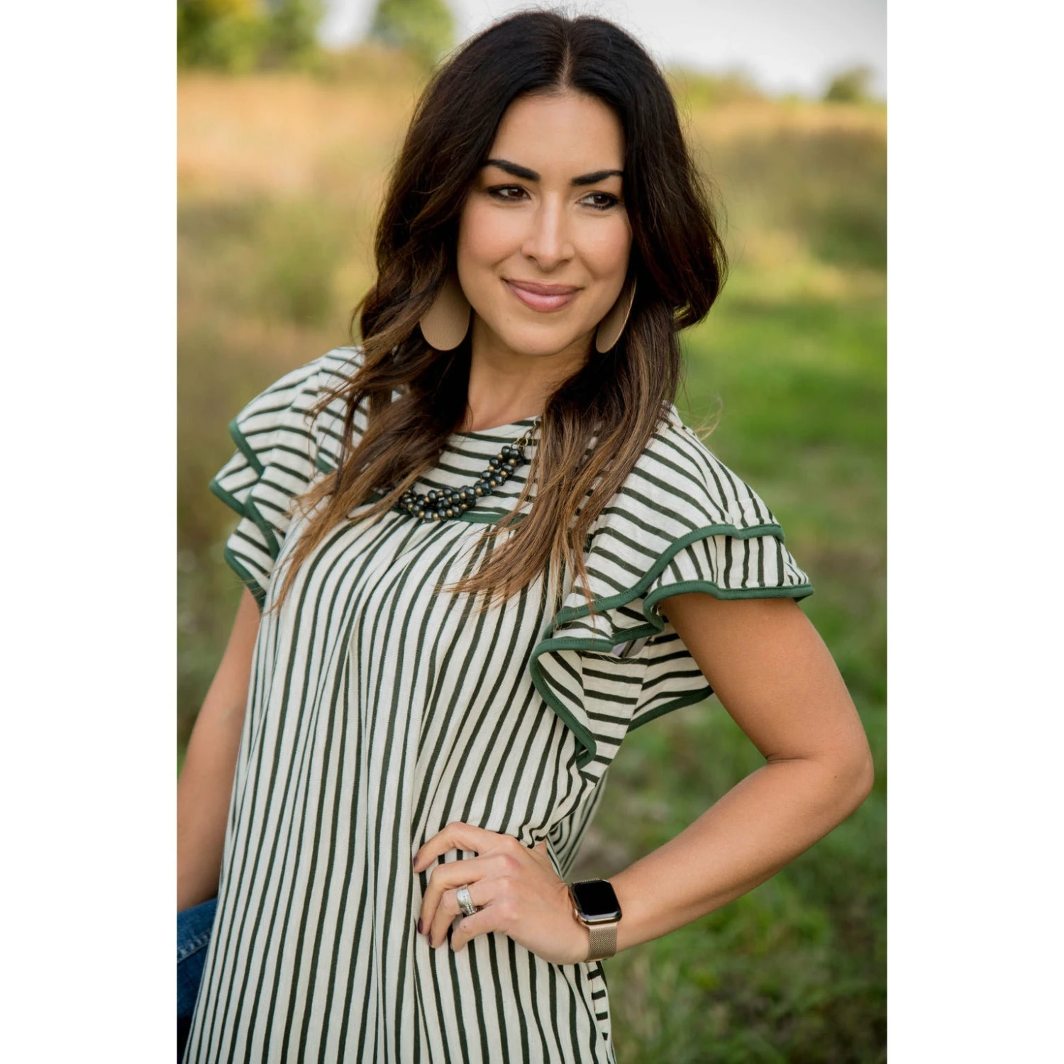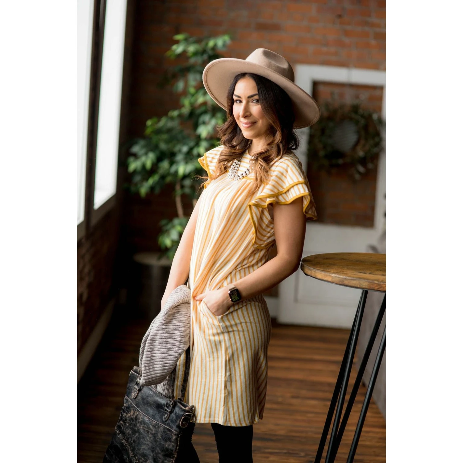The perfect ruffle dress with a fun stripe pattern!