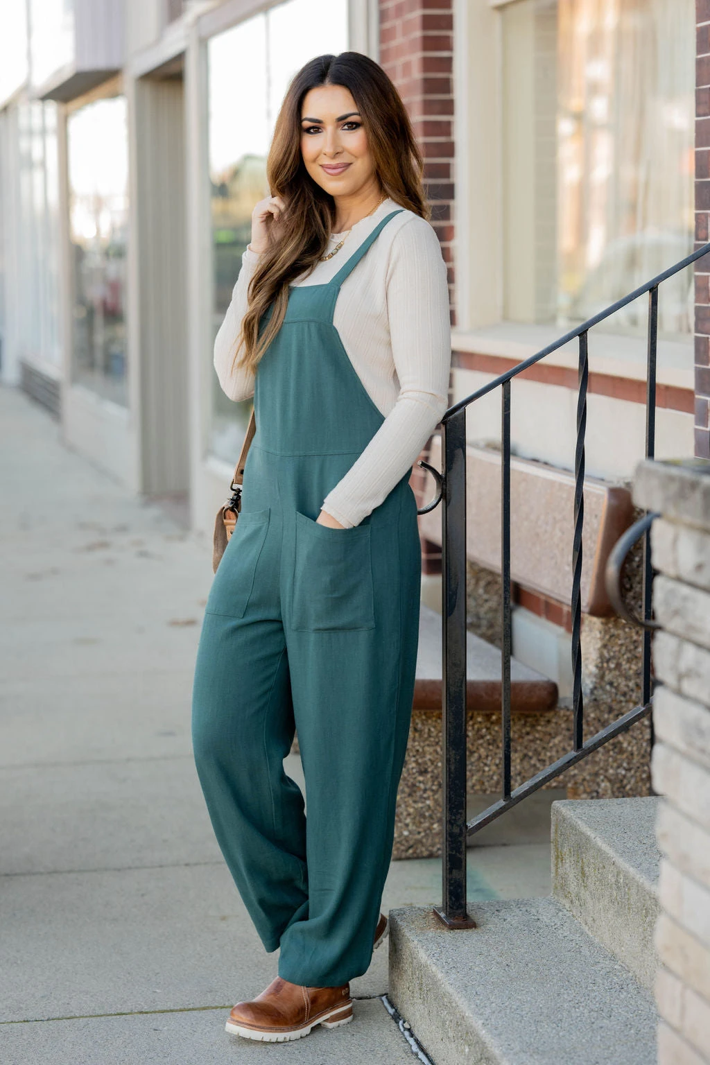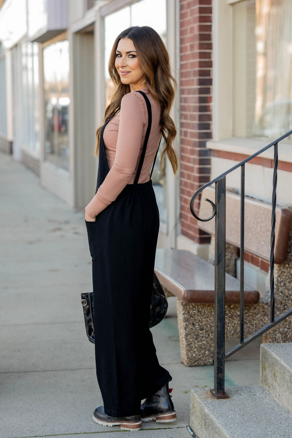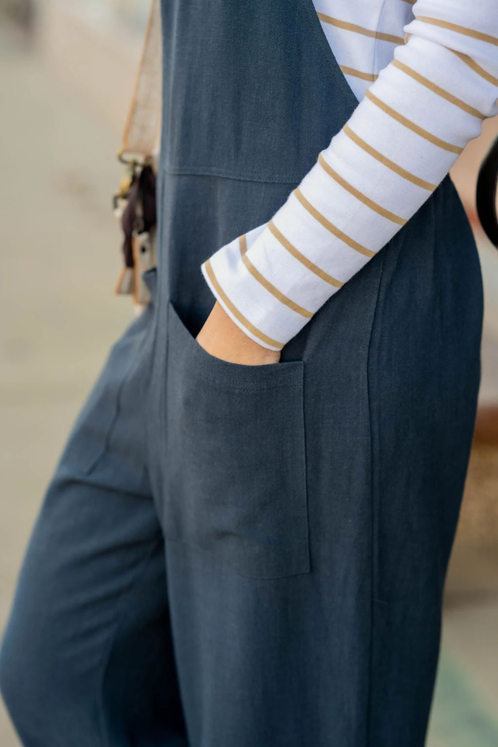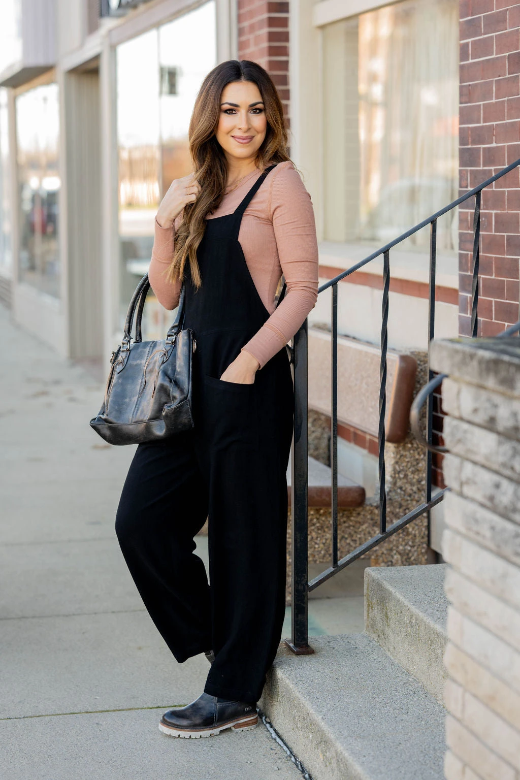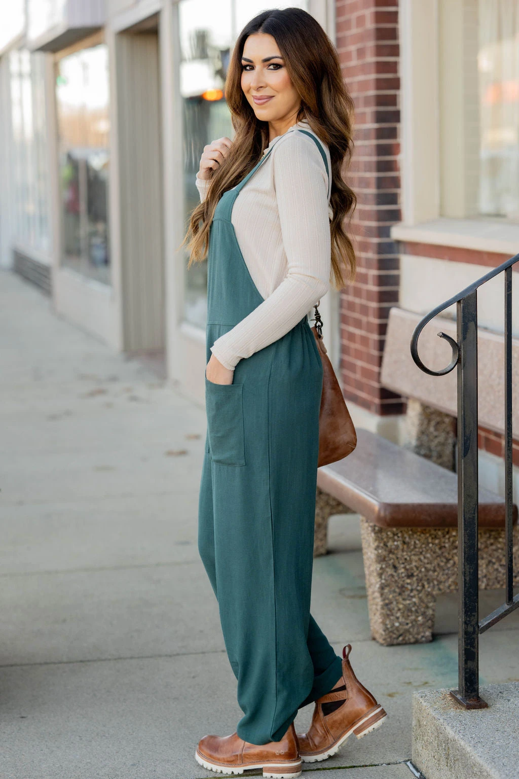 Comfy and oh so cute! This tank jumpsuit features two large front pockets and a flare-style bottom! Put this over a tank, graphic tee, long-sleeve tee, or even a sweater! This jumpsuit can be worn all year round and dressed up or down to match your style!