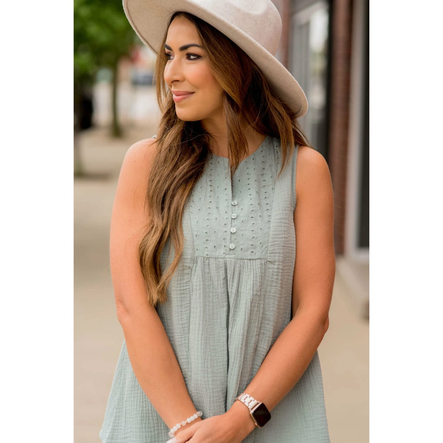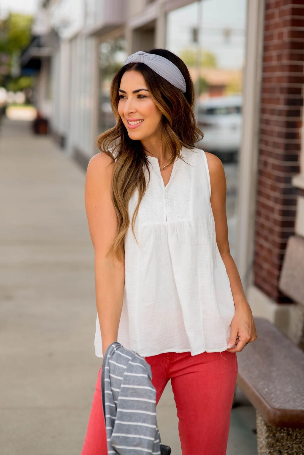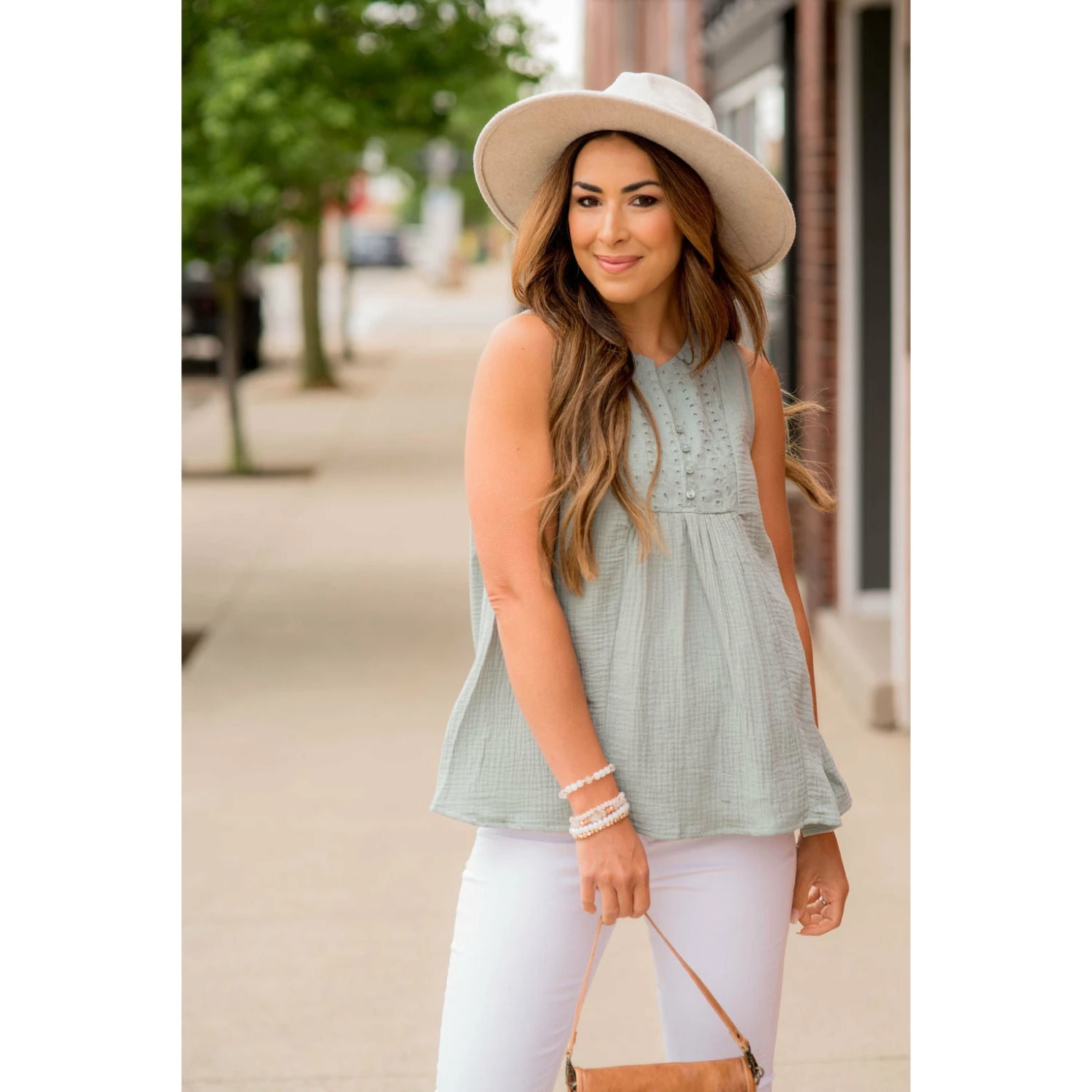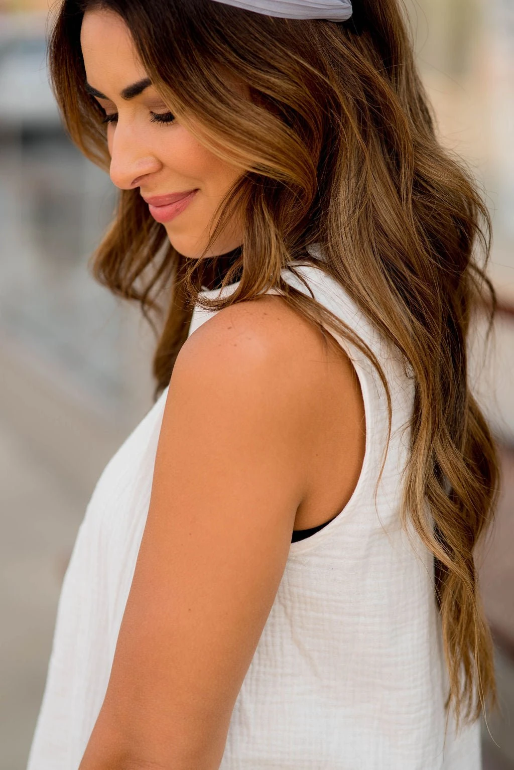 The gauze texture mixed with the hint of eyelet really sets this tank apart from the rest! We’re loving how easy this tank is to style and dress up or down for wherever the day takes you!