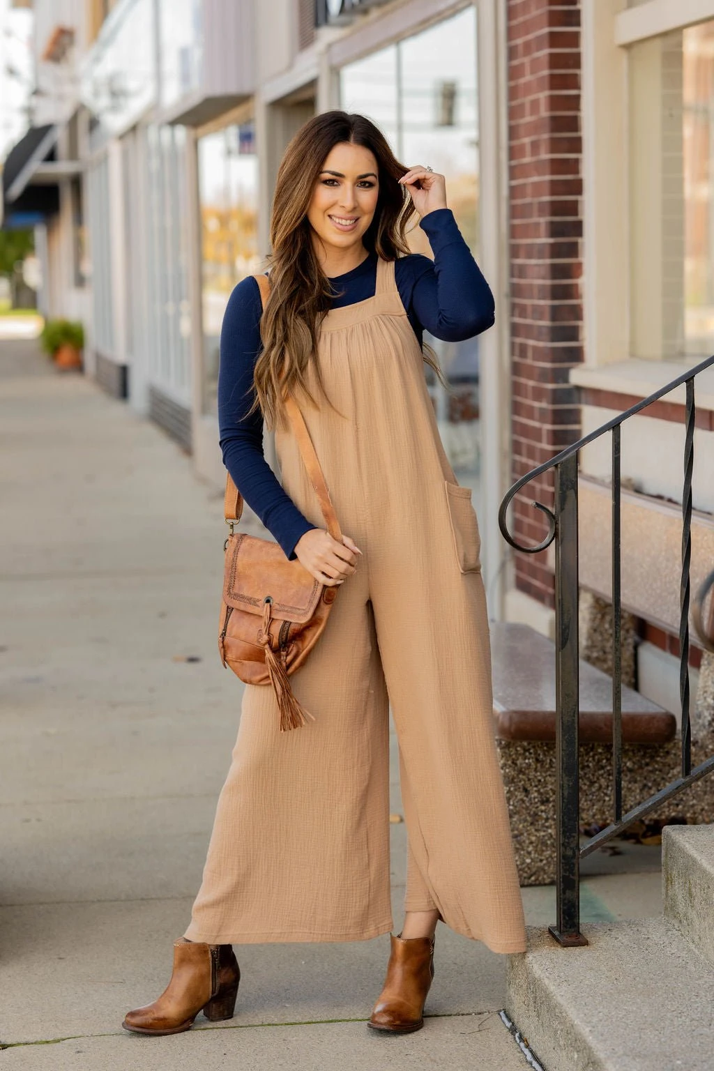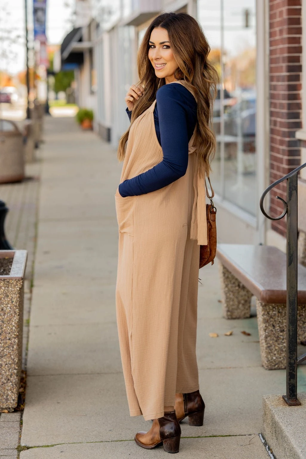 Comfy and oh so cute! This tank jumpsuit features a gauze material, two large front pockets, a fun tie back, and a relaxed style fit! Put this over a tank, graphic tee, long sleeve tee, or even a sweater! This jumpsuit can be worn all year round and dressed up or down to match your style!
