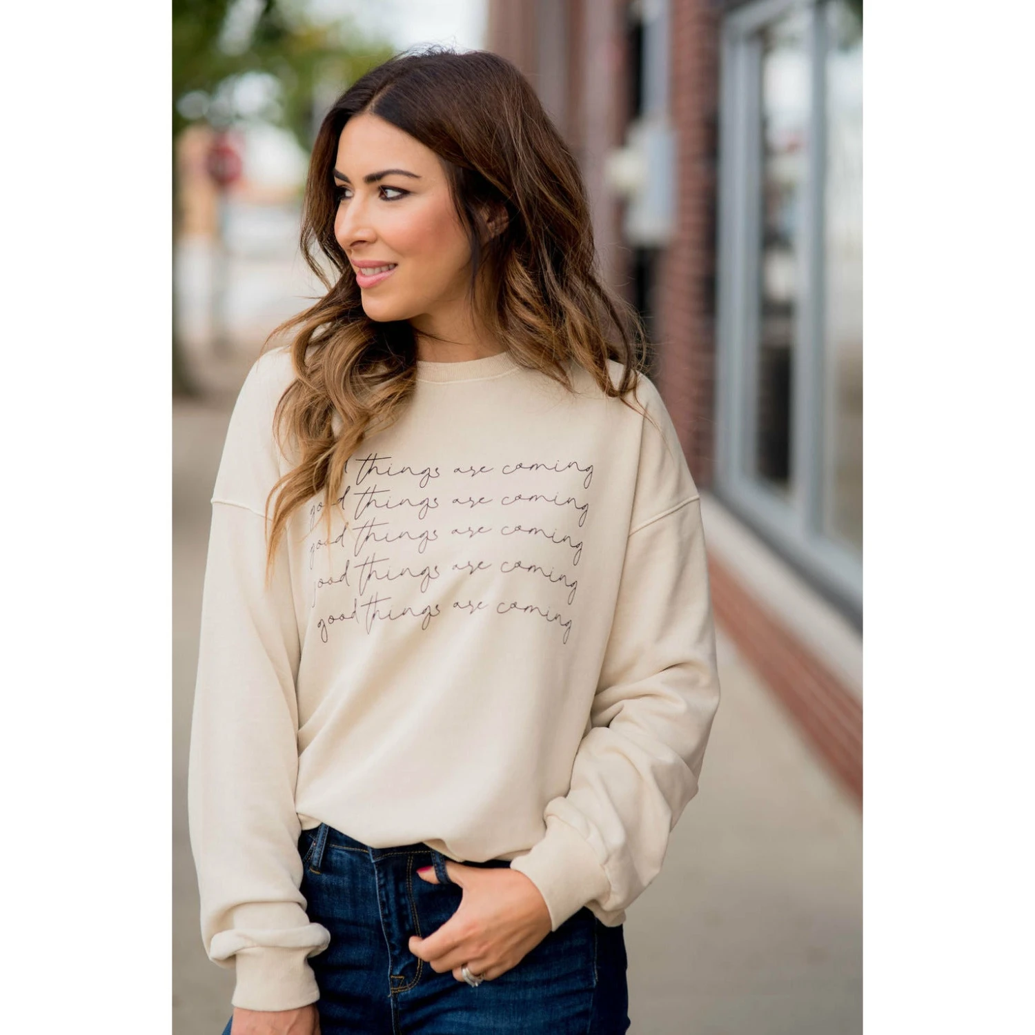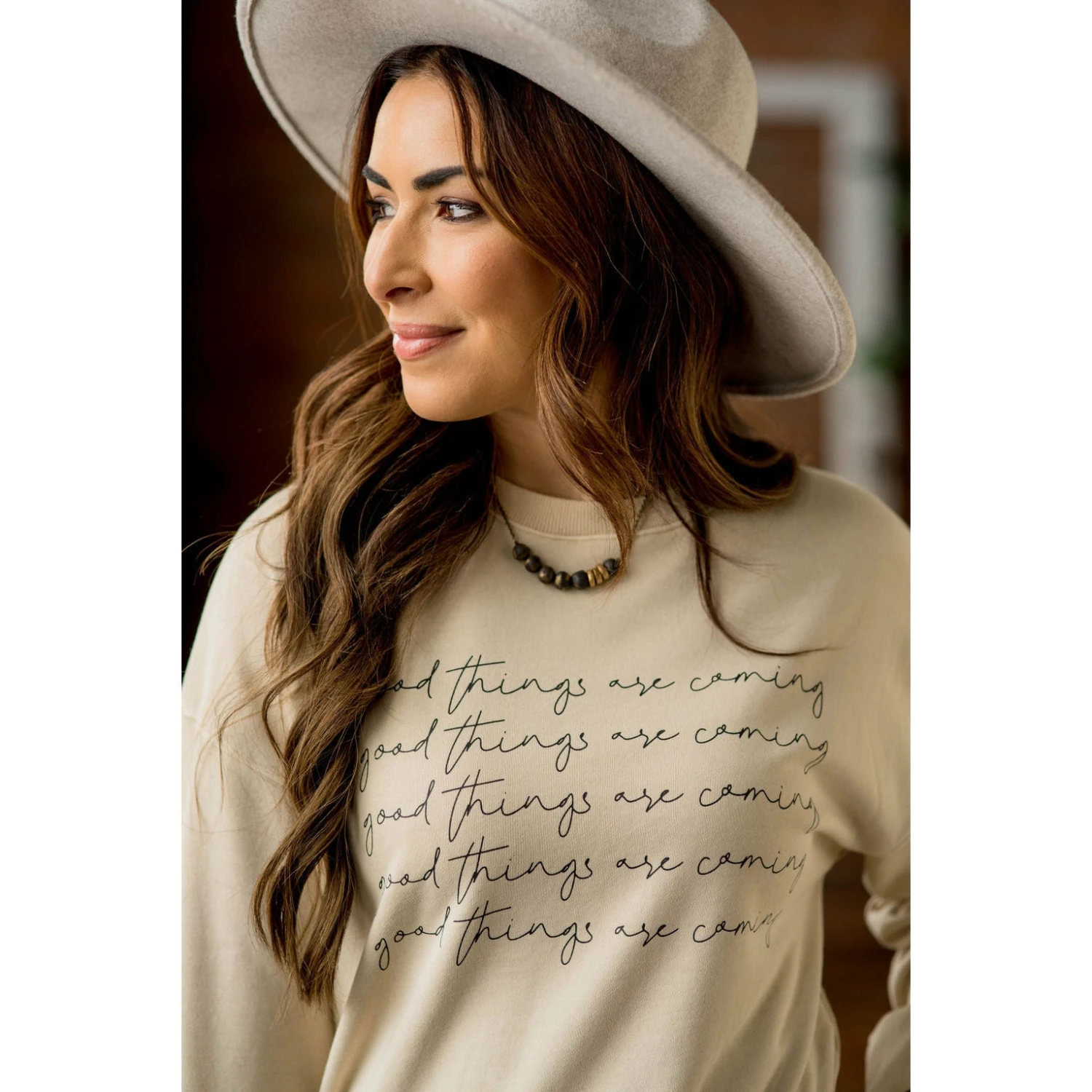 Be the first to review “Good Things Are Coming Cursive Graphic Crewneck” Cancel reply