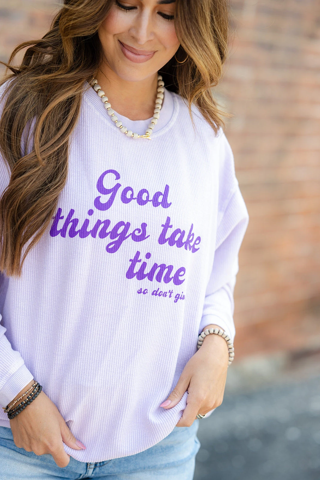 Crewnecks are a staple for every girls wardrobe, so stock up while you can! Cute and comfortable, these graphic crewnecks look great with shorts and flipflops or jeans and boots! This crewneck is elevated with a ribbed texture to really set it apart from the rest!