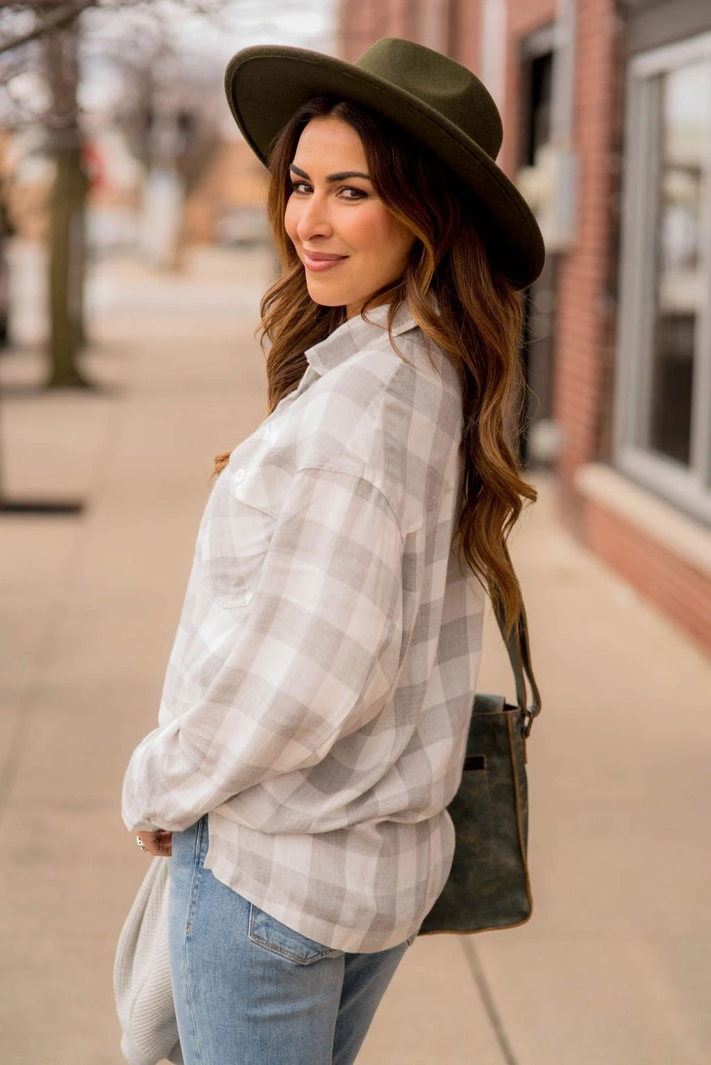 Plaid is always trending and this flannel is one of our favorites! We can’t get over the neutral color making this flannel so easy to be paired with any color! Wear with leggings for a casual look or jeans for a styled look!
