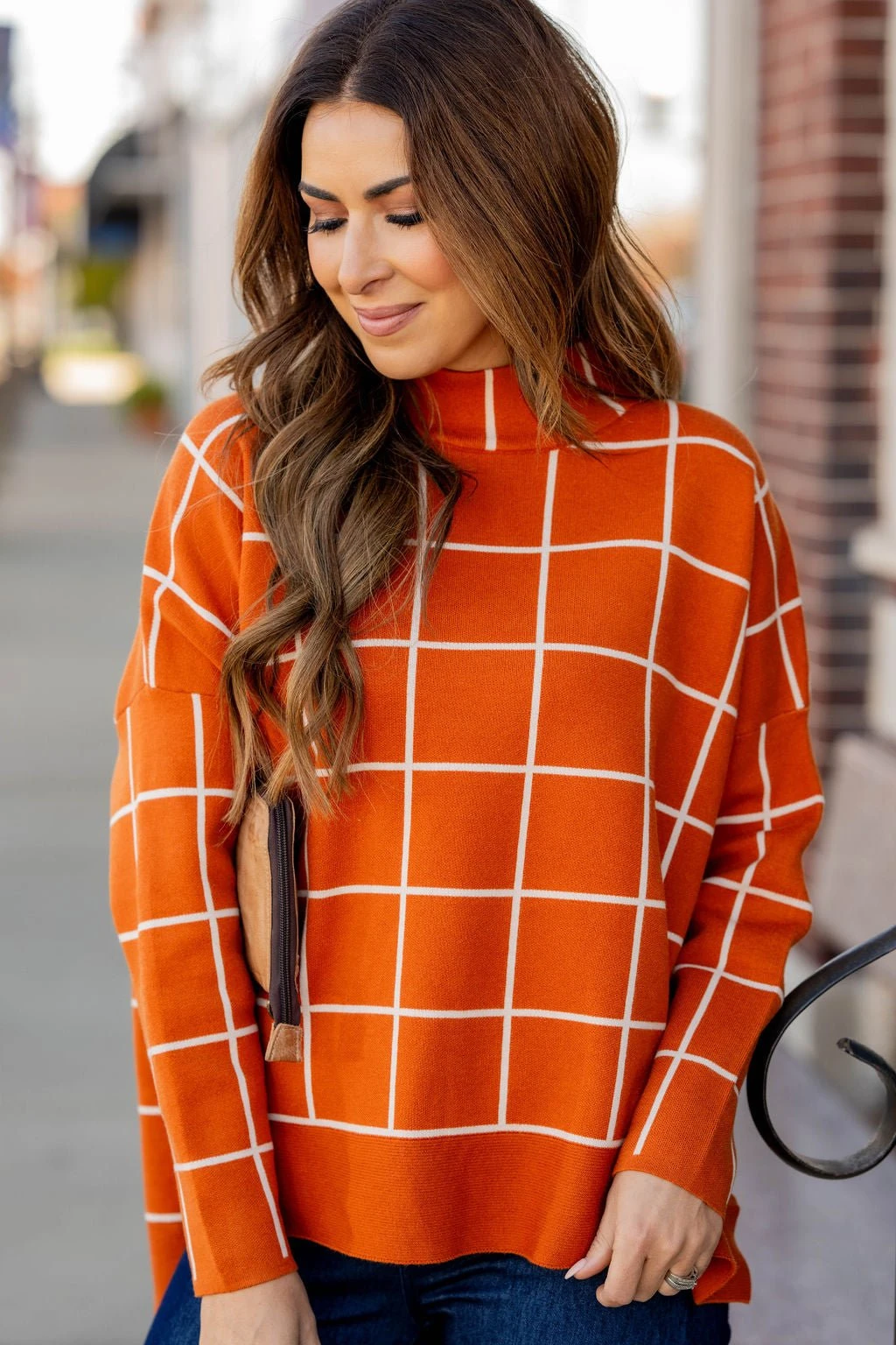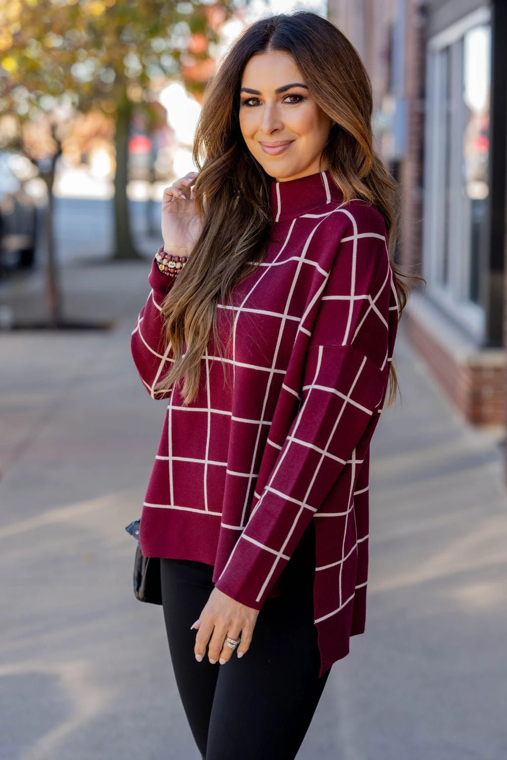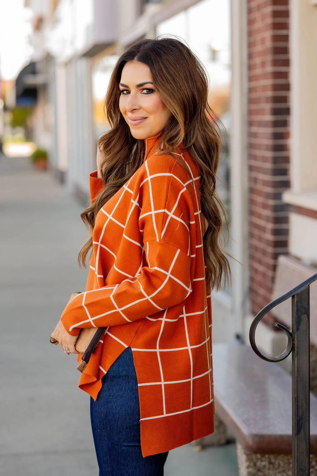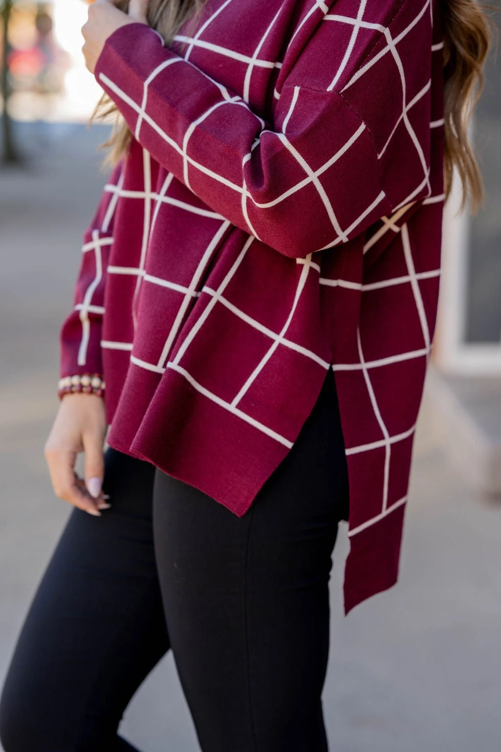 Check out this stylish sweater tee! It is super cute with a wider grid pattern that just pops when you wear it and a mock neck detailing! It is also sure to keep you warm! Not sure what to pair it with? This is one of those versatile tops that can match up with anything from jeans and leggings to skirts it’s shorter front and longer back!