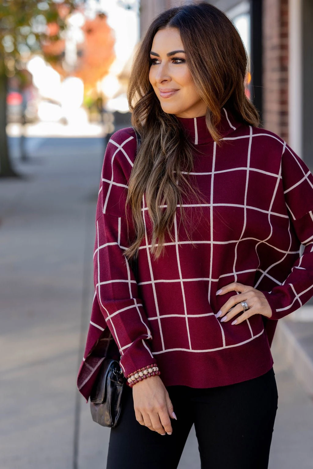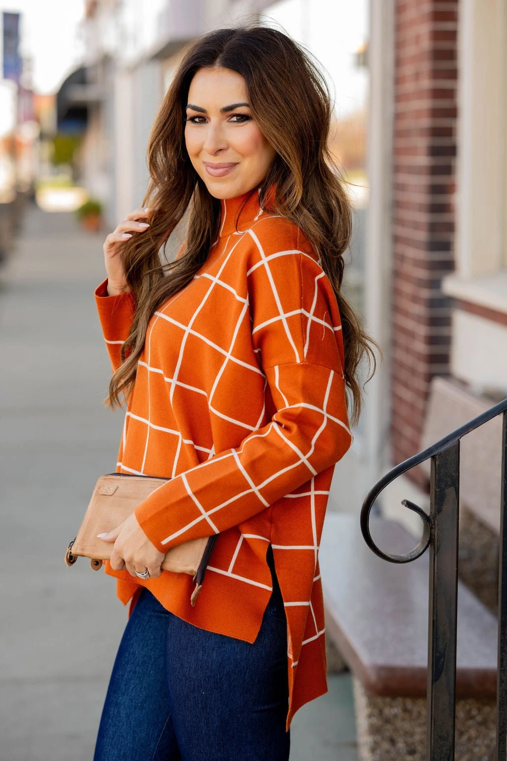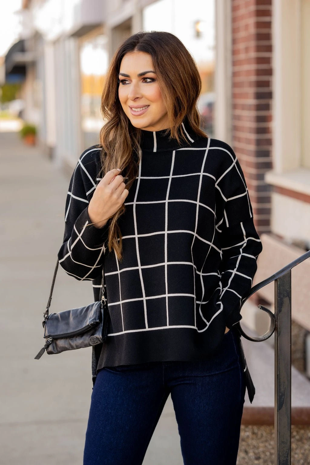 Check out this stylish sweater tee! It is super cute with a wider grid pattern that just pops when you wear it and a mock neck detailing! It is also sure to keep you warm! Not sure what to pair it with? This is one of those versatile tops that can match up with anything from jeans and leggings to skirts it’s shorter front and longer back!