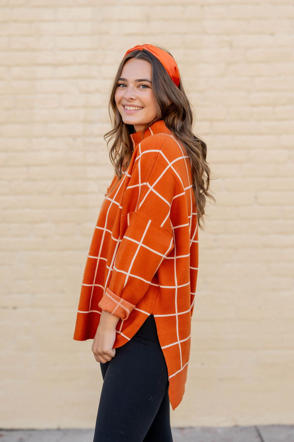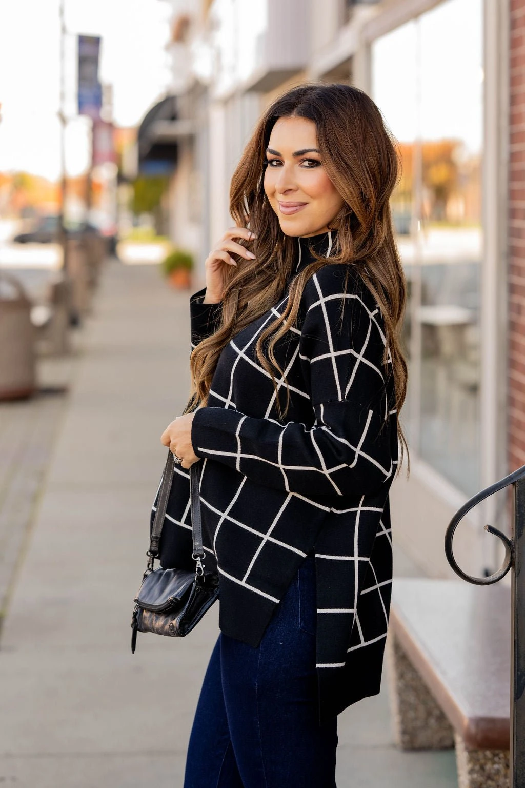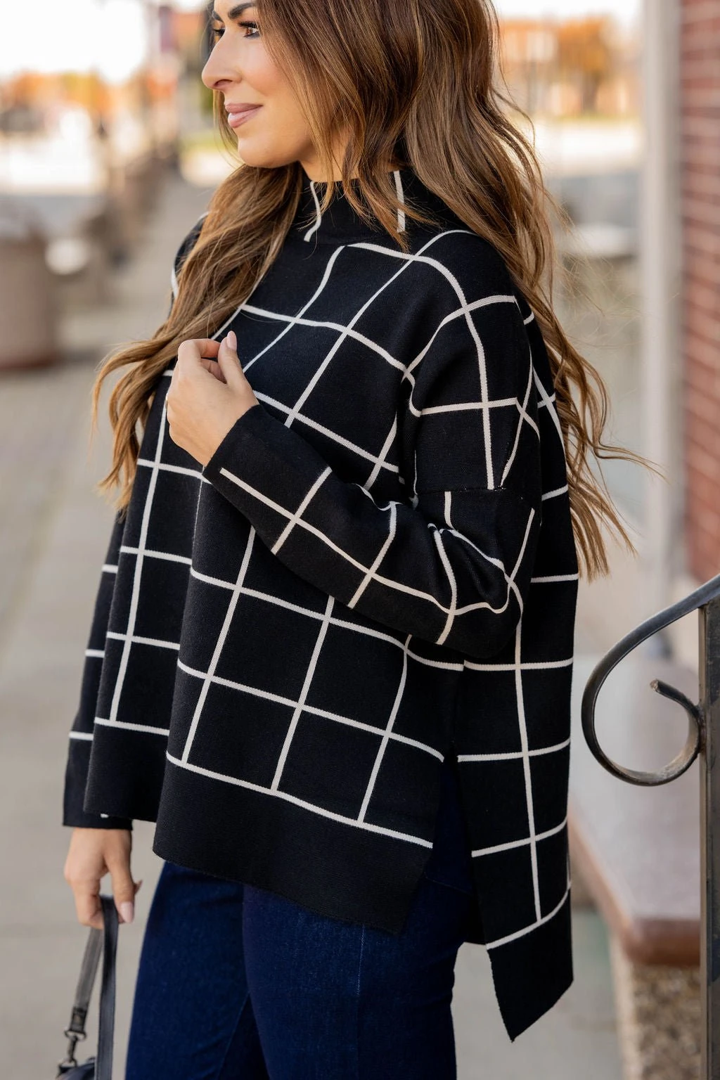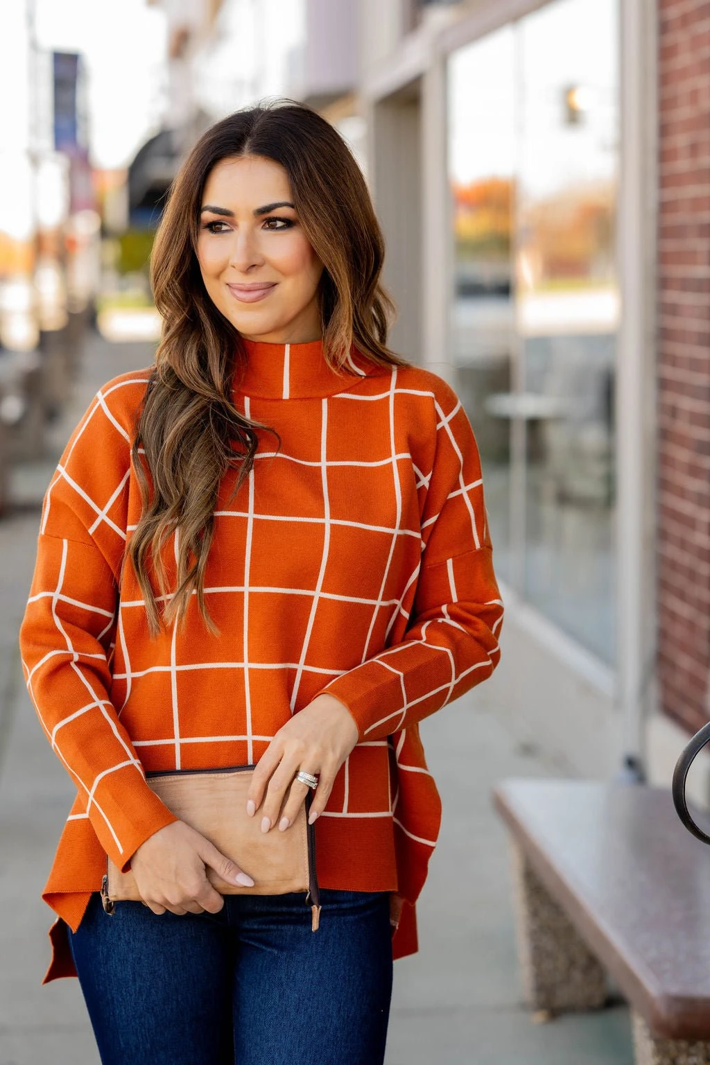 Check out this stylish sweater tee! It is super cute with a wider grid pattern that just pops when you wear it and a mock neck detailing! It is also sure to keep you warm! Not sure what to pair it with? This is one of those versatile tops that can match up with anything from jeans and leggings to skirts it’s shorter front and longer back!