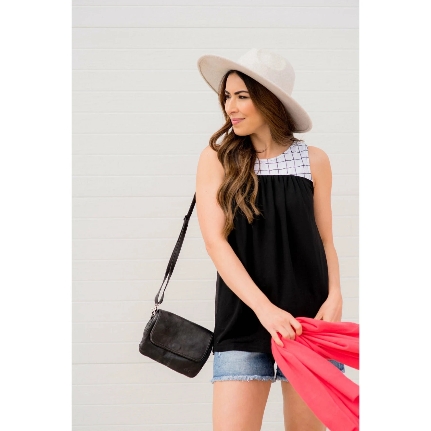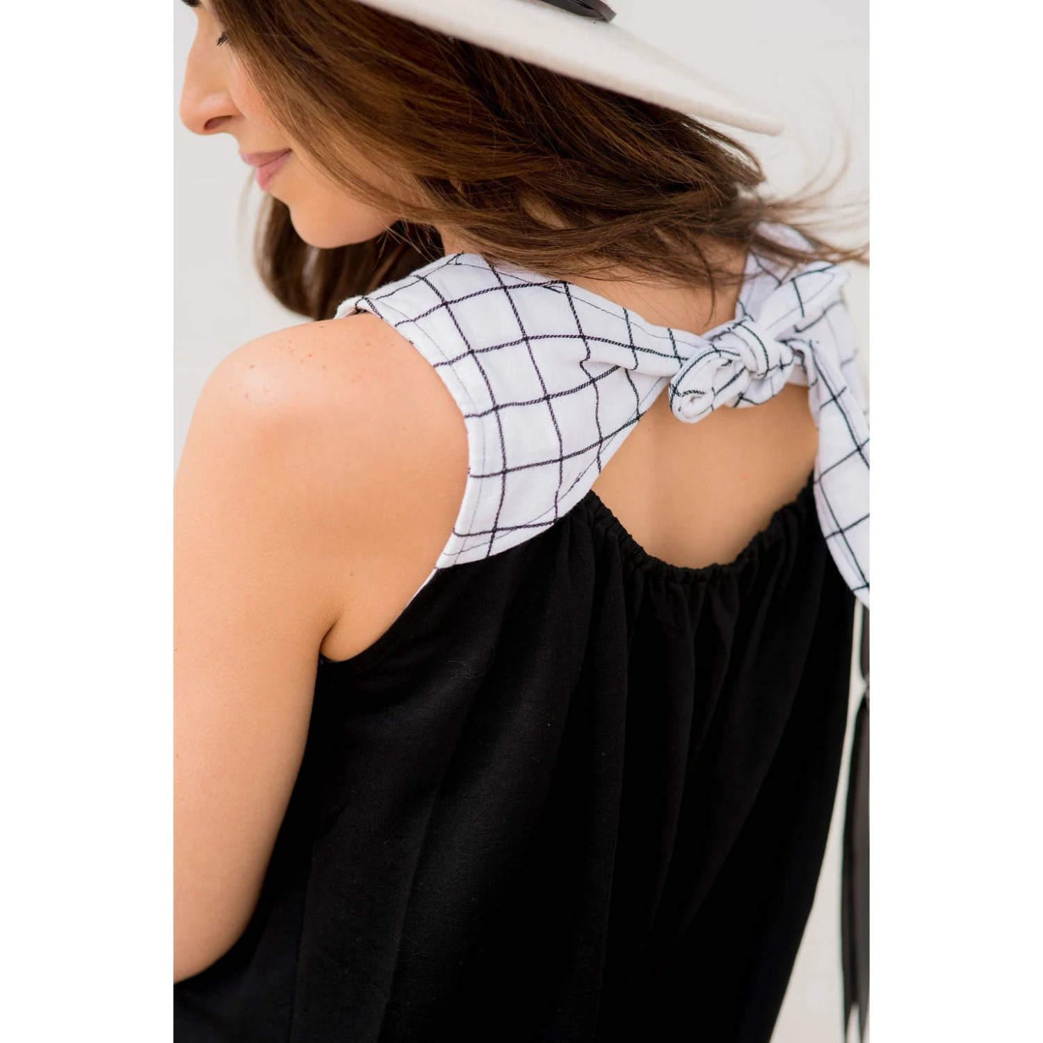 It’s all in the details of this tank! From the flowy and lightweight material to the hint of grid pattern at the top, and the bow on the back, we think this will quickly become one of your go to pieces!
