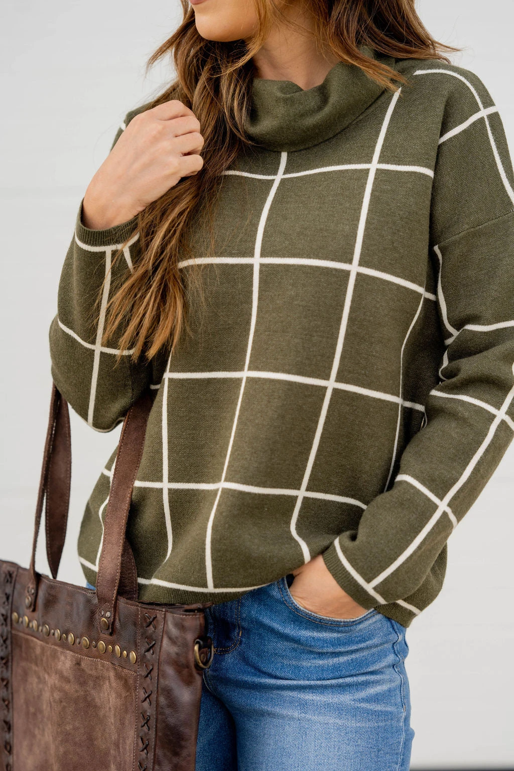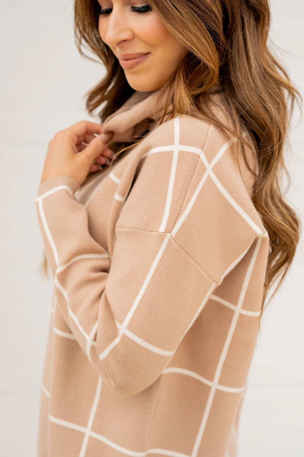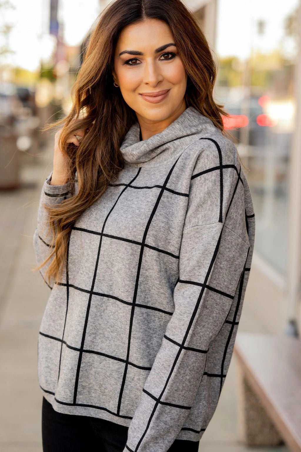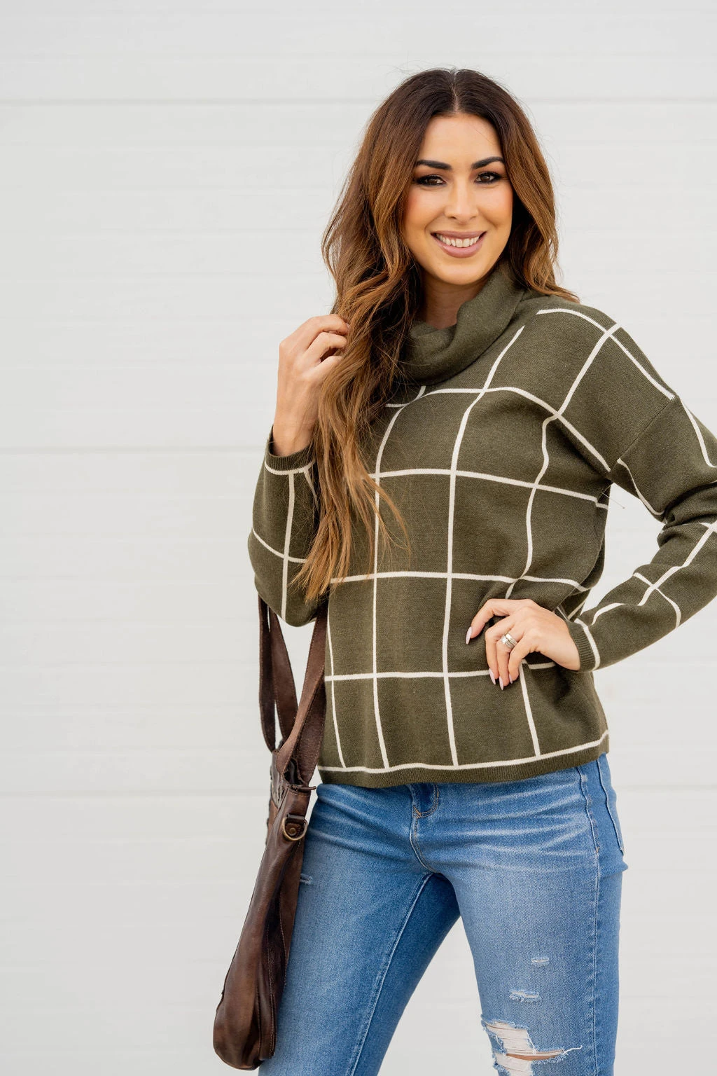 Check out this stylish sweater! It is super cute with a wider grid pattern that just pops when you wear it and a turtleneck detailing! It is also sure to keep you warm! Not sure what to pair it with? This is one of those versatile tops that can match up with anything from jeans and leggings to skirts!