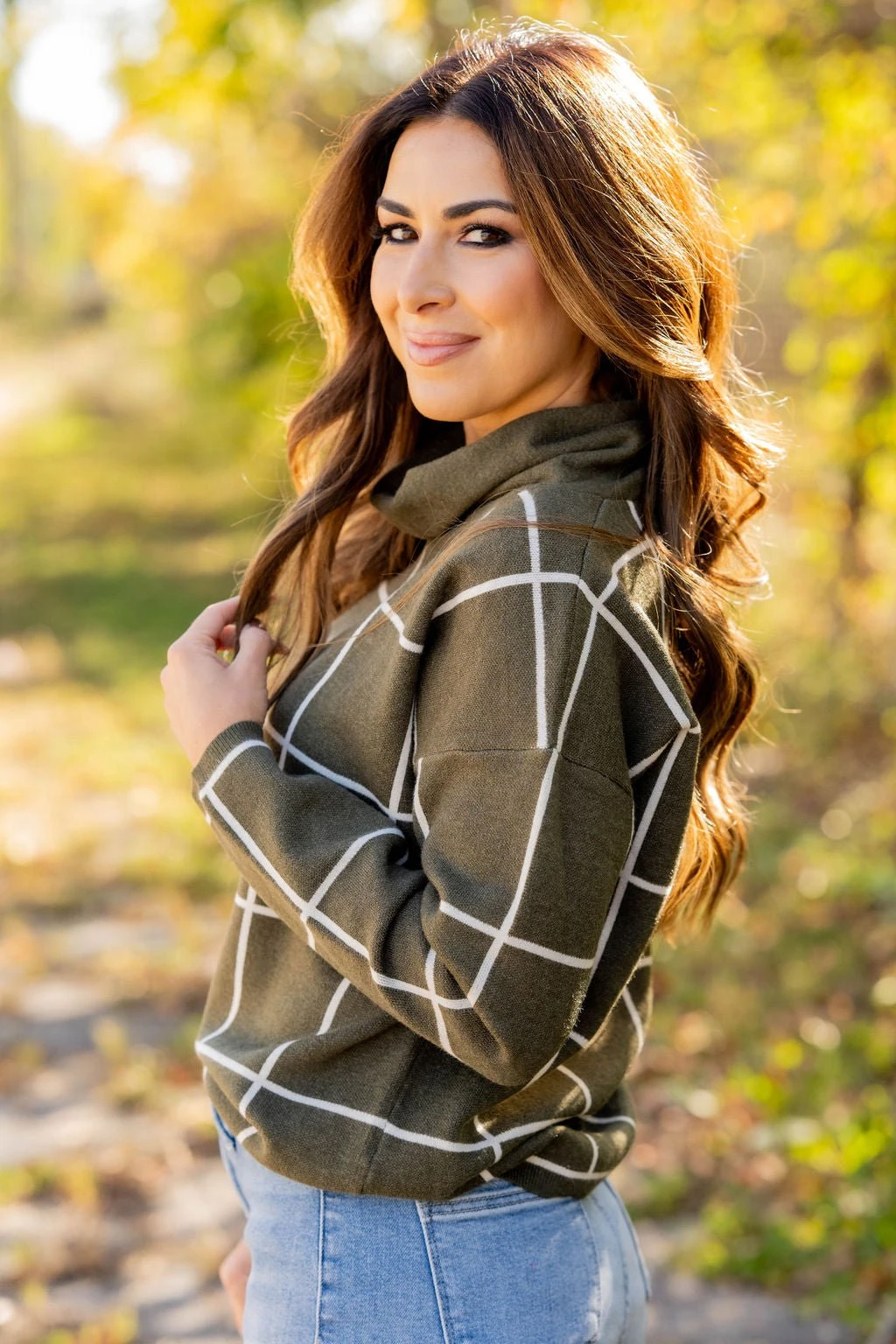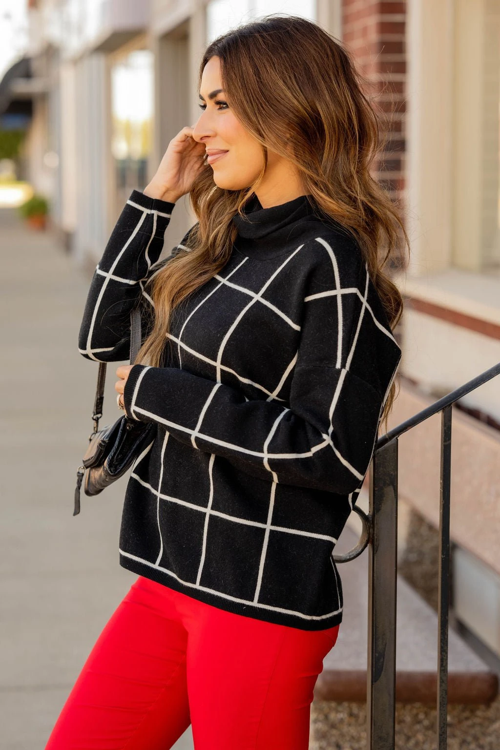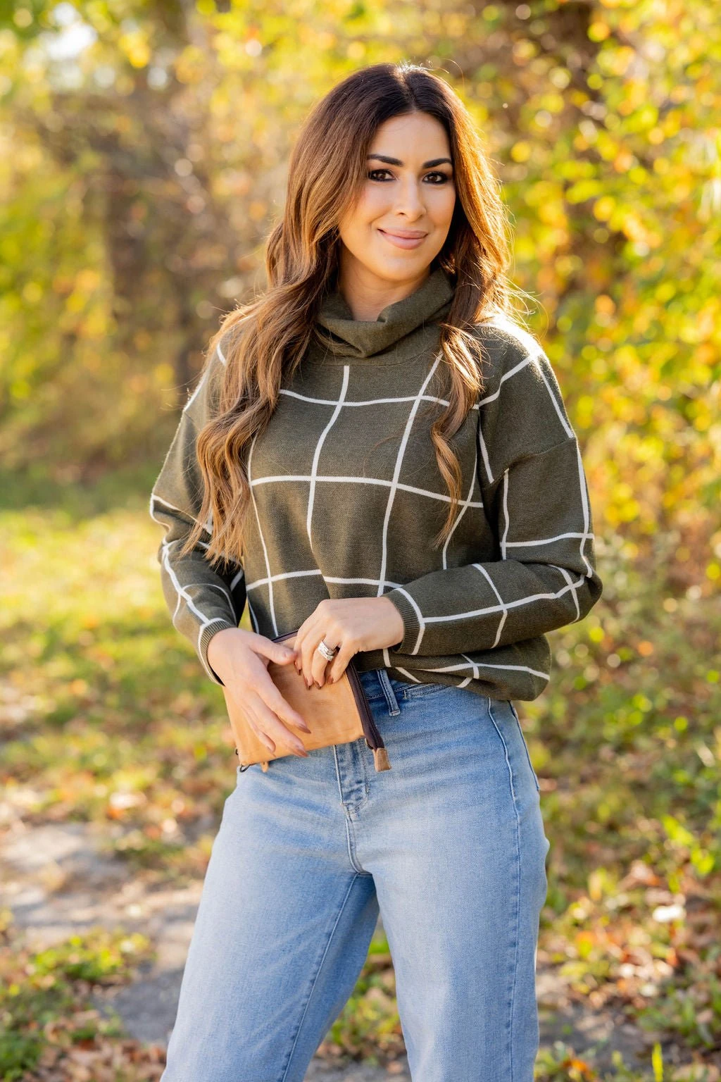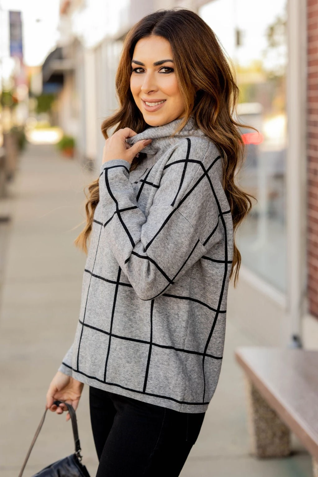 Check out this stylish sweater! It is super cute with a wider grid pattern that just pops when you wear it and a turtleneck detailing! It is also sure to keep you warm! Not sure what to pair it with? This is one of those versatile tops that can match up with anything from jeans and leggings to skirts!