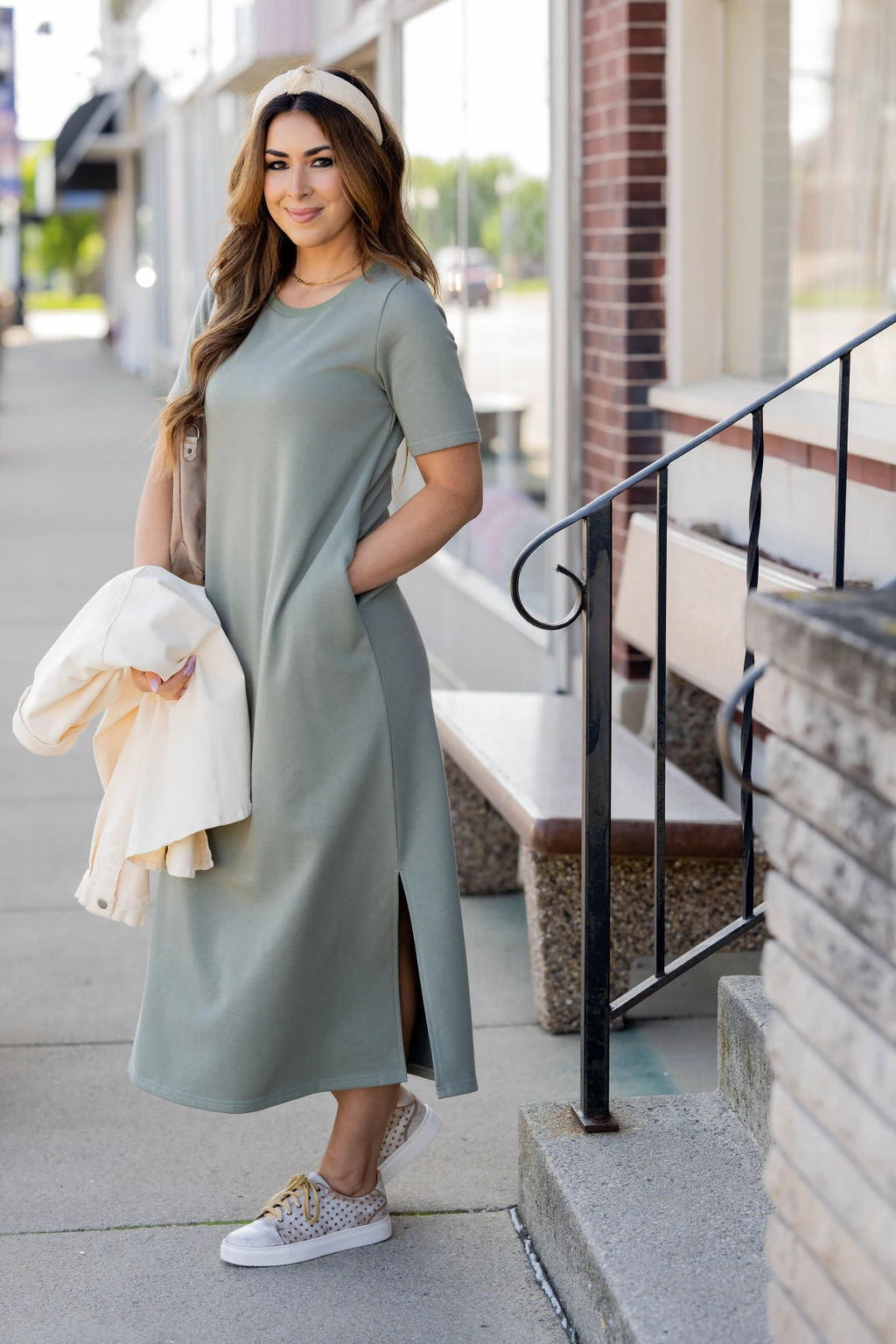 Basic enough to dress up or down to fit your style, but bold enough to stand out on its own! This dress features a midi length, making it appropriate for the office, the classroom, or Sunday service but also features a side slit that gives a fun and flirty vibe! This dress can be worn alone for the warmer months but can easily be paired with a denim jacket or cardigan for the cooler ones! With so many ways to style, we just know this dress will surely become a staple piece in your closet!