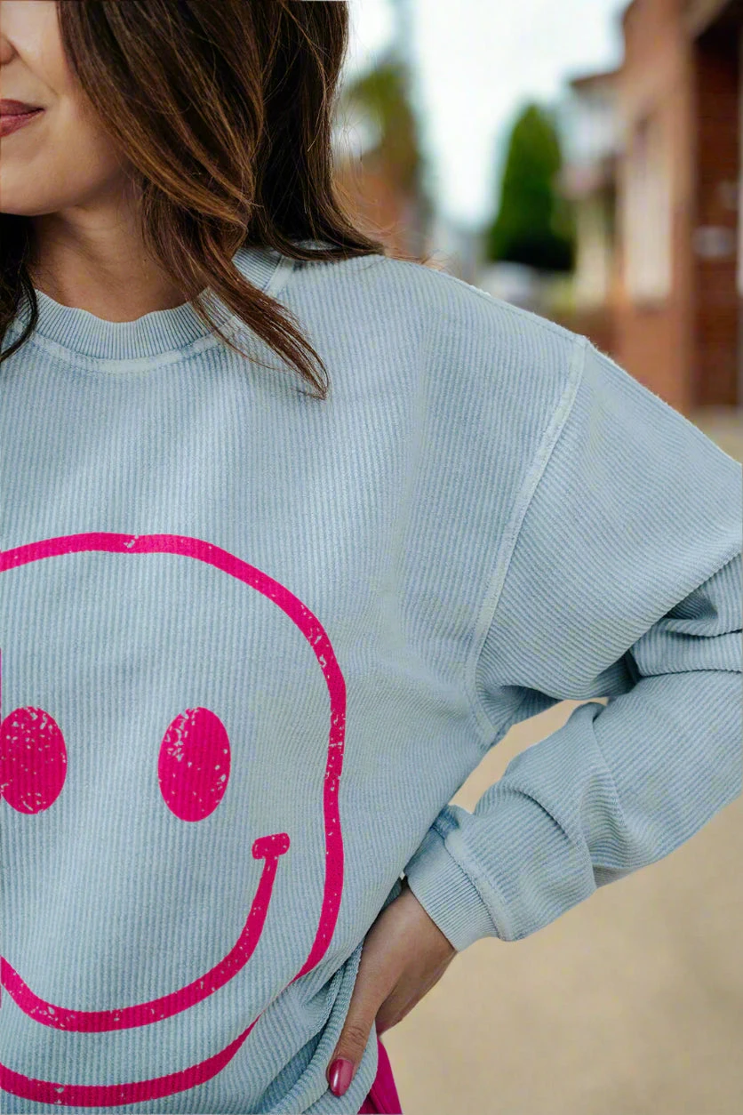 Crewnecks are a staple for every girls wardrobe, so stock up while you can! Cute and comfortable, these graphic crewnecks look great with shorts and flipflops or jeans and boots! This crewneck is elevated with a ribbed texture to really set it apart from the rest!