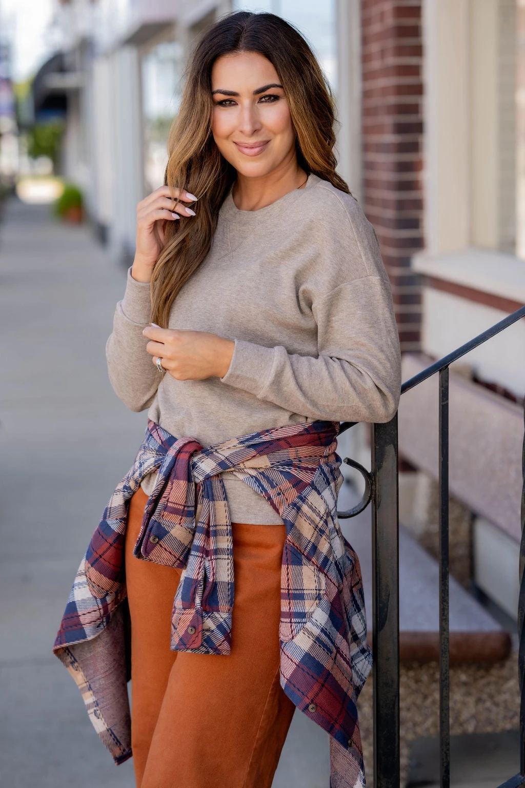 Basic long sleeve tees are a must have, though this one has a little pop with heathered look! Wear with shorts or a skirt in the warmer months or use as a base for all of your layering pieces in the cooler ones! We love that this can be dressed up or down for everyday wear.Â