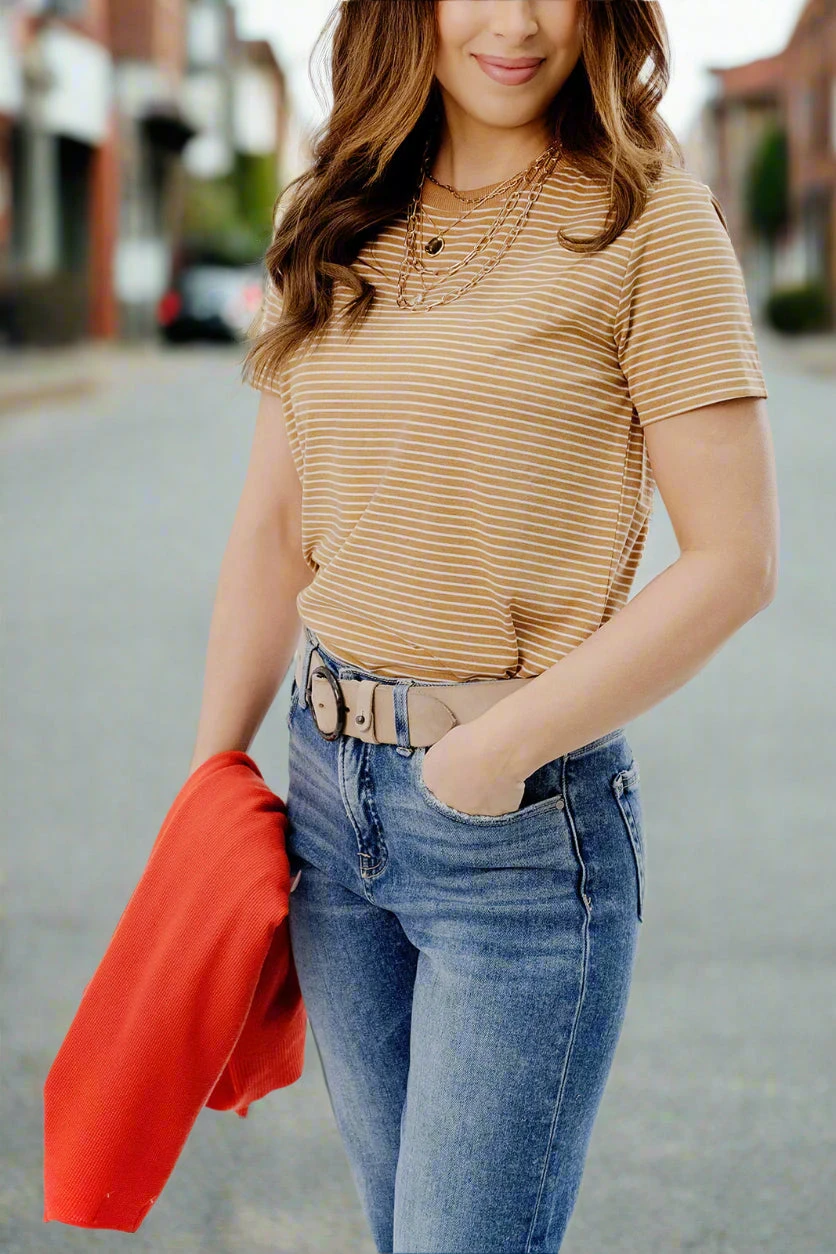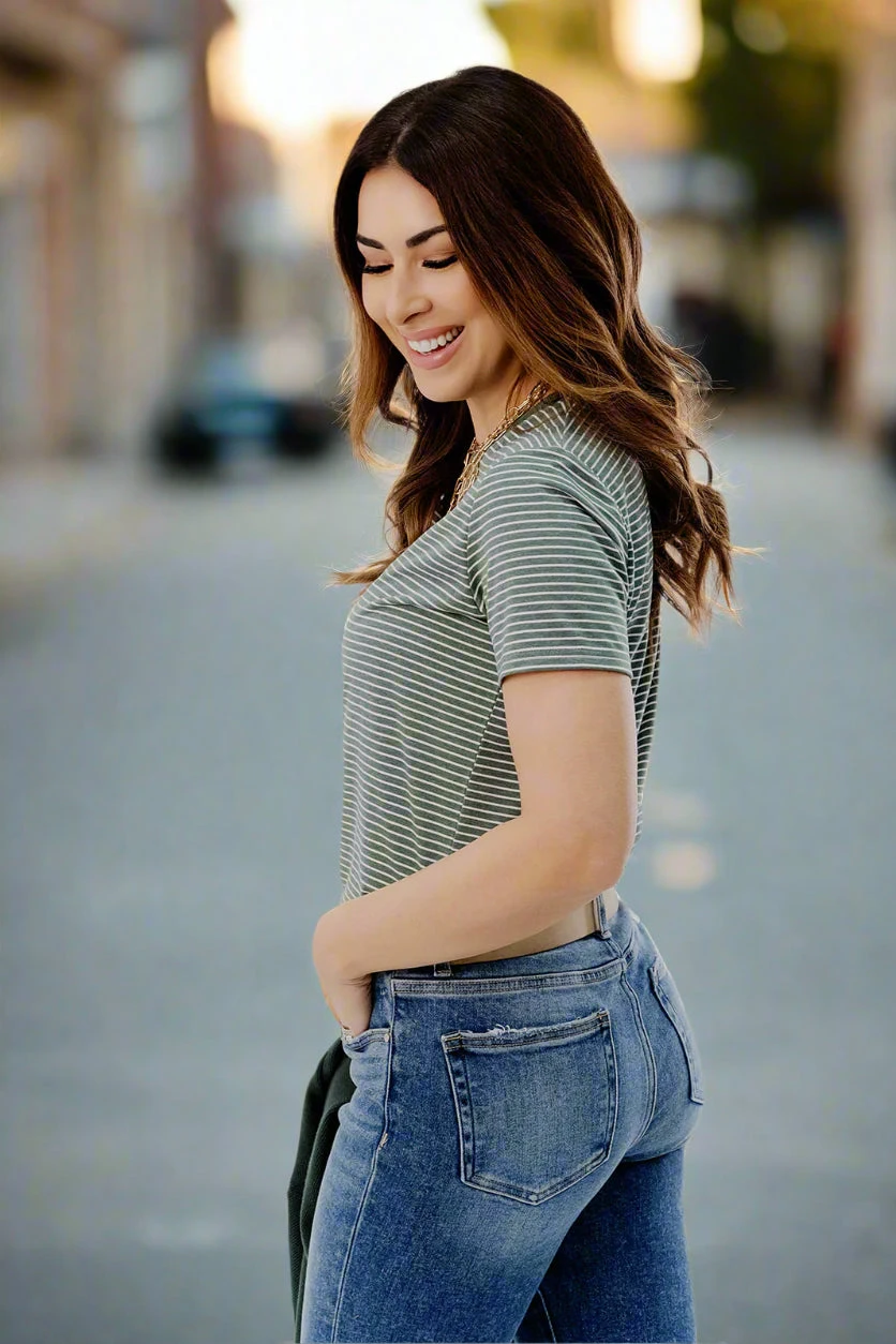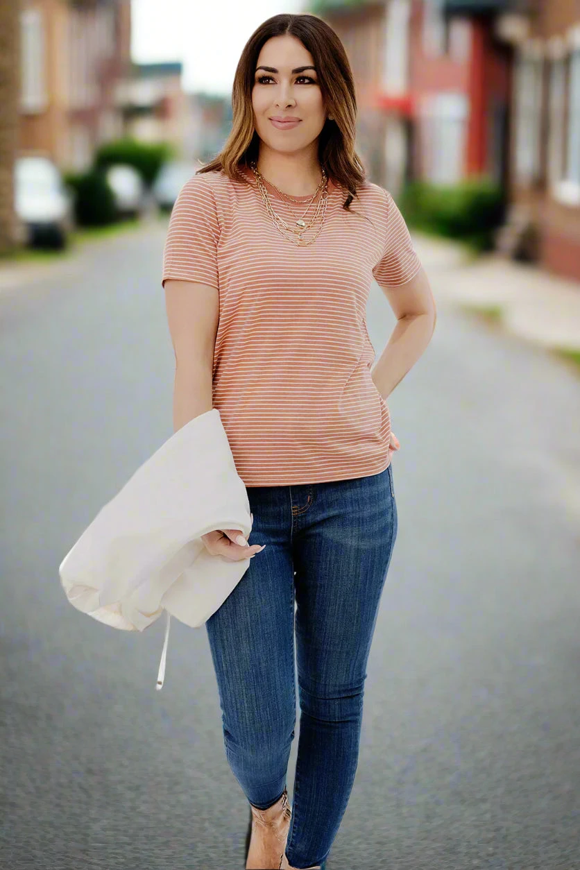 This top is so fun! You can wear this tee no matter where you’re going, from the office, night out, or a cookout with friends and family. Pair it with denim shorts or jeans and accessorize with your favorite jewelry. You can easily pair it with any cardigan for cooler days making this tee the perfect transition piece!