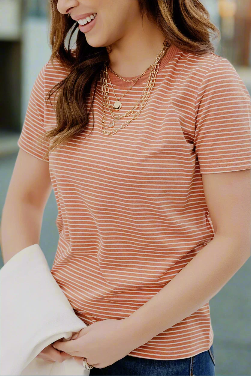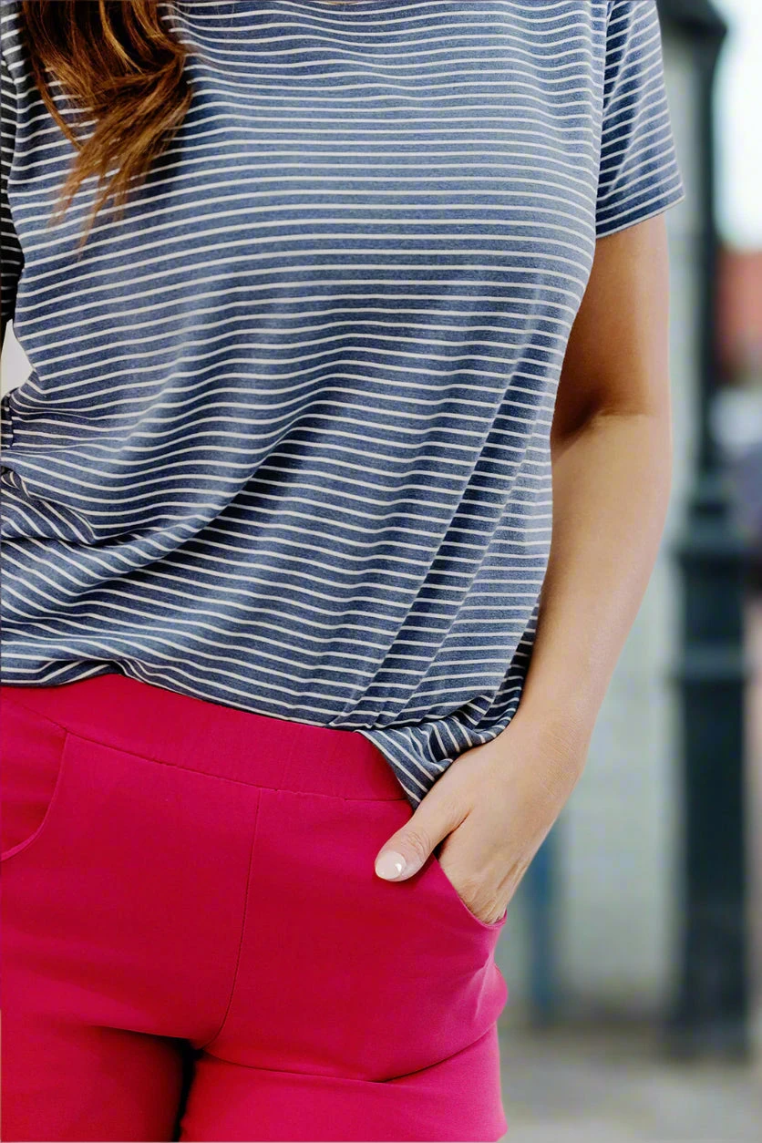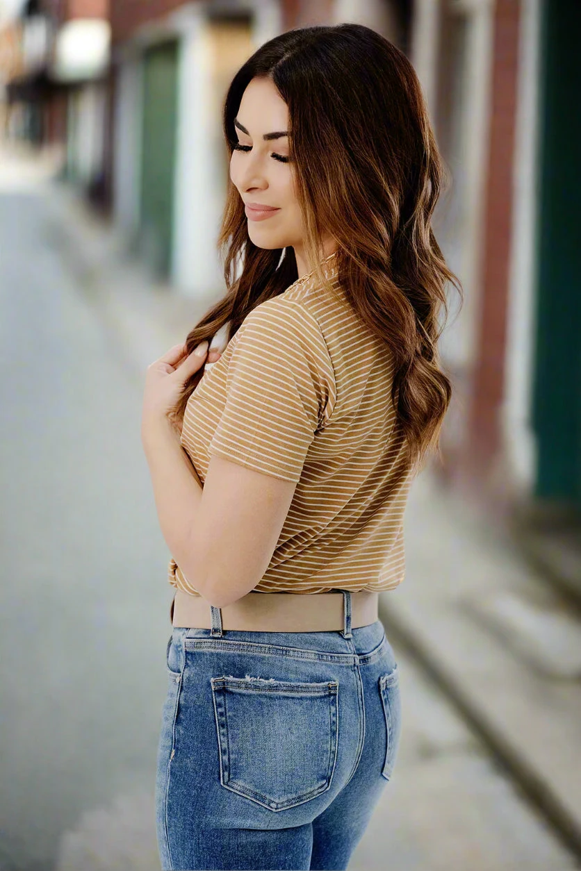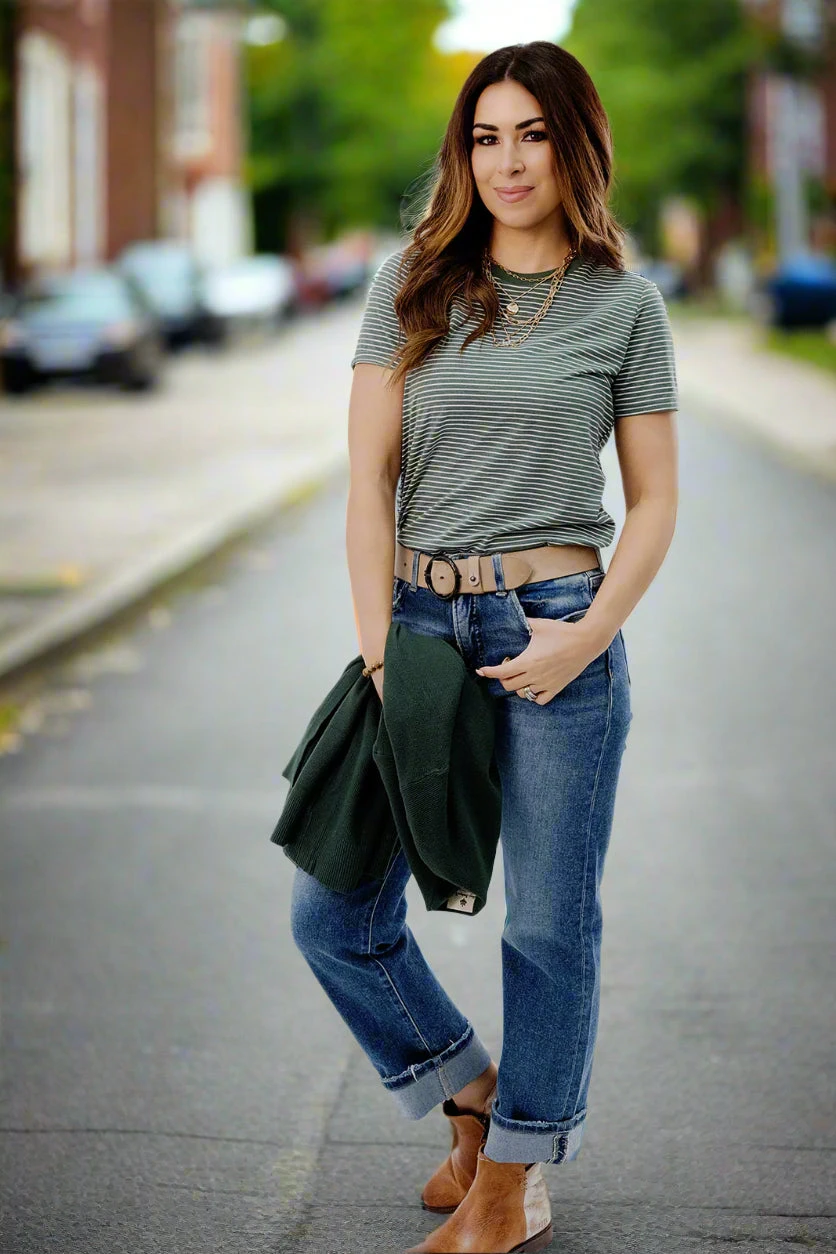 This top is so fun! You can wear this tee no matter where you’re going, from the office, night out, or a cookout with friends and family. Pair it with denim shorts or jeans and accessorize with your favorite jewelry. You can easily pair it with any cardigan for cooler days making this tee the perfect transition piece!