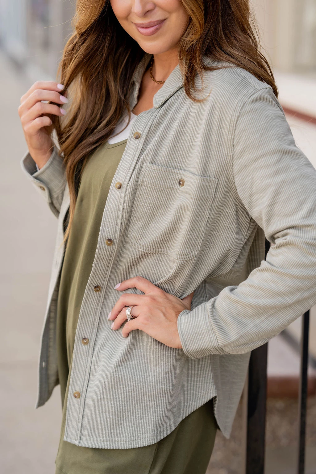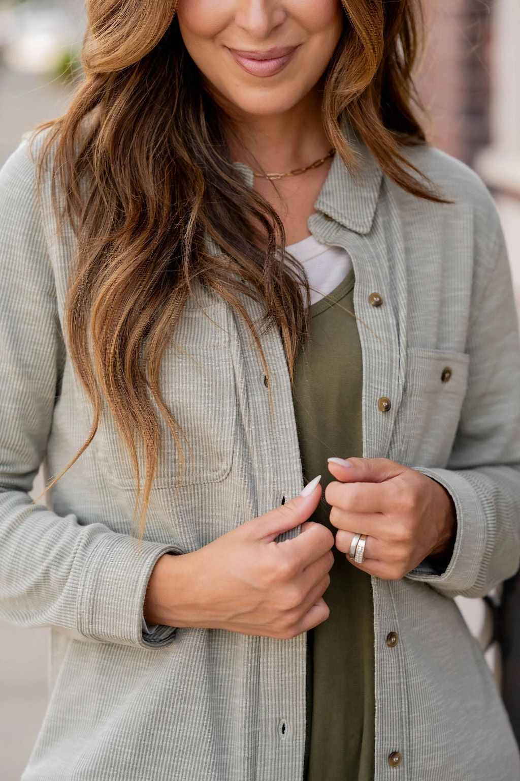 Shackets are super trendy and versatile! This lightweight and soft shacket can transition you through all seasons and features a ribbed texture that sets it apart from the rest! Style this for whatever your day entails, with a dress, blouse, graphic tee and leggings, or even a sweatshirt with denim or joggers! The possibilities are endless!